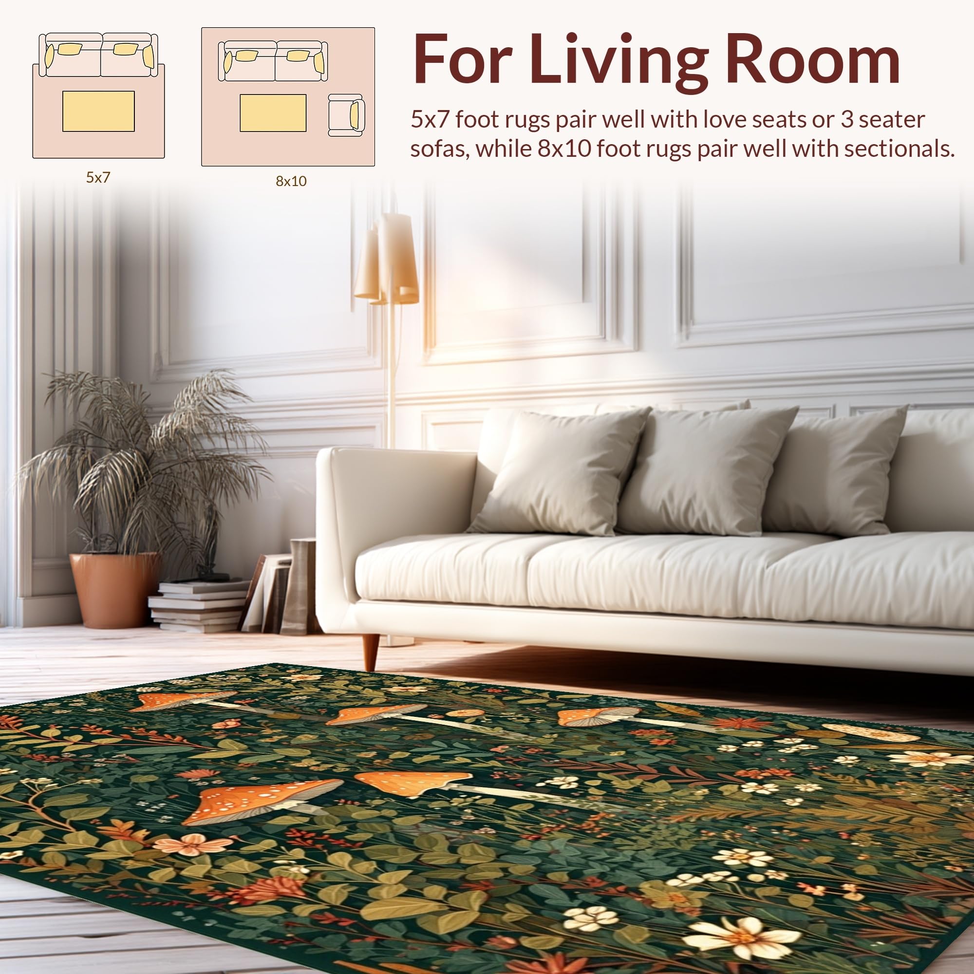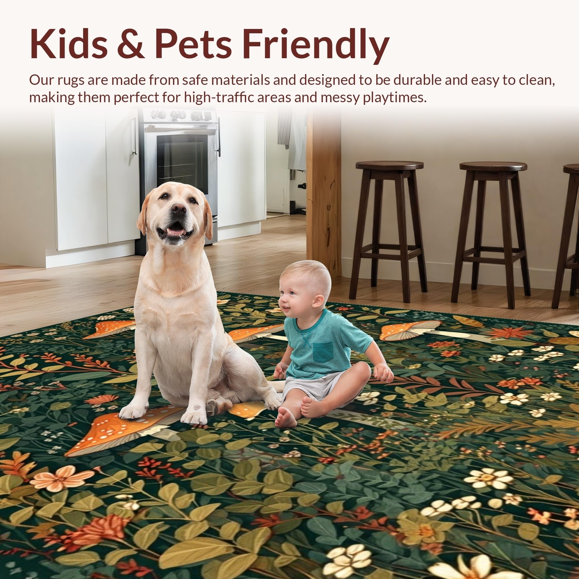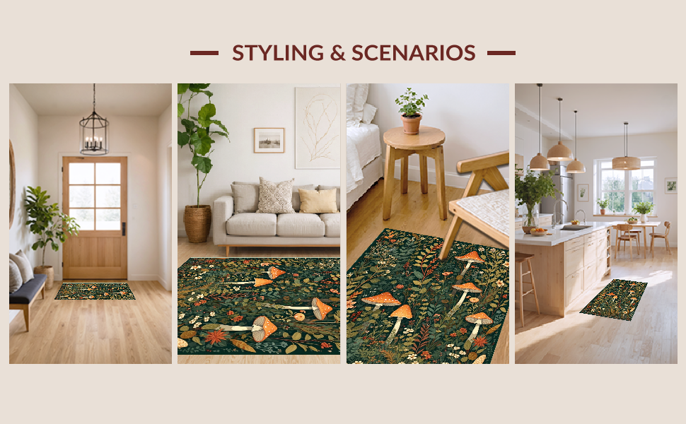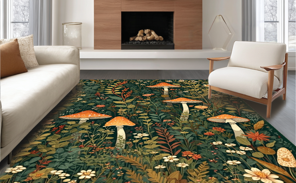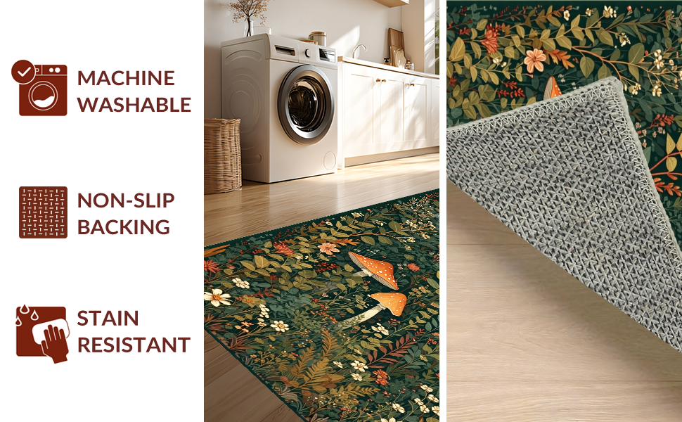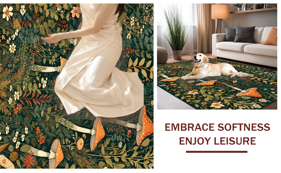 Ultra Soft Area Rug, Non Slip, Stain Resistant, Washable Area Rugs for Living Room, Bedroom, Stylish Nature-Inspired Soft Runner(Green) Overview: