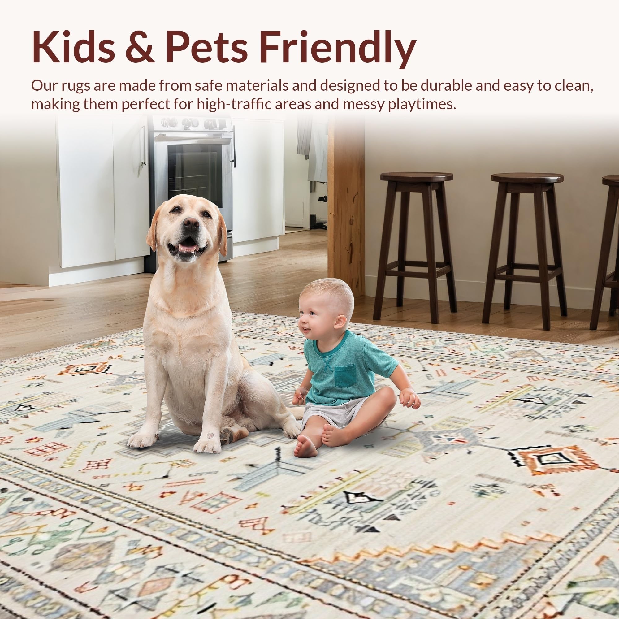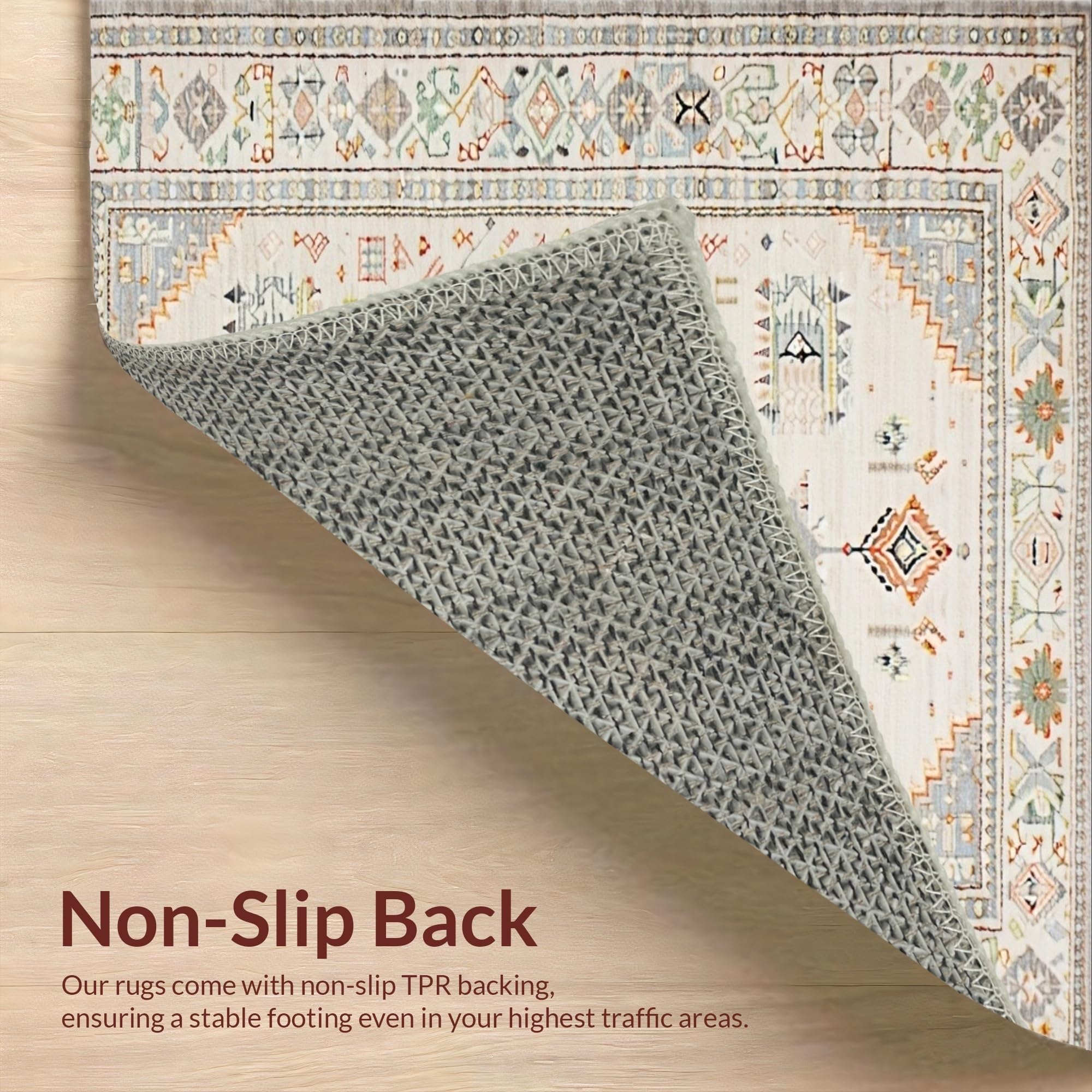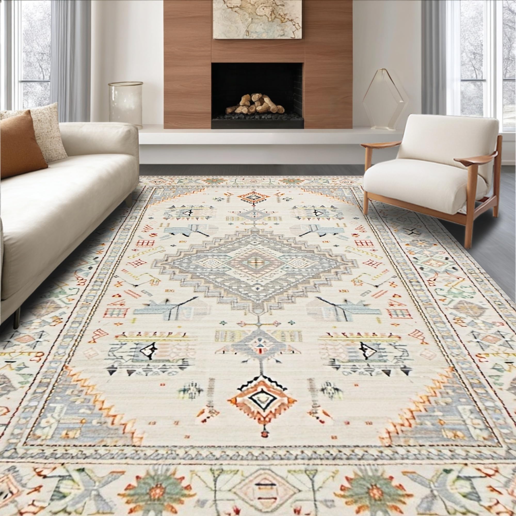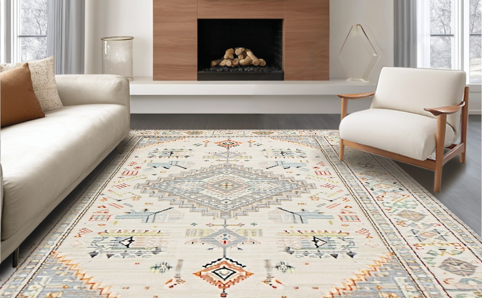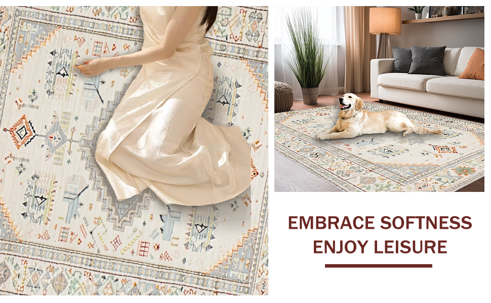 Ultra Soft Area Rug, Non Slip, Stain Resistant, Washable Area Rugs for Living Room, Bedroom, Stylish Neutral Boho Vibe(Beige) Overview: