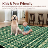 Ultra Soft Area Rug, Non Slip, Stain Resistant, Washable Area Rugs for Living Room, Bedroom, Stylish Neutral Plaid Motif(Green) Overview: