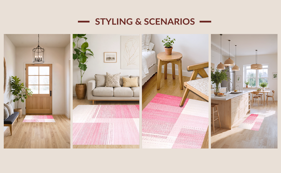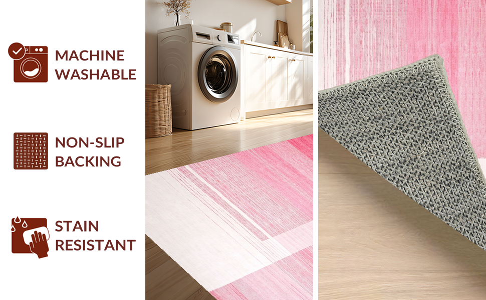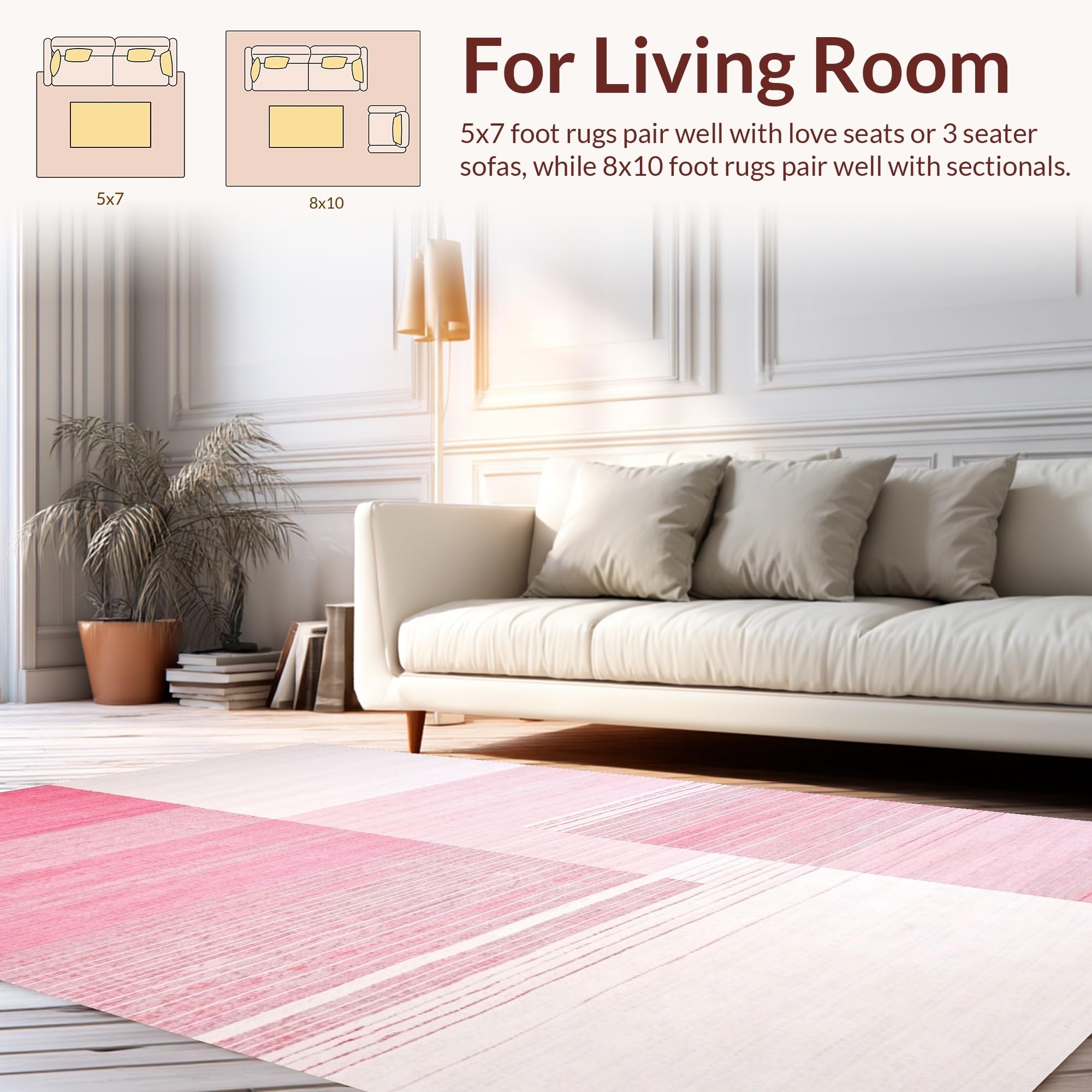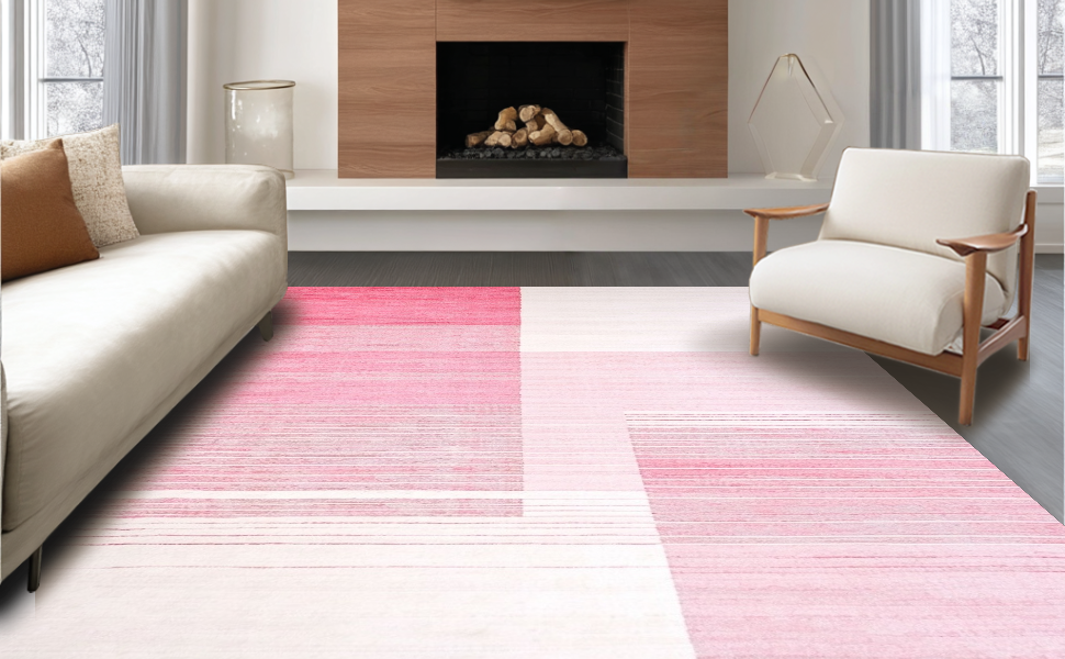 Ultra Soft Area Rug, Non Slip, Stain Resistant, Washable Area Rugs for Living Room, Bedroom, Stylish Ombre Softness Theme(Pink) Overview: