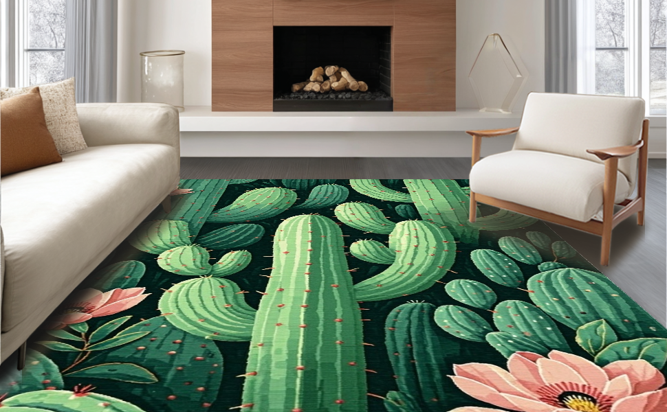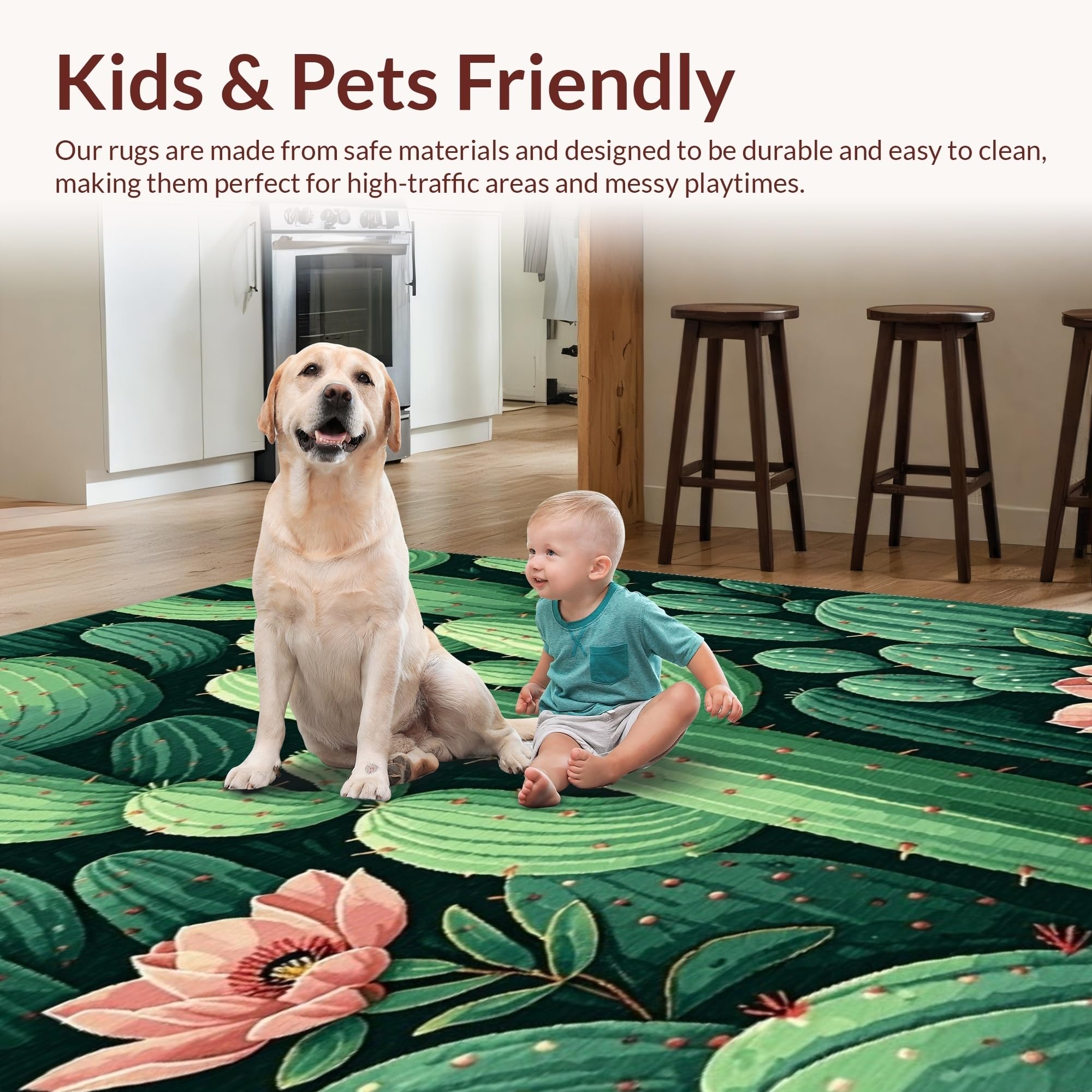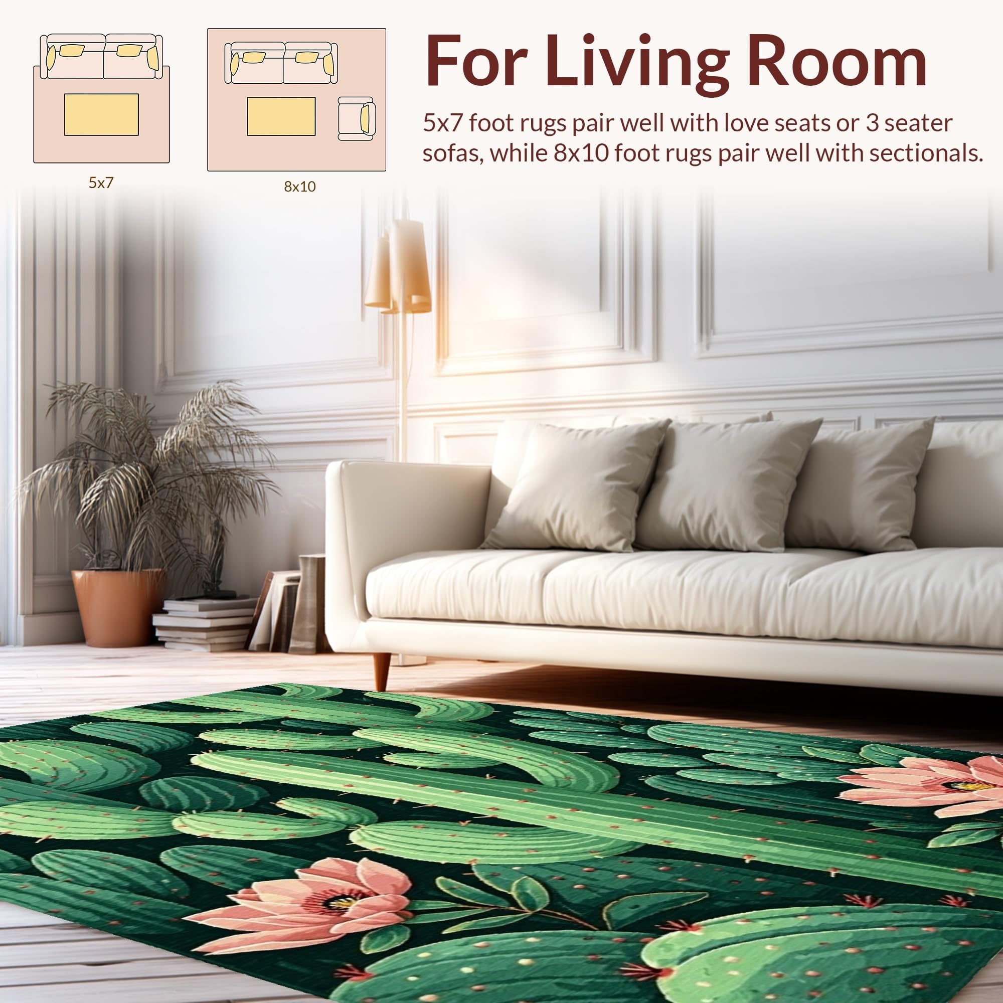 Ultra Soft Area Rug, Non Slip, Stain Resistant, Washable Area Rugs for Living Room, Bedroom, Stylish Pastel Blossom Arrangement(Green) Overview: