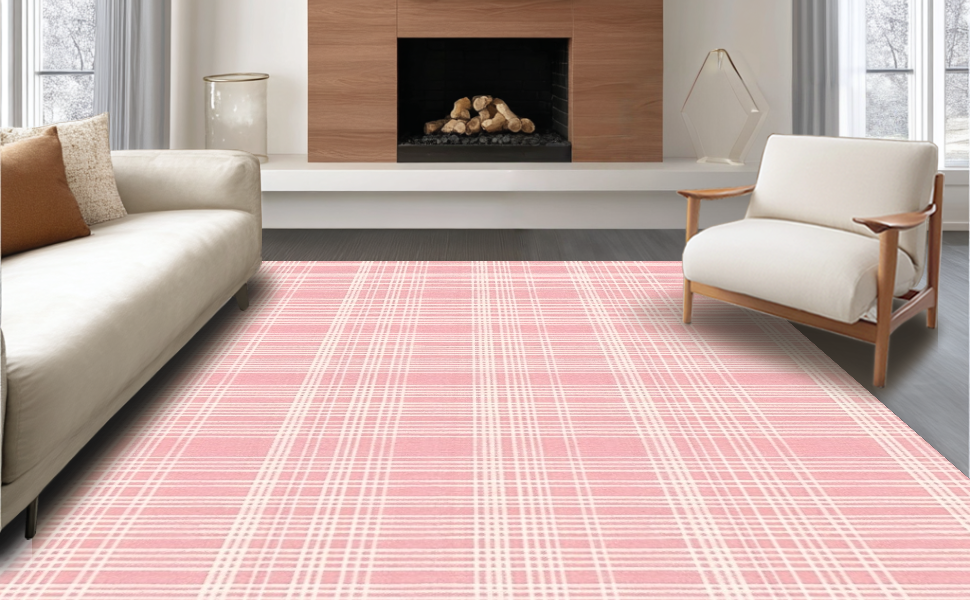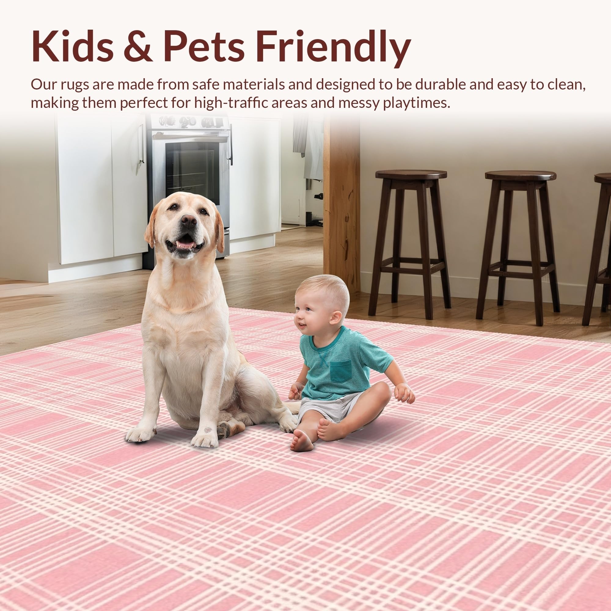 Ultra Soft Area Rug, Non Slip, Stain Resistant, Washable Area Rugs for Living Room, Bedroom, Stylish Pastel Ogee Composition(Pink) Overview: