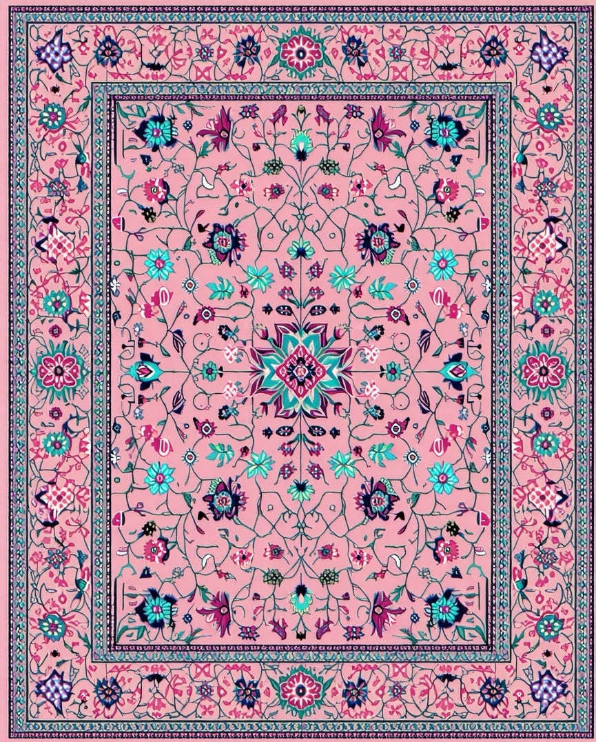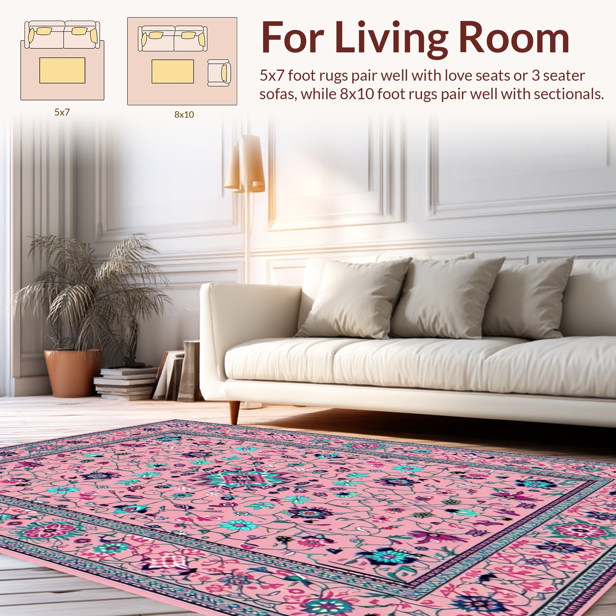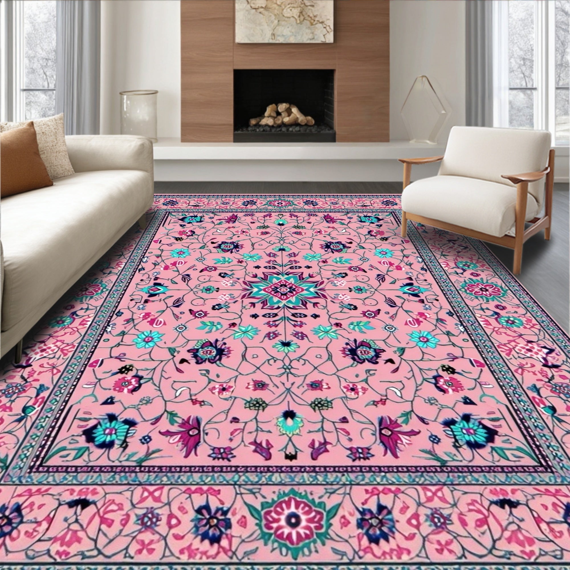 Flatwoven High Traffic Area Rug, Stylish Retro Floral Accents, Non Slip, Stain Resistant, Washable Area Rugs for Living Room, Bedroom (Pink) Overview: