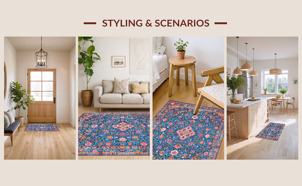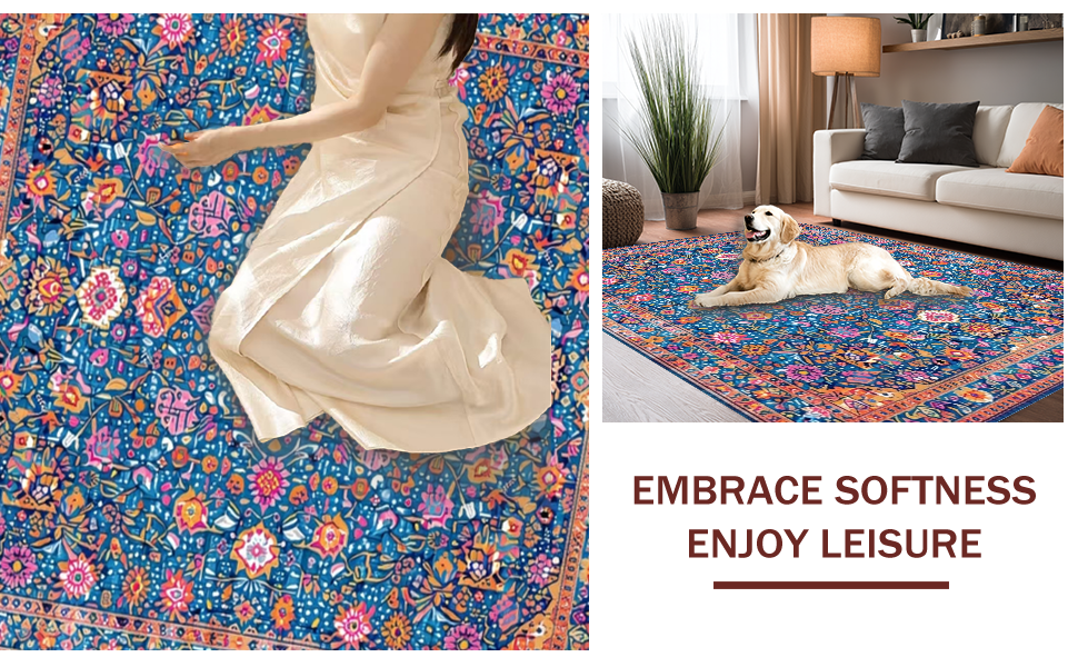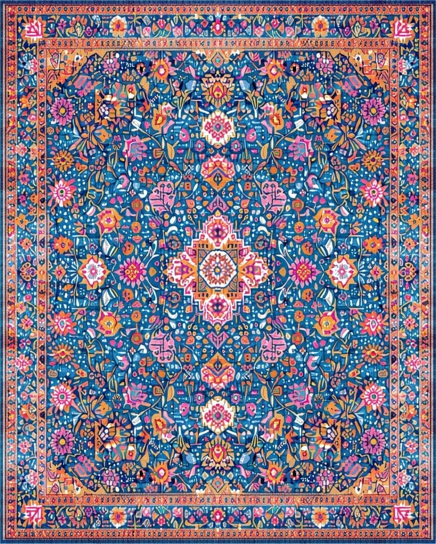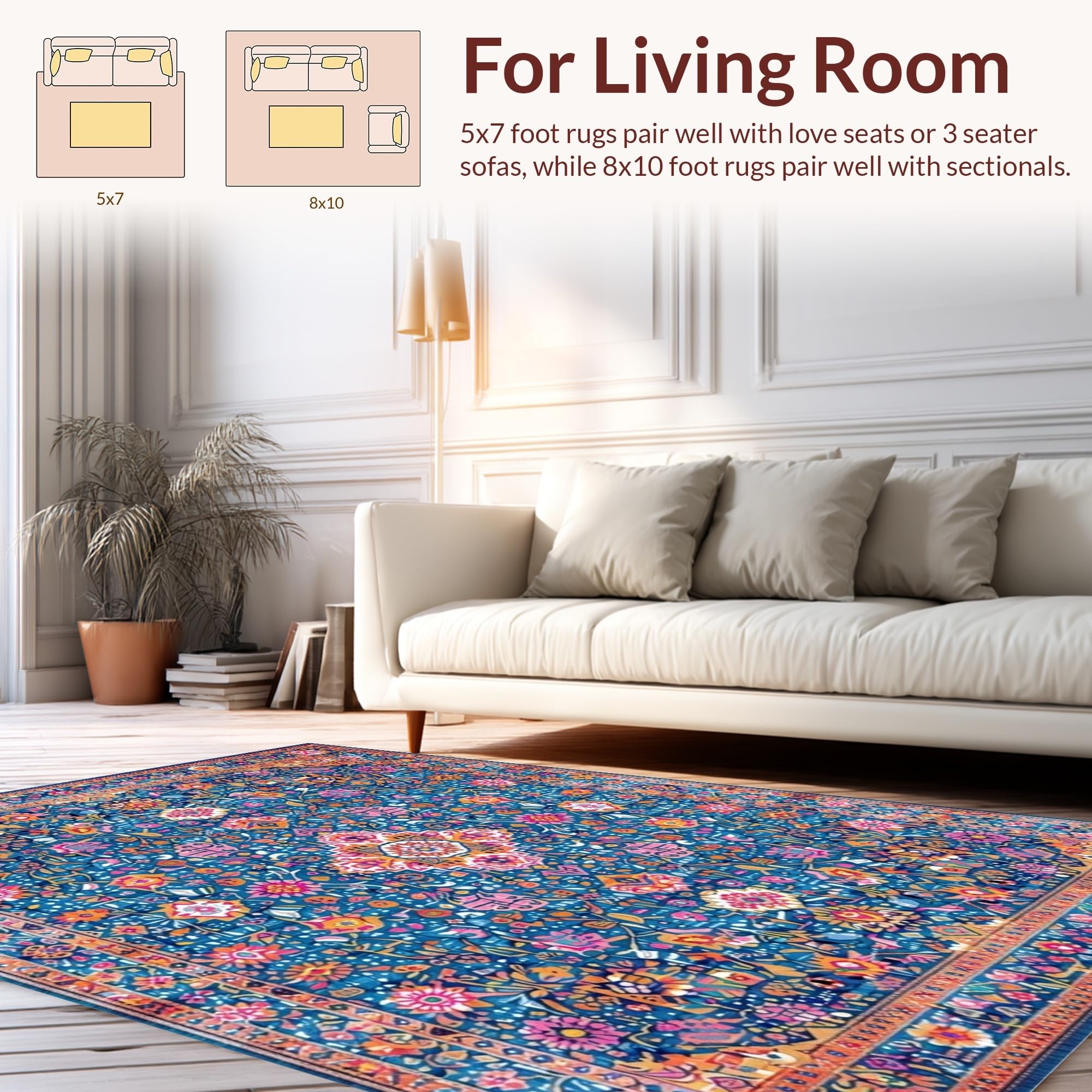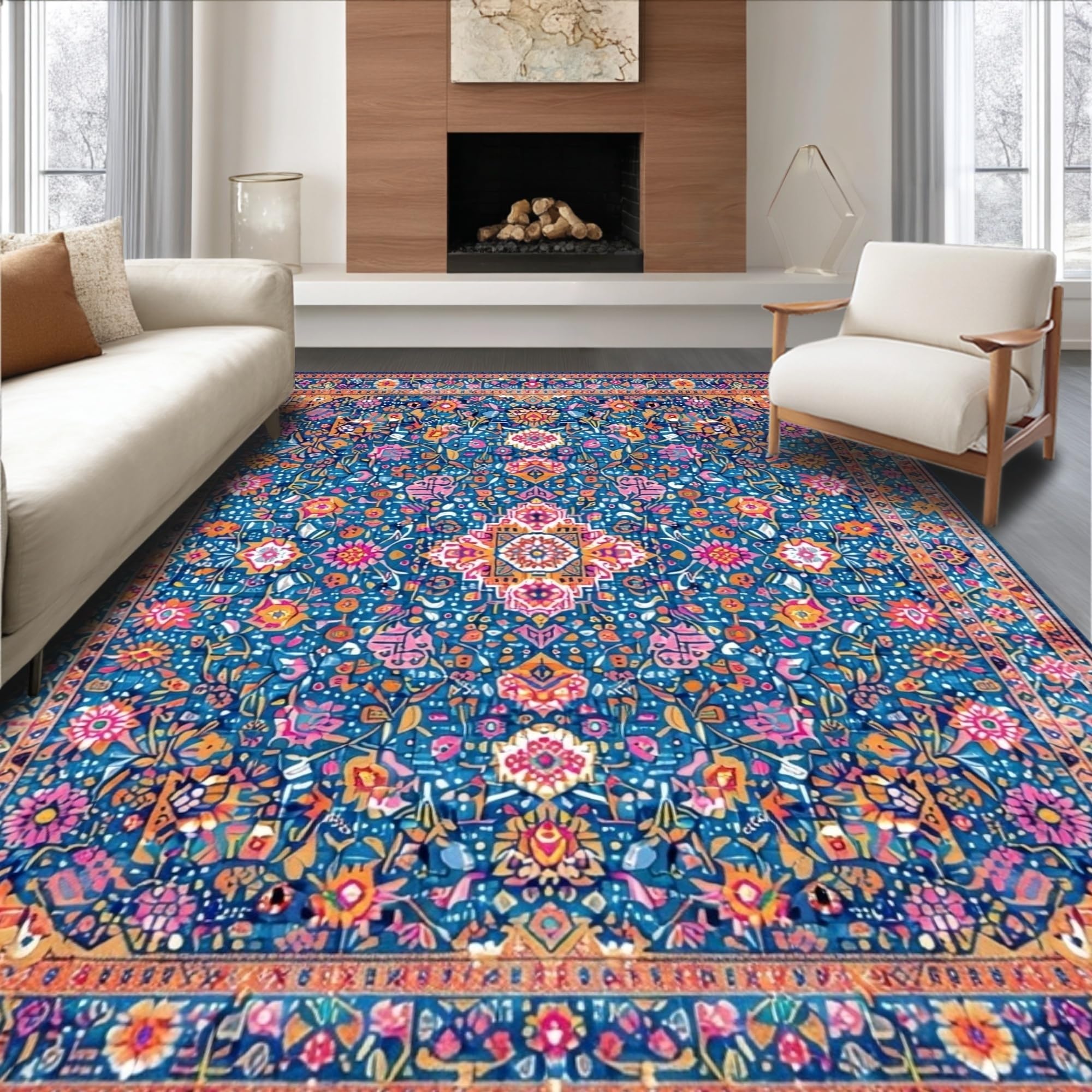 Ultra Soft Area Rug, Non Slip, Stain Resistant, Washable Area Rugs for Living Room, Bedroom, Stylish Retro-Inspired Medallion Art(Blue) Overview: