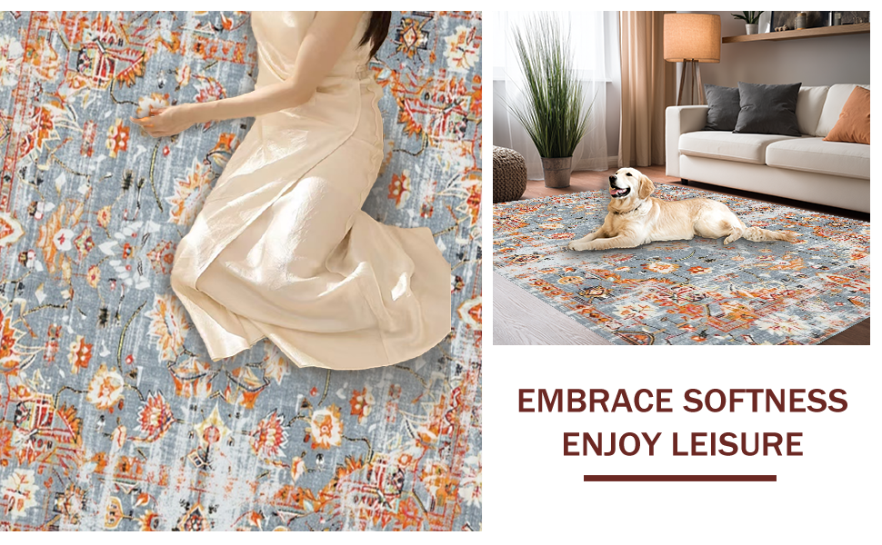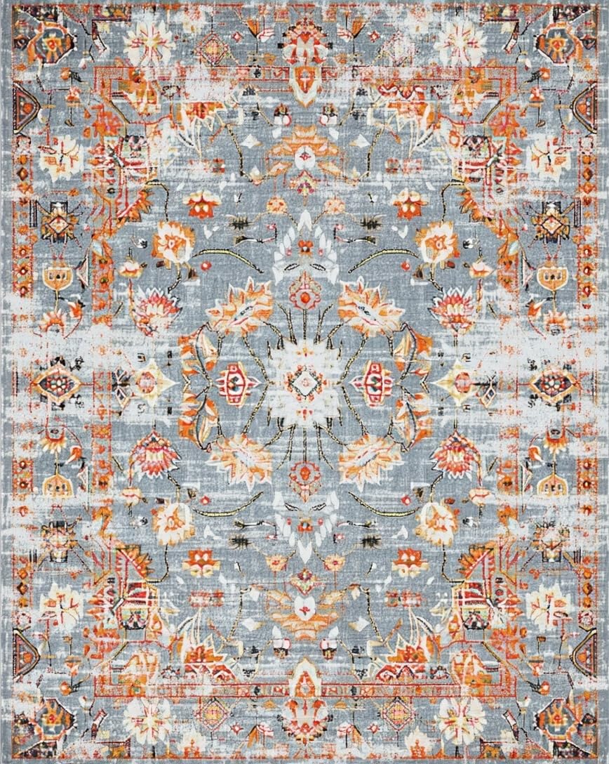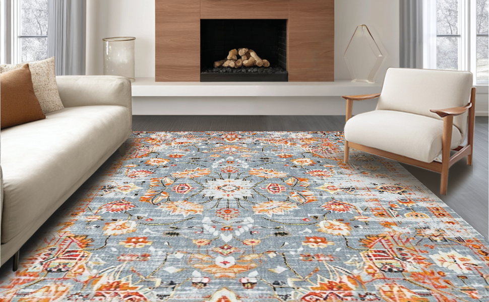Ultra Soft Area Rug, Non Slip, Stain Resistant, Washable Area Rugs for Living Room, Bedroom, Stylish Retro Organic Shapes(Gray) Overview:
