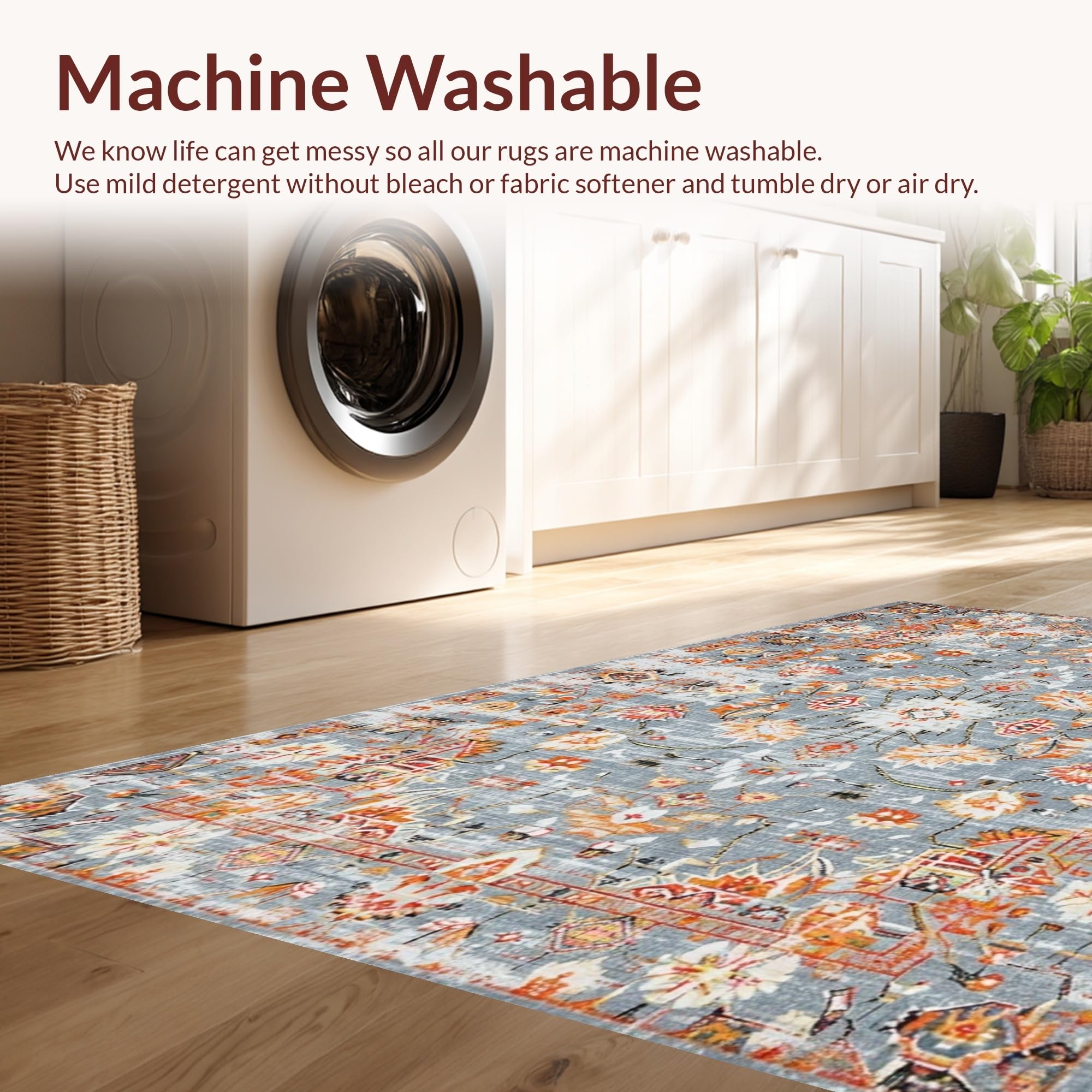 - Machine Washable: Our rugs can be easily thrown in the wash machine.