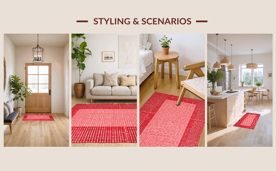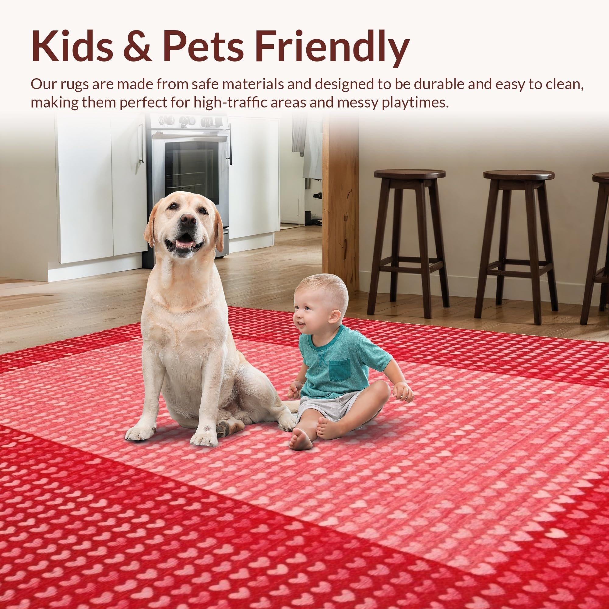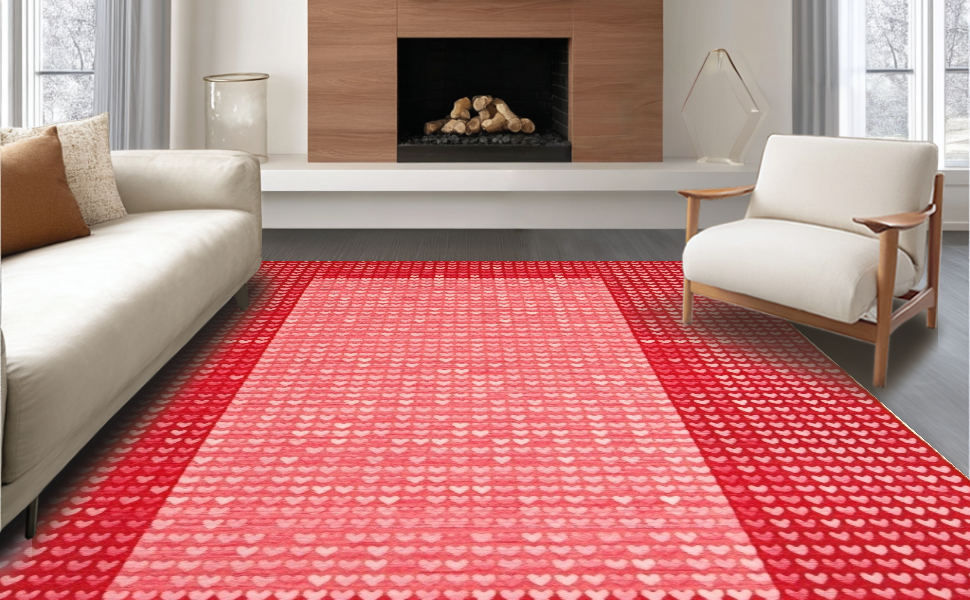 Ultra Soft Area Rug, Non Slip, Stain Resistant, Washable Area Rugs for Living Room, Bedroom, Stylish Romantic Red Decor(Red) Overview: