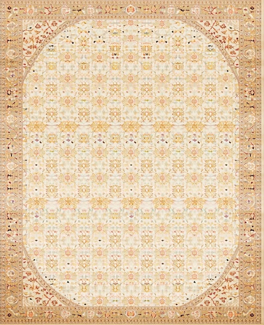 Ultra Soft Area Rug, Non Slip, Stain Resistant, Washable Area Rugs for Living Room, Bedroom, Stylish Round with Interlaced Lattice and Floral Motifs(Beige) Overview: