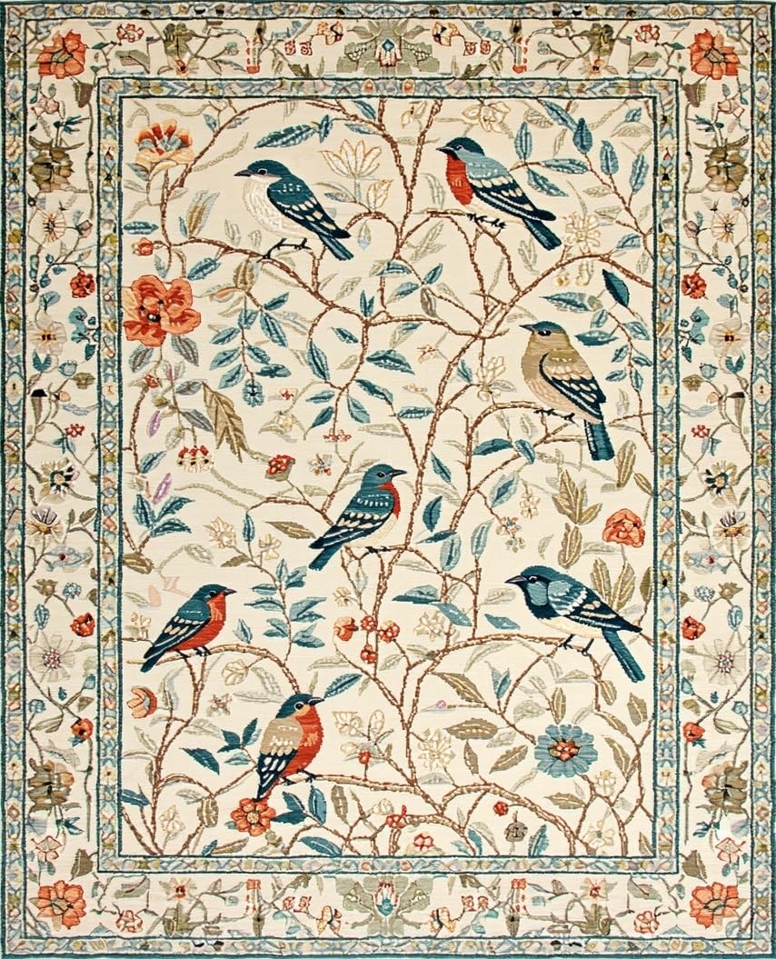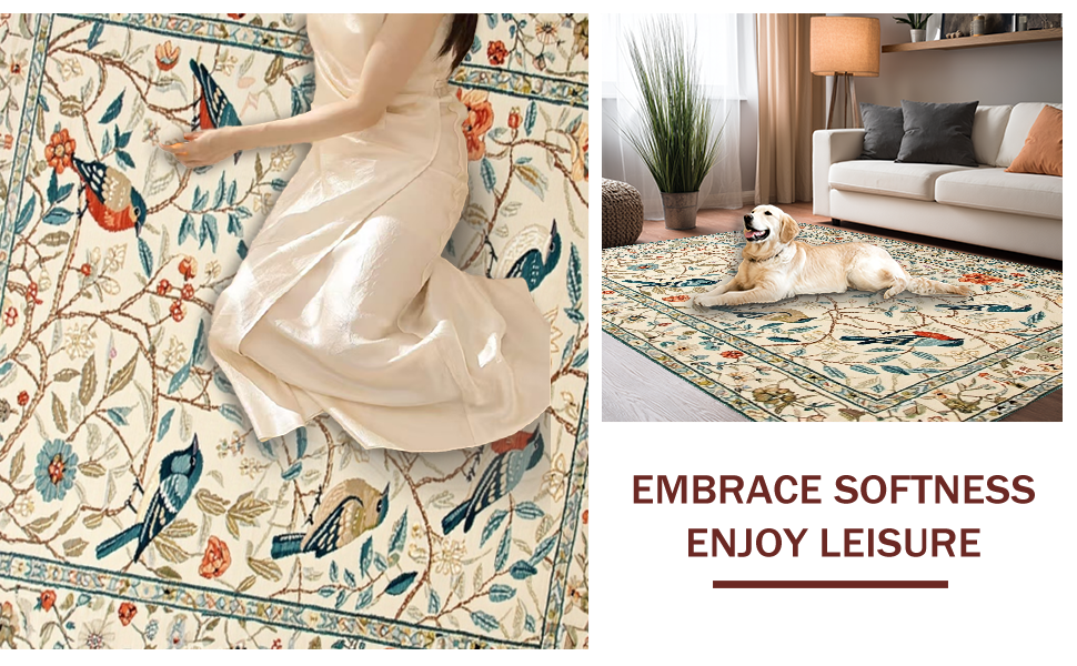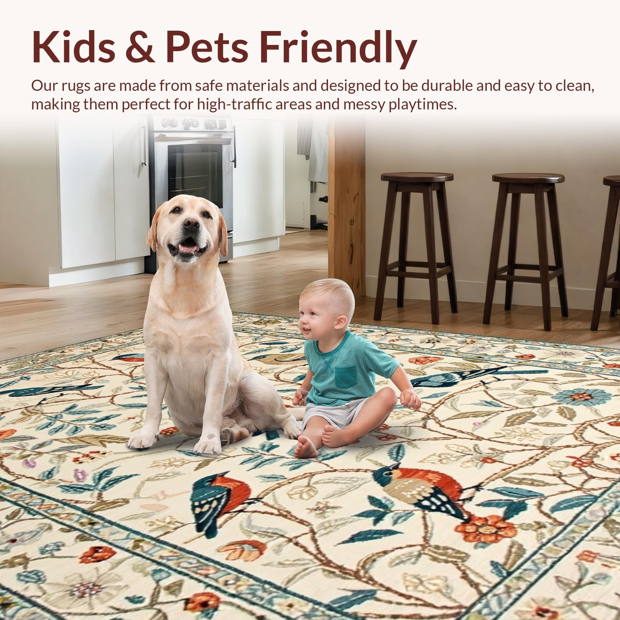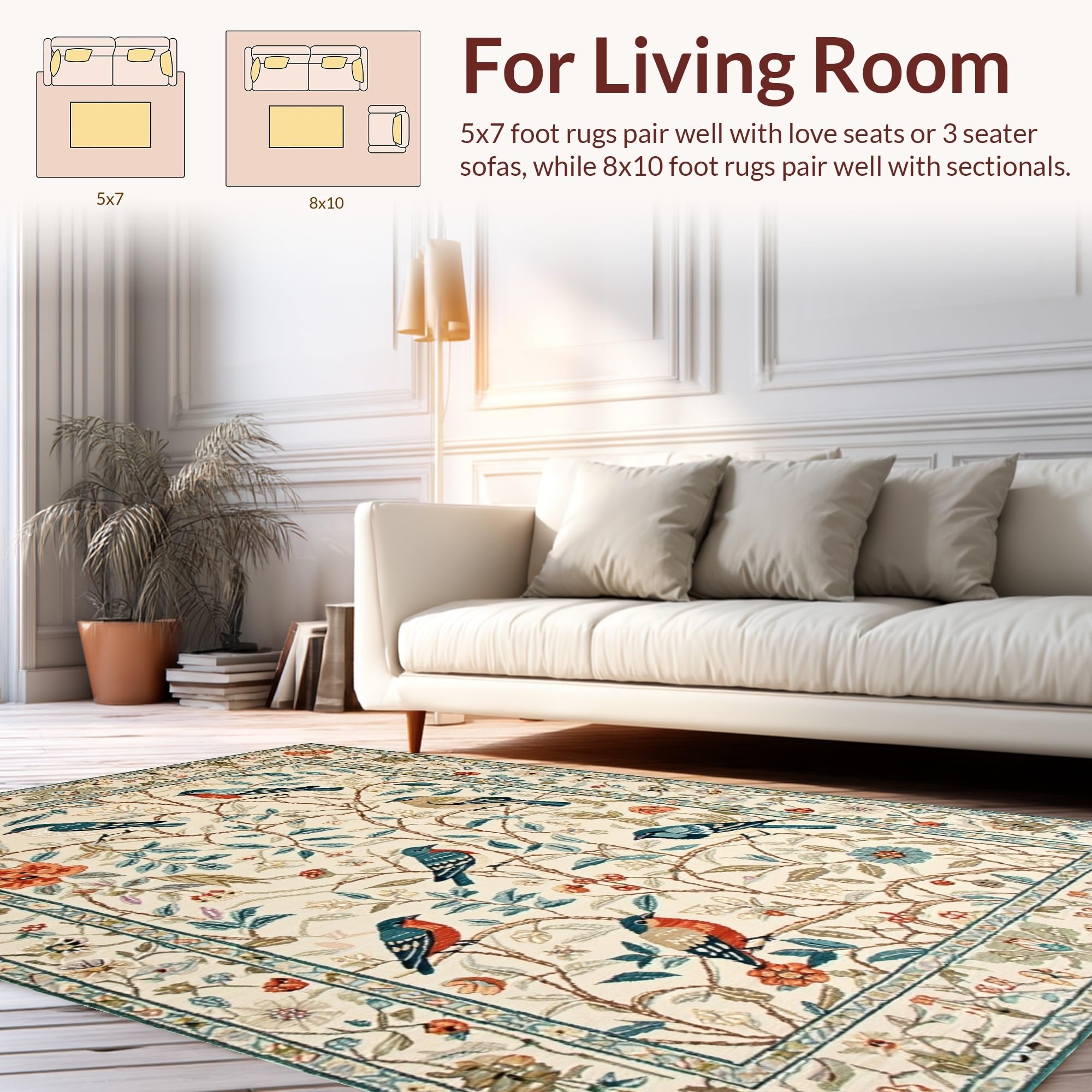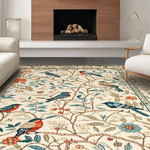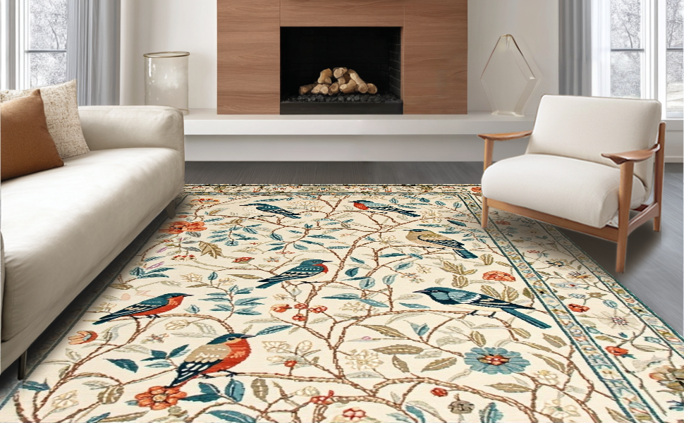Ultra Soft Area Rug, Non Slip, Stain Resistant, Washable Area Rugs for Living Room, Bedroom, Stylish Rustic Bird Motif(Beige) Overview: