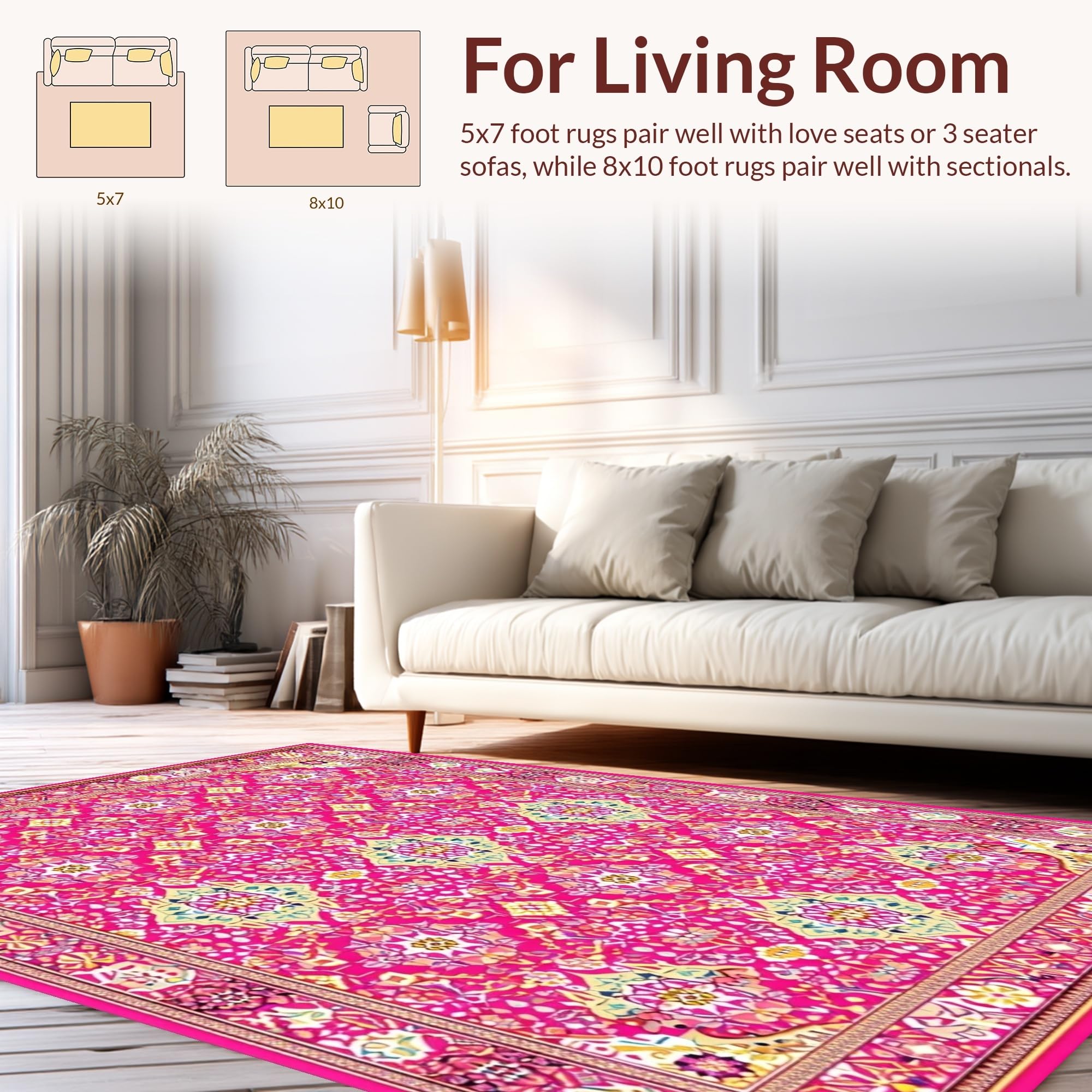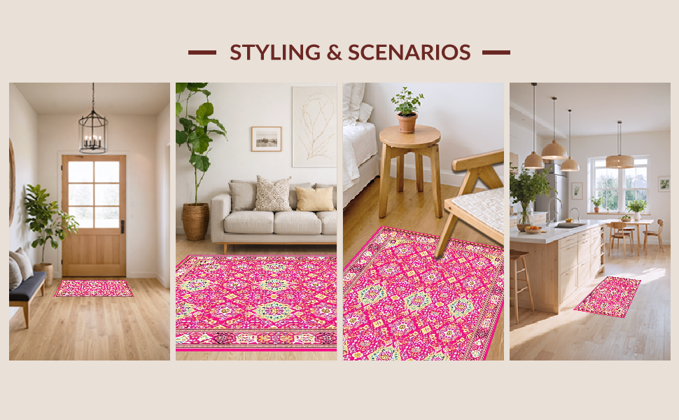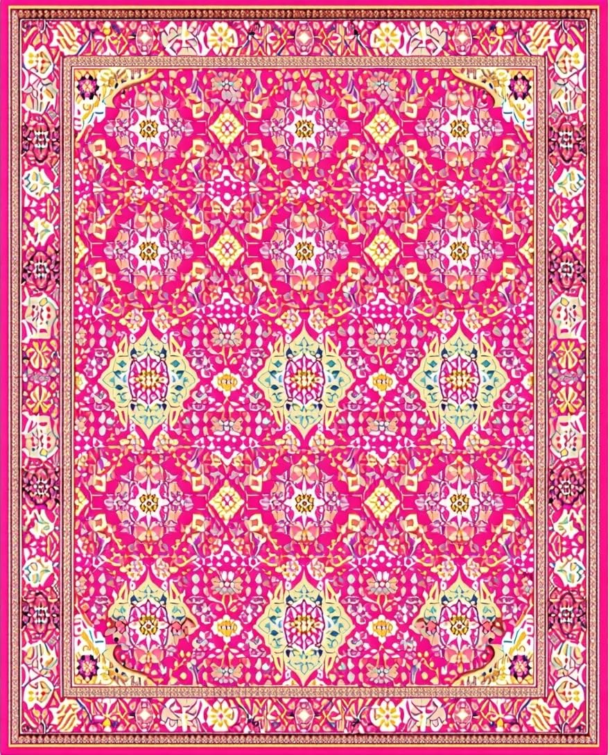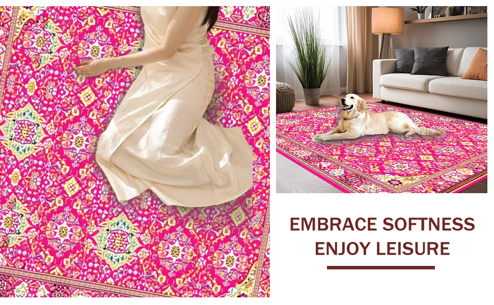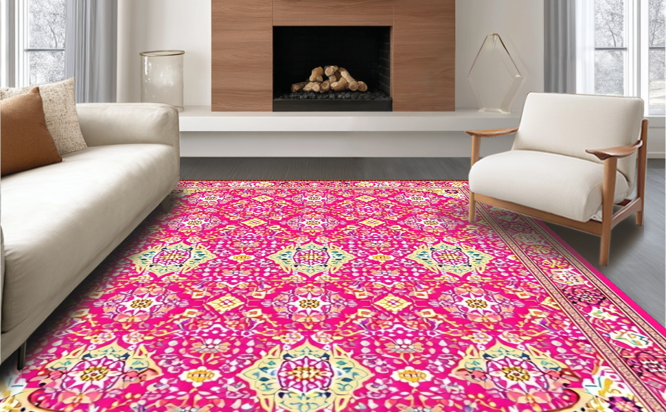 Ultra Soft Area Rug, Non Slip, Stain Resistant, Washable Area Rugs for Living Room, Bedroom, Stylish Rustic Floral Print Concept(Pink) Overview: