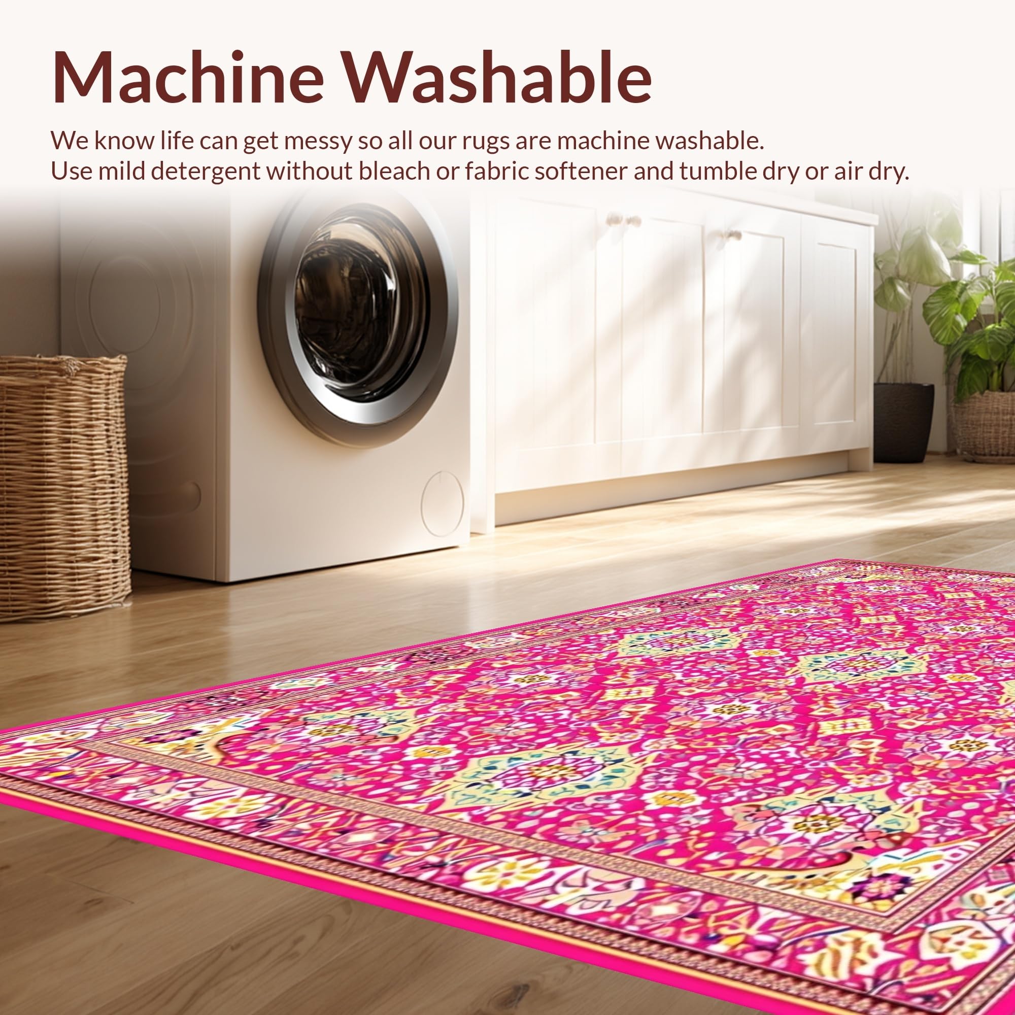 - Machine Washable: Our rugs can be easily thrown in the wash machine.