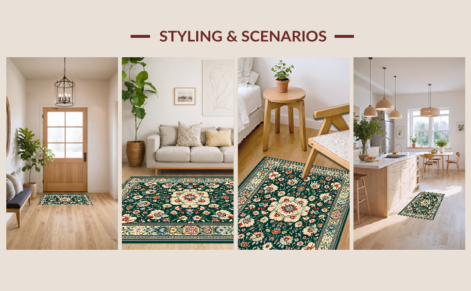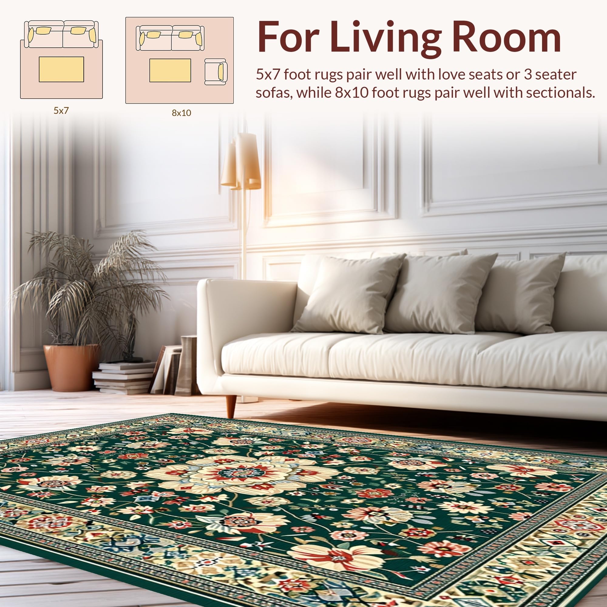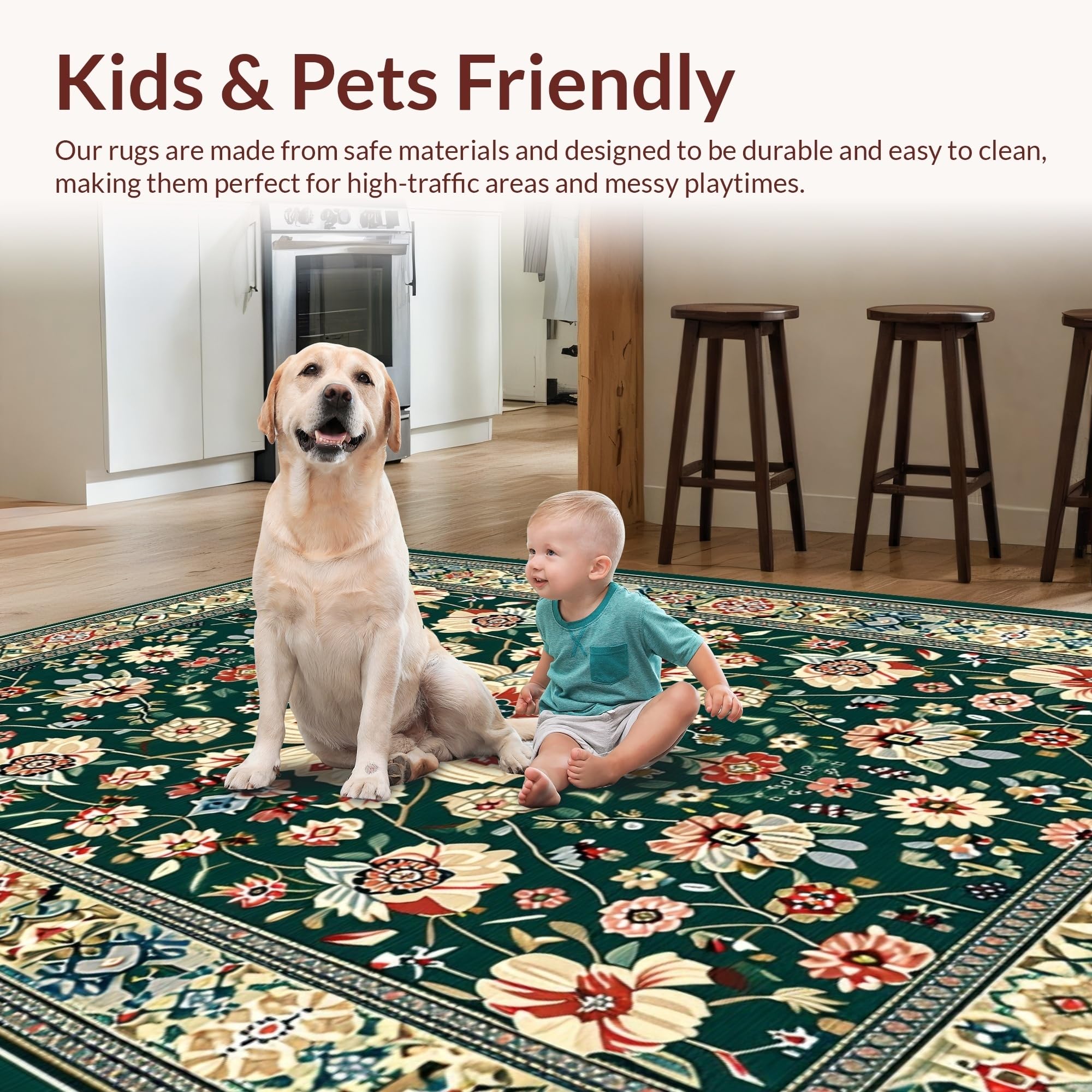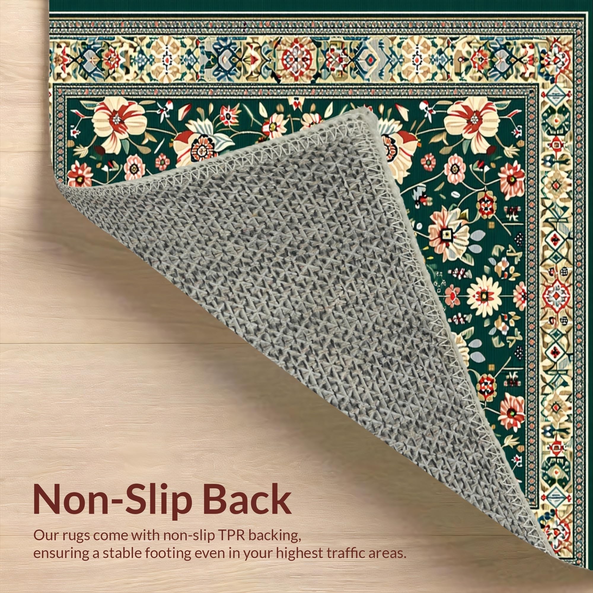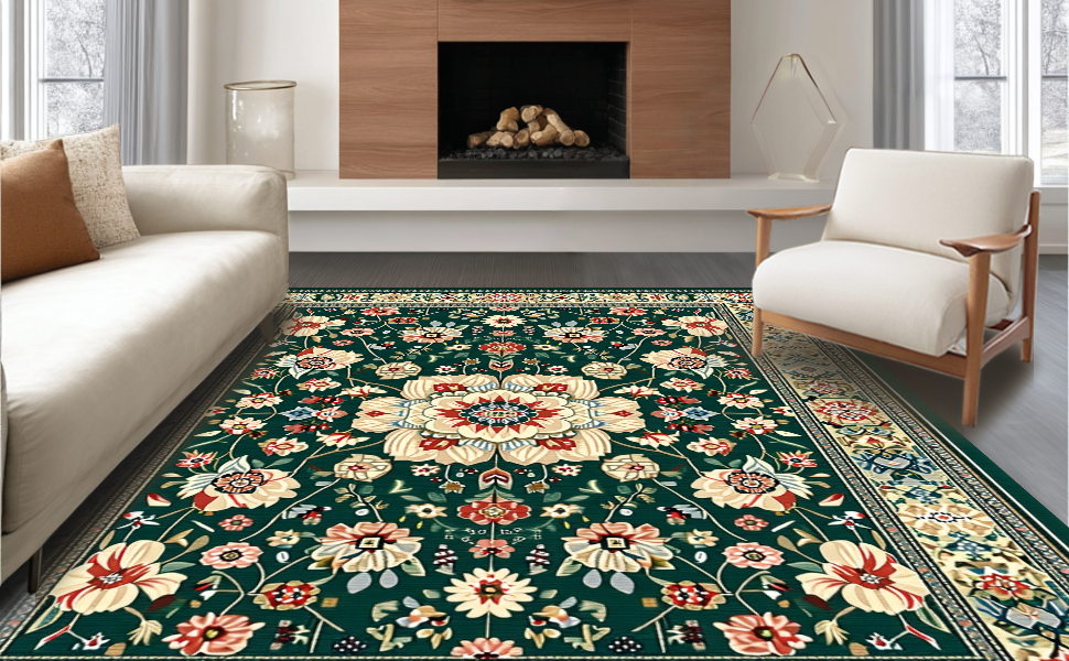 Ultra Soft Area Rug, Non Slip, Stain Resistant, Washable Area Rugs for Living Room, Bedroom, Stylish Rustic Ogee Texture(Green) Overview: