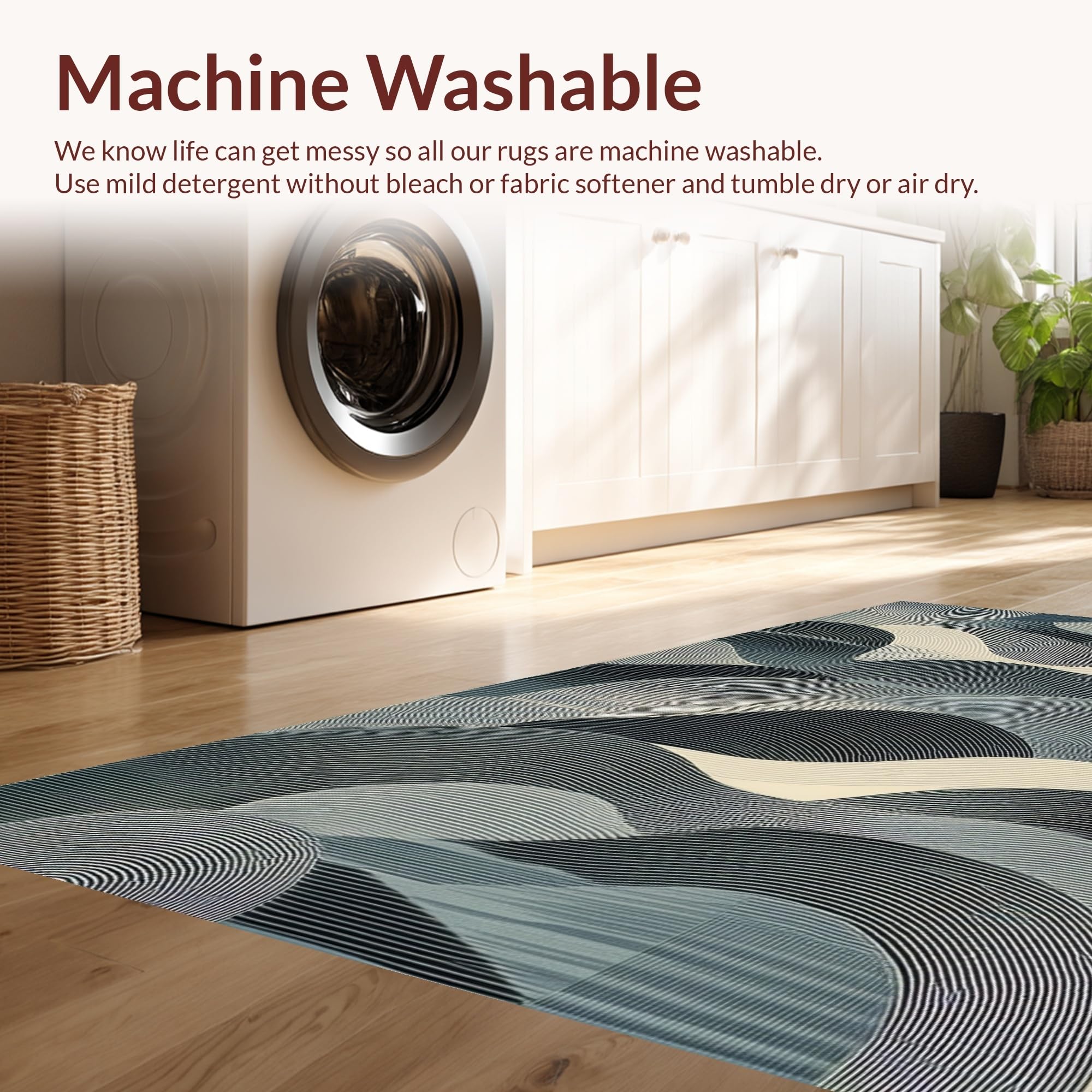 - Machine Washable: Our rugs can be easily thrown in the wash machine.