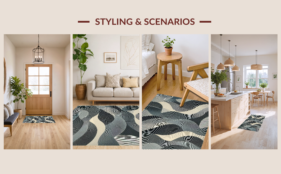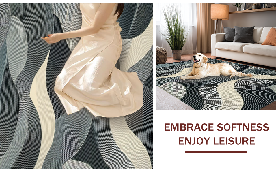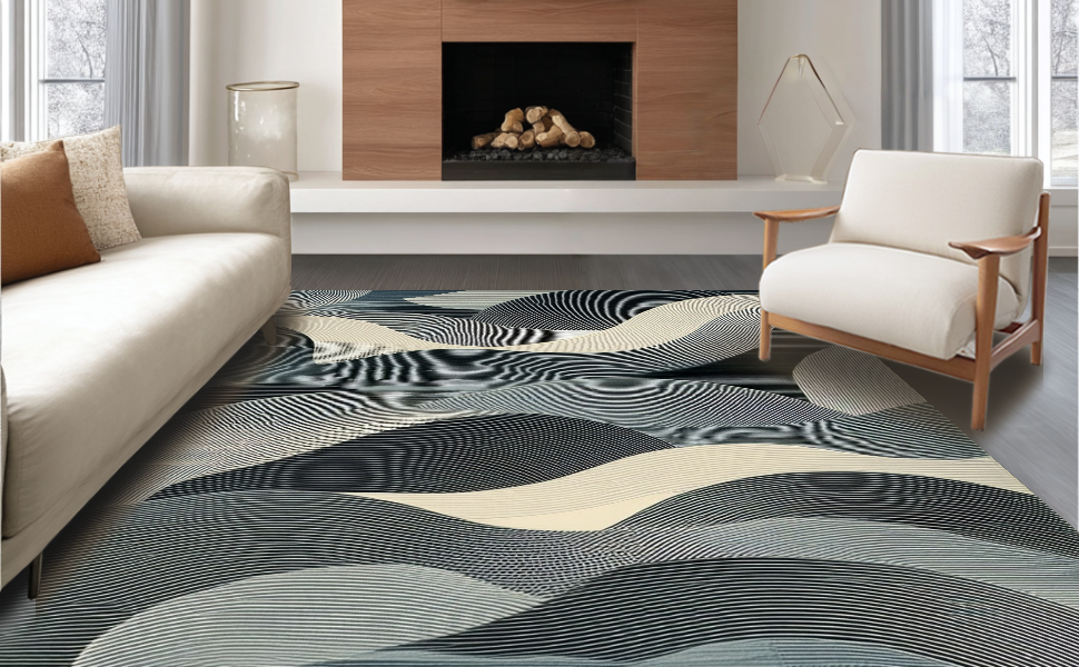 Ultra Soft Area Rug, Non Slip, Stain Resistant, Washable Area Rugs for Living Room, Bedroom, Stylish Soft Gray Wave Motif(Gray) Overview: