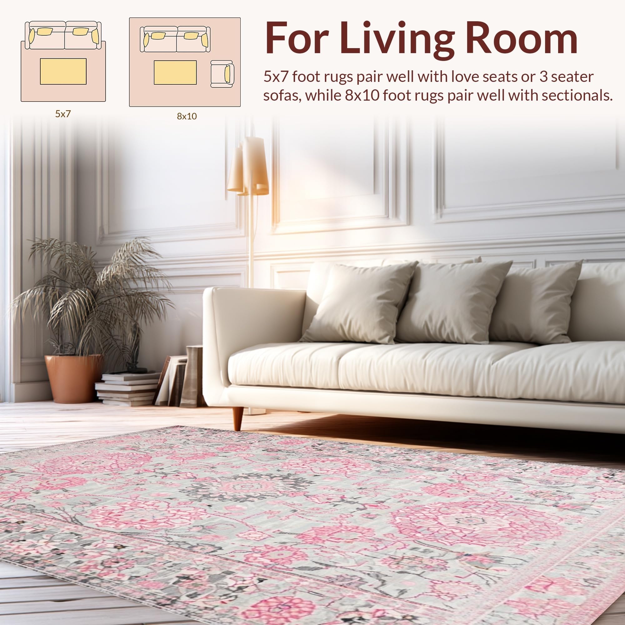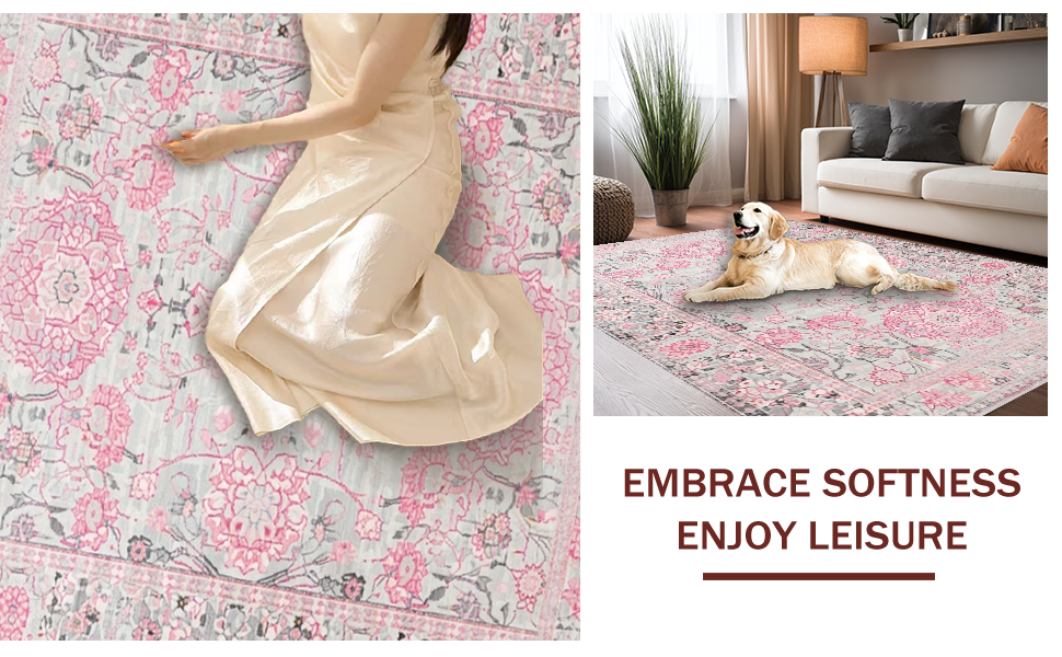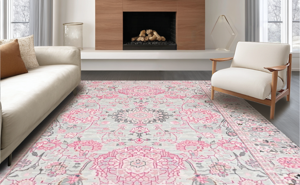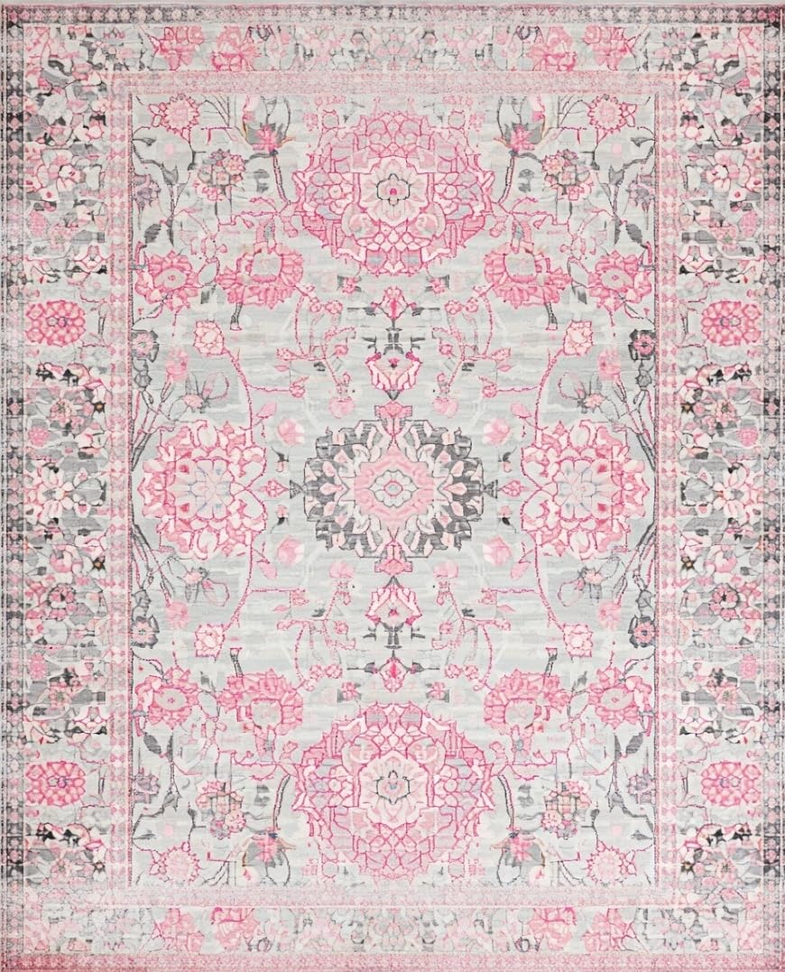 Ultra Soft Area Rug, Non Slip, Stain Resistant, Washable Area Rugs for Living Room, Bedroom, Stylish Soft Pastel Floral Accent(Gray) Overview: