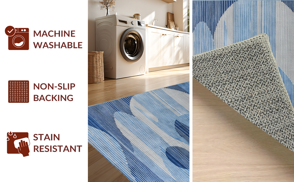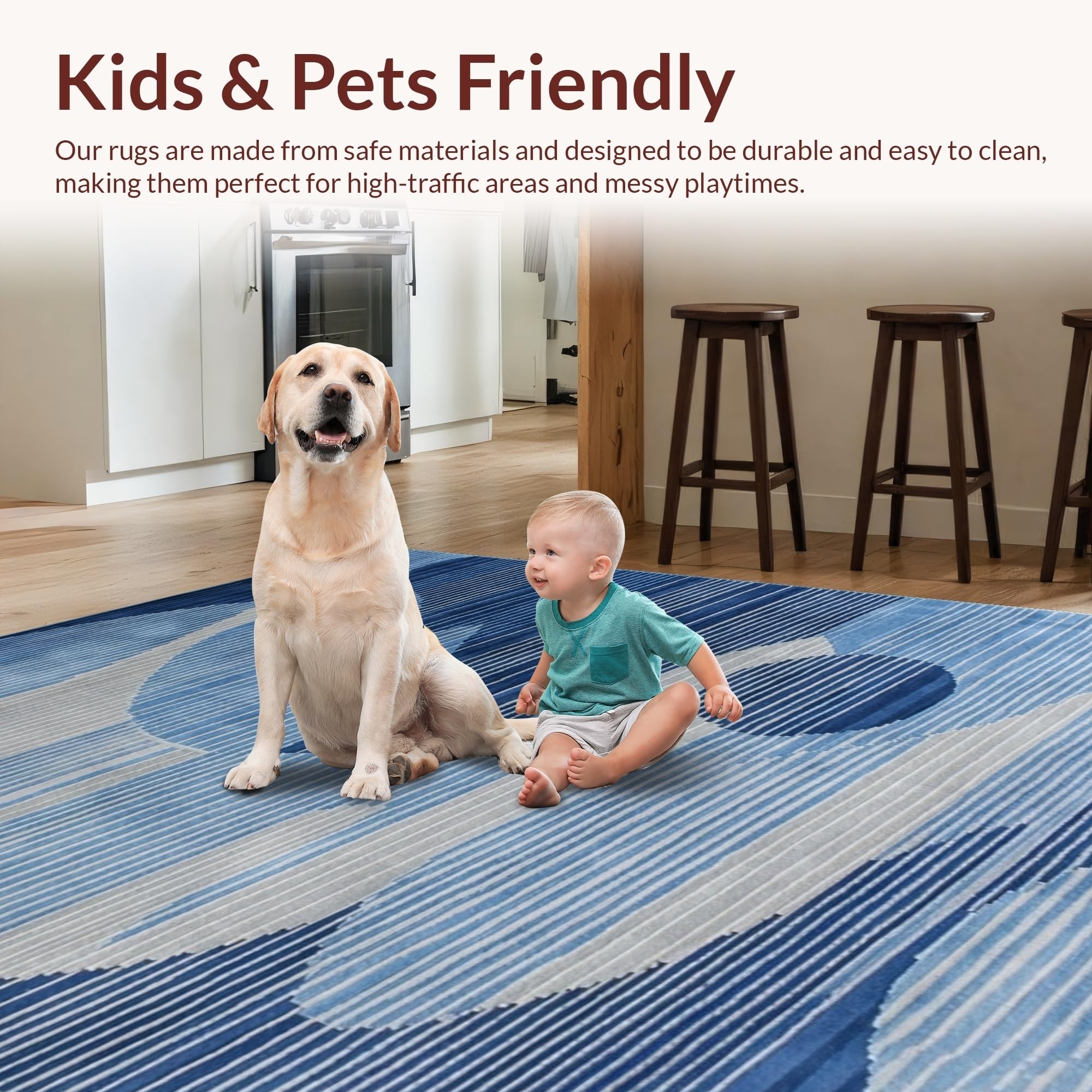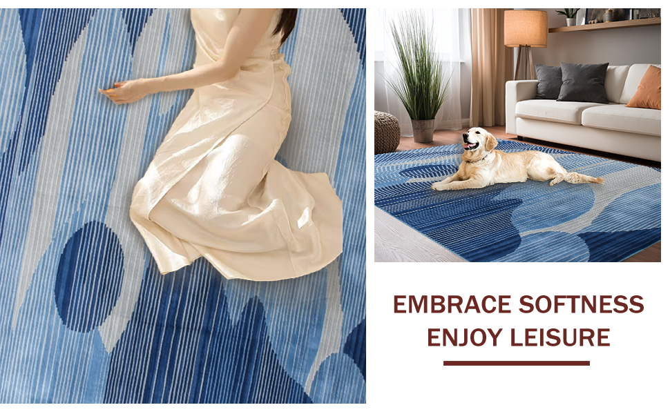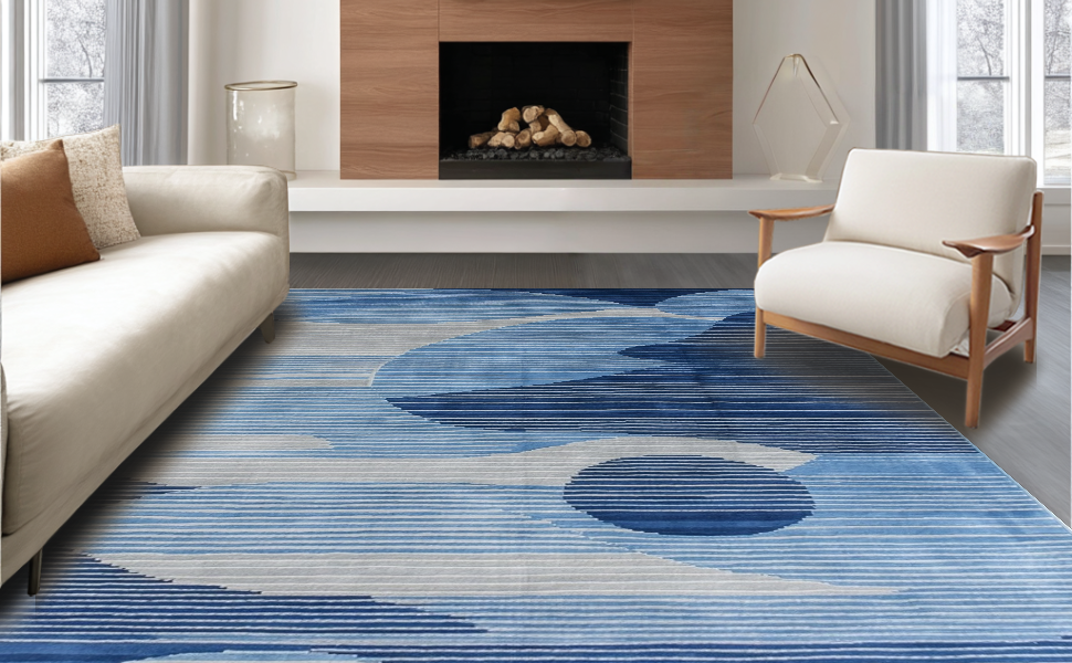 Ultra Soft Area Rug, Non Slip, Stain Resistant, Washable Area Rugs for Living Room, Bedroom, Stylish Soft-Toned Organic Shapes(Blue) Overview: