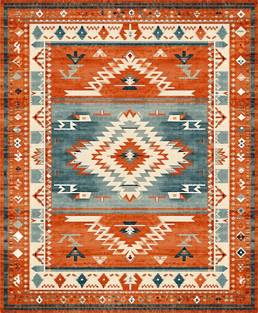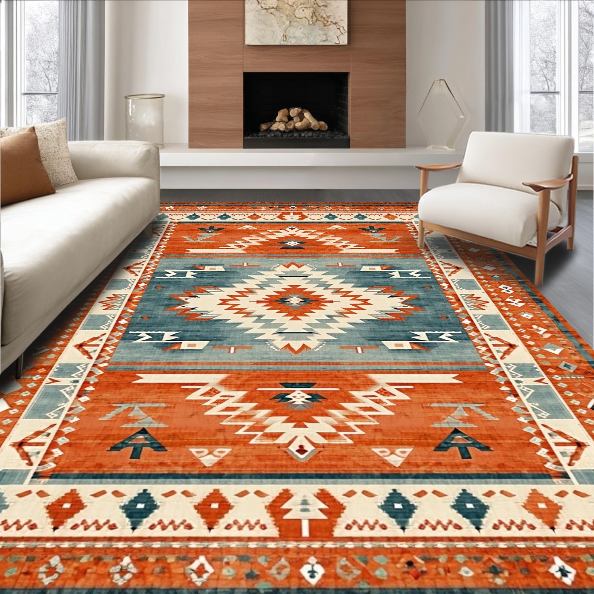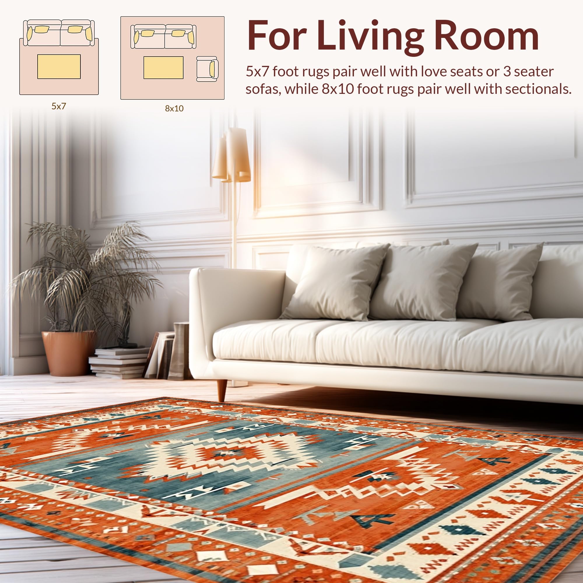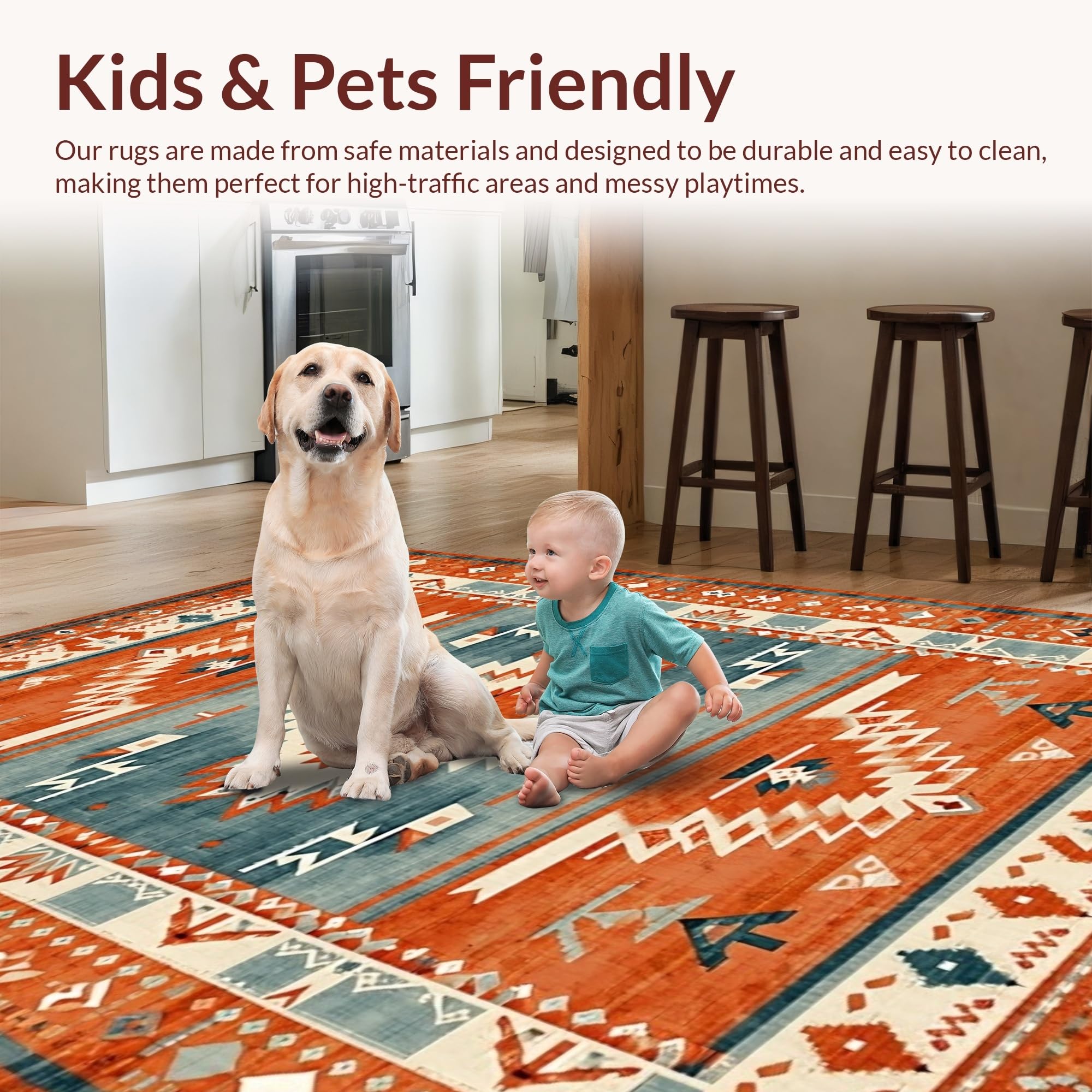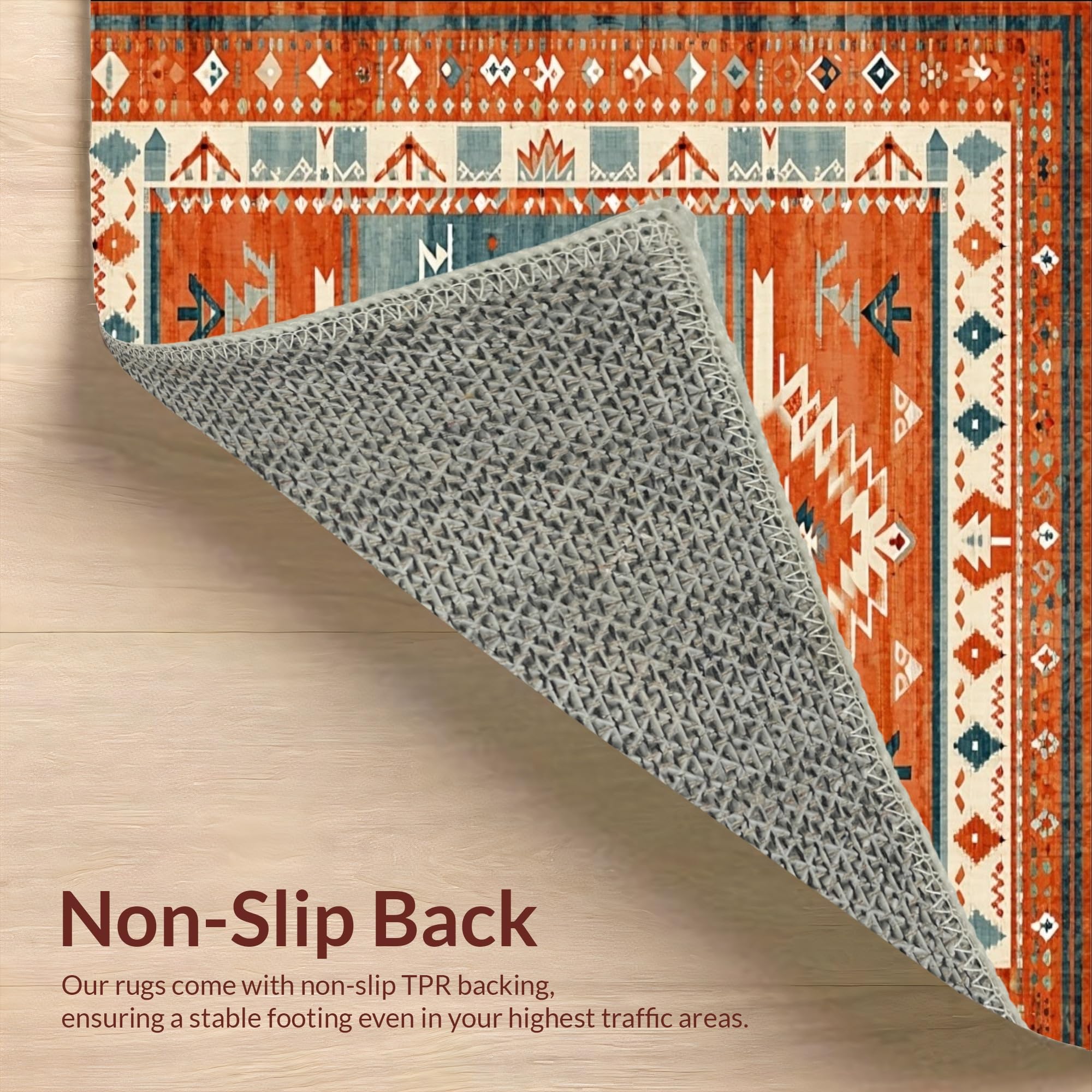 Ultra Soft Area Rug, Non Slip, Stain Resistant, Washable Area Rugs for Living Room, Bedroom, Stylish Southwestern with Warm Hues and Unique Textures(Red) Overview: