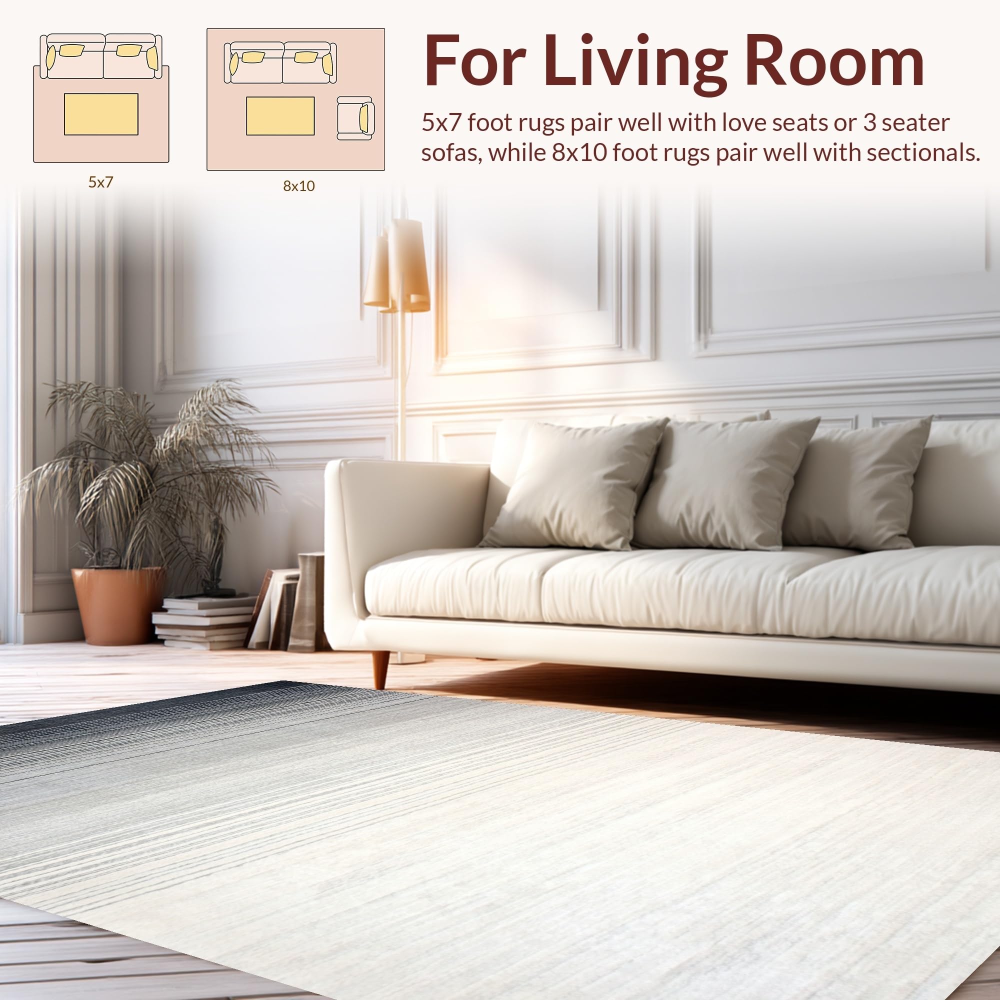 Ultra Soft Area Rug, Non Slip, Stain Resistant, Washable Area Rugs for Living Room, Bedroom, Stylish Subtle Contrast Patterns(Gray) Overview: