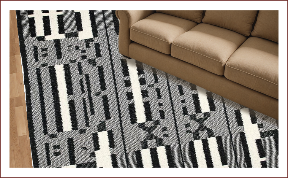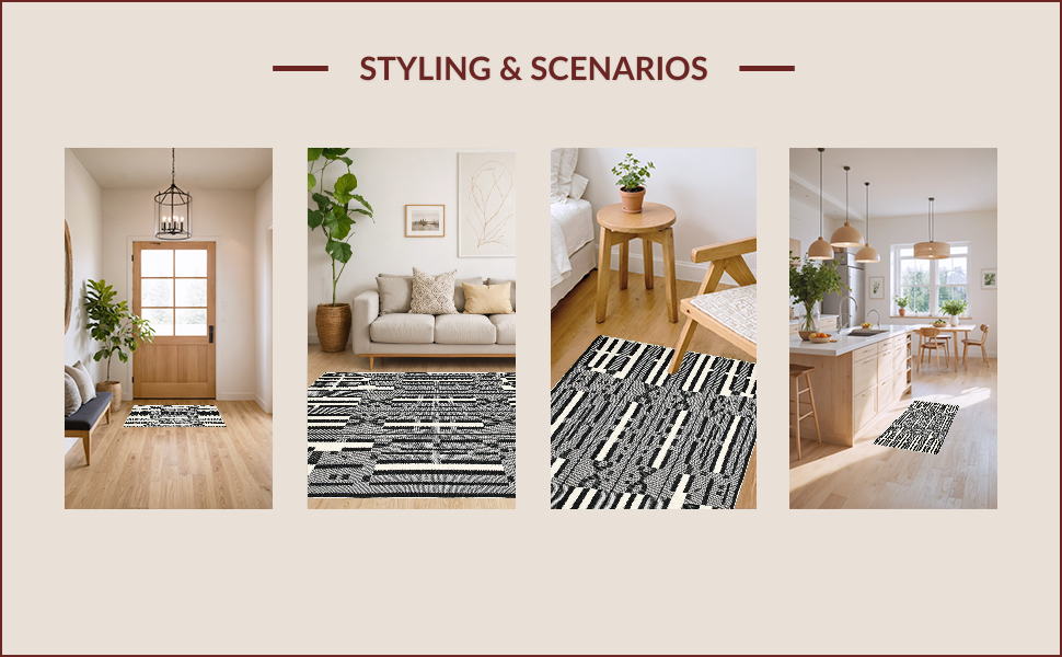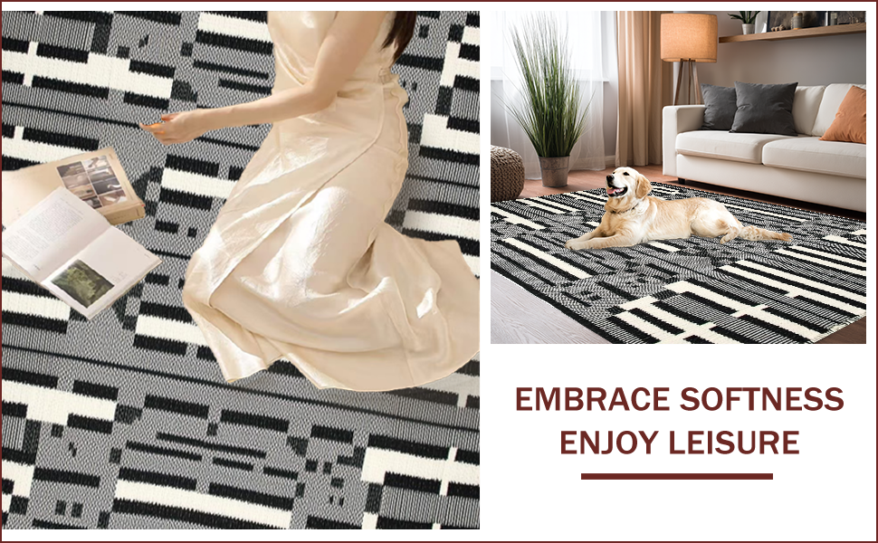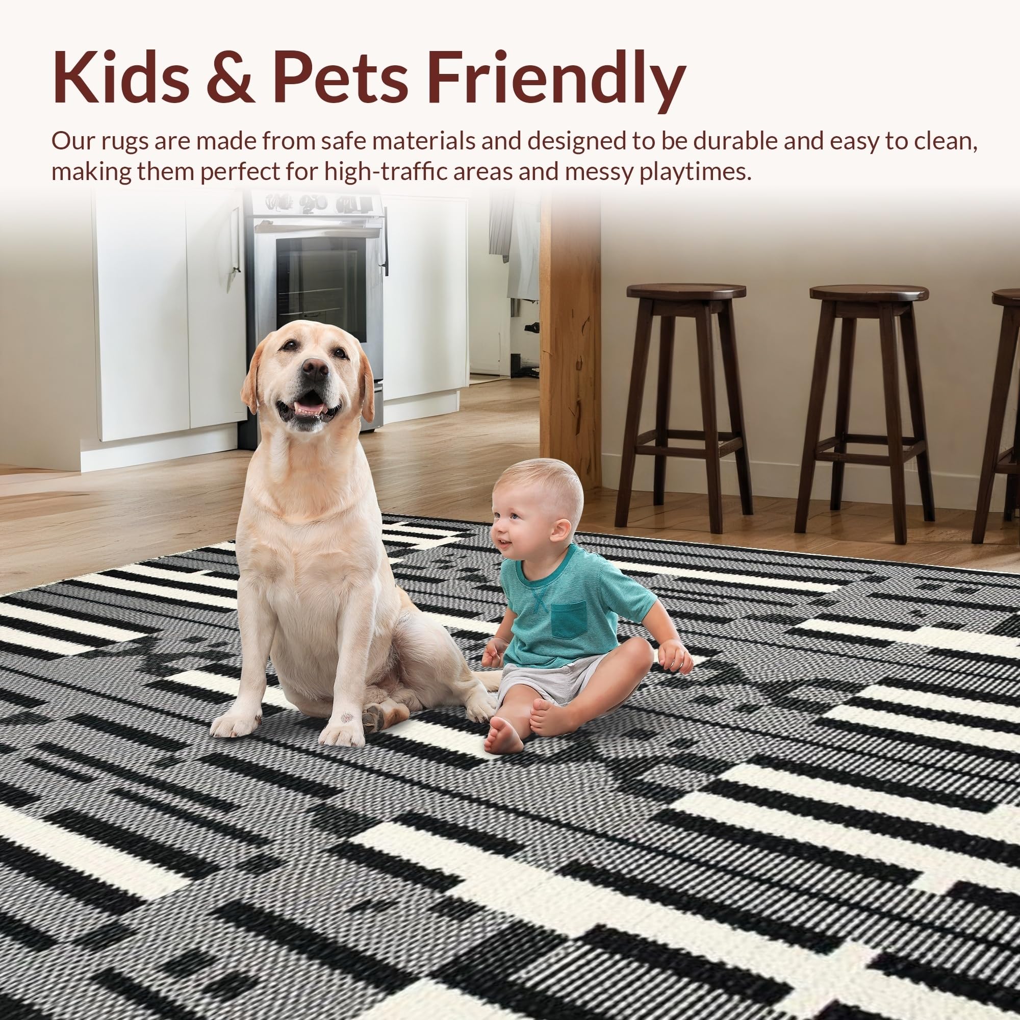 Ultra Soft Area Rug, Non Slip, Stain Resistant, Washable Area Rugs for Living Room, Bedroom, Stylish Textured Striped Design(Black) Overview: