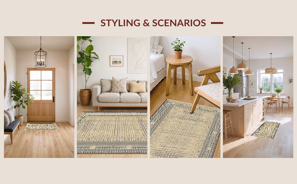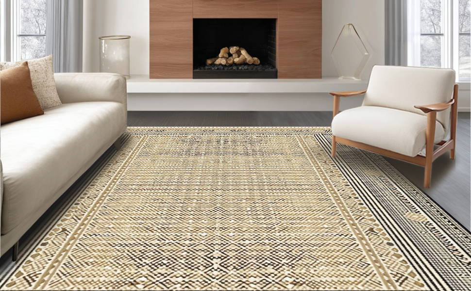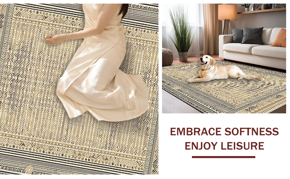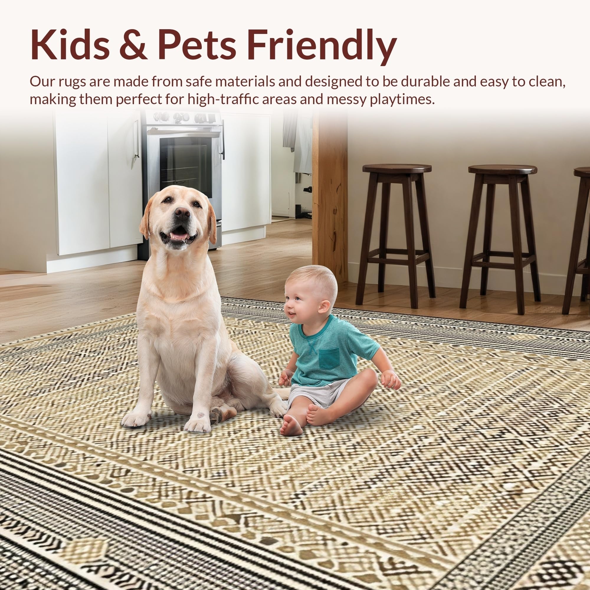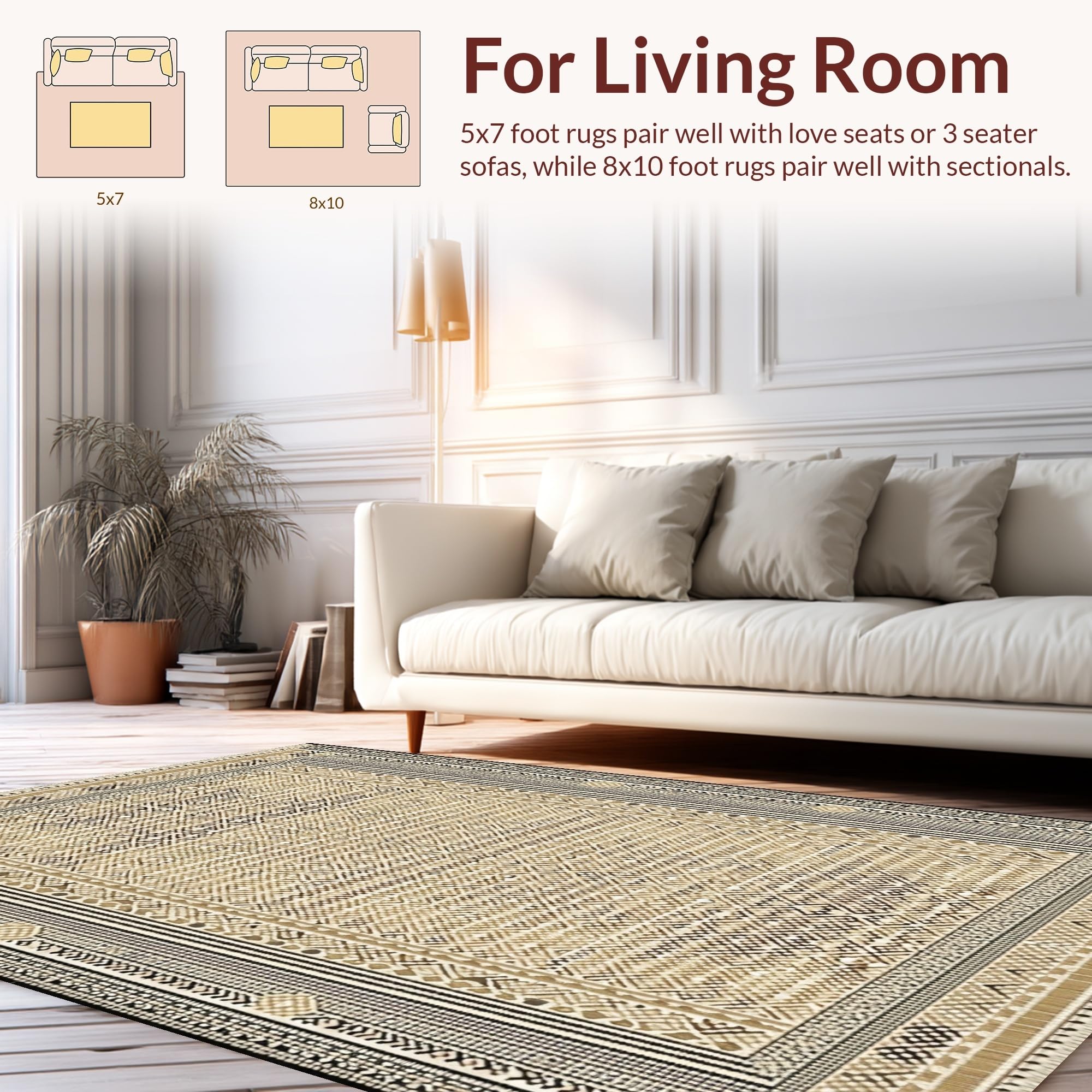 Ultra Soft Area Rug, Non Slip, Stain Resistant, Washable Area Rugs for Living Room, Bedroom, Stylish Transitional Ogee Layout(Beige) Overview: