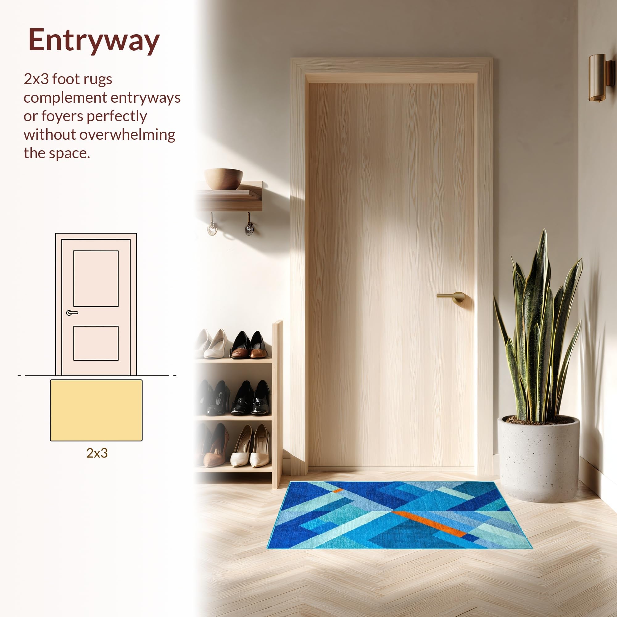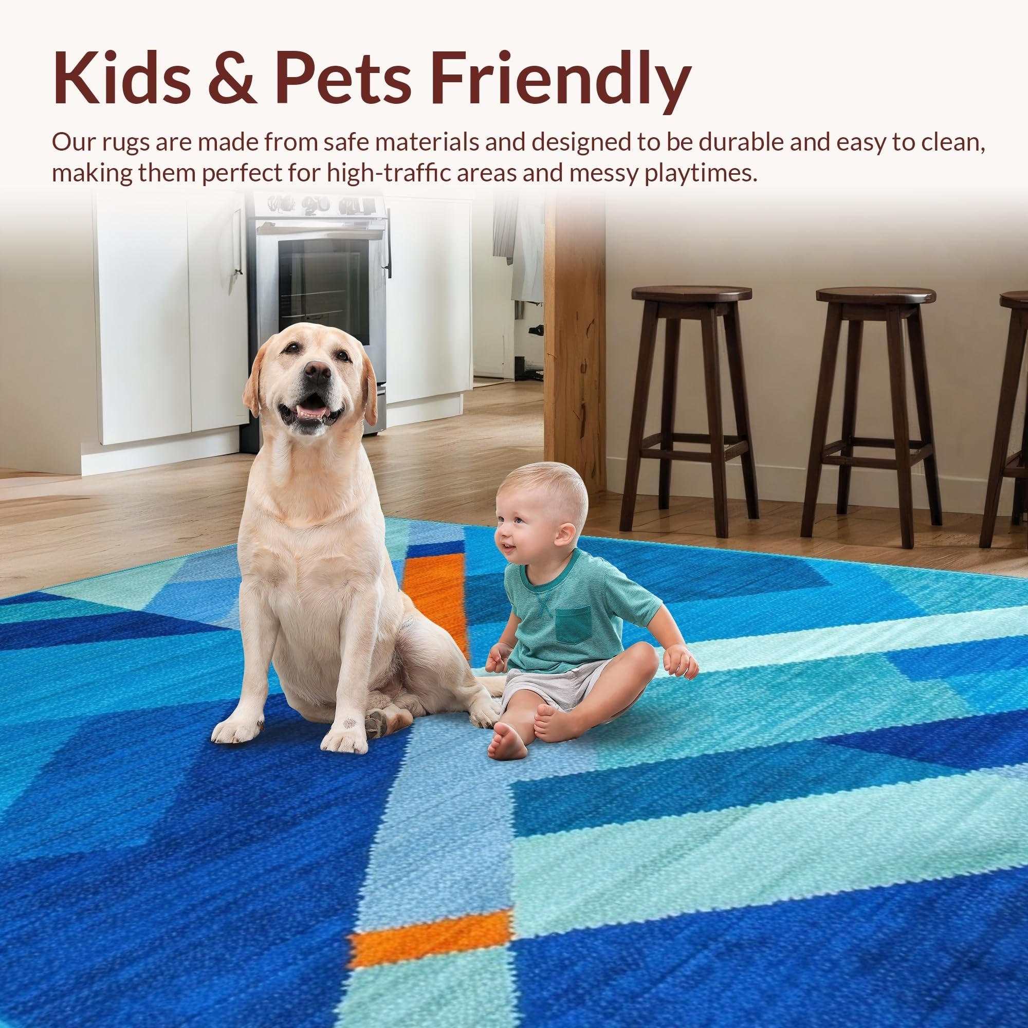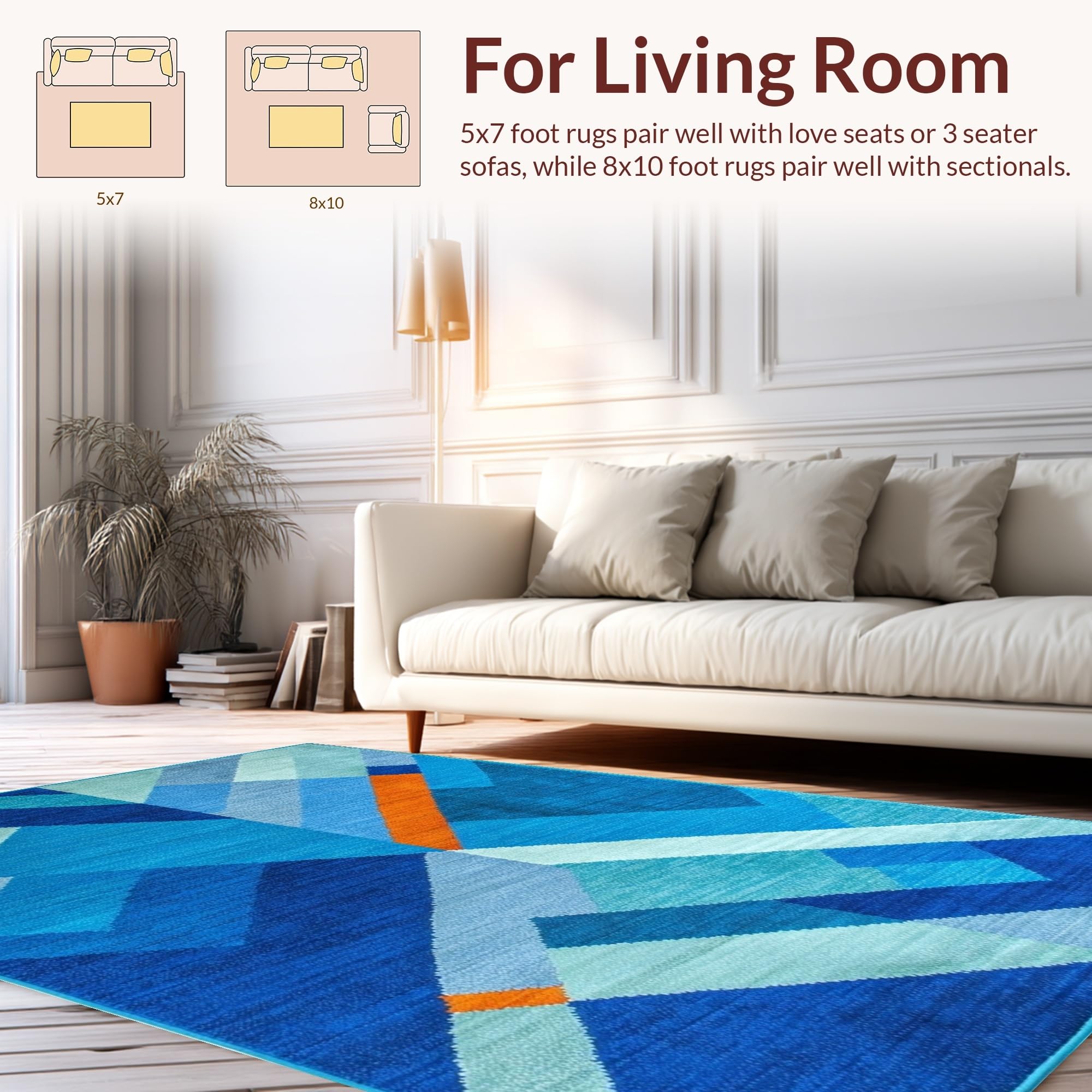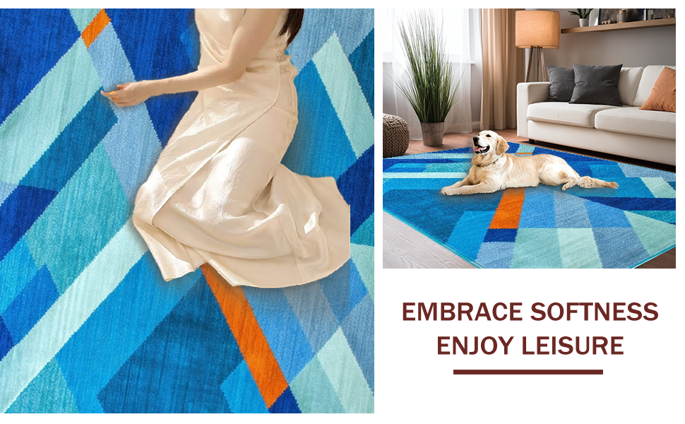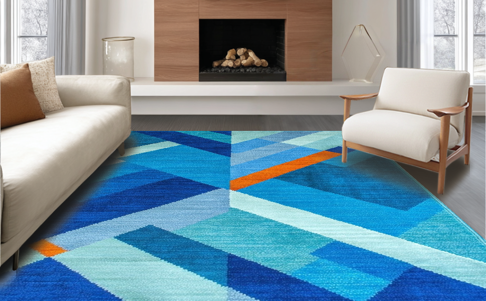Ultra Soft Area Rug, Non Slip, Stain Resistant, Washable Area Rugs for Living Room, Bedroom, Stylish Transitional Wave Motif(Blue) Overview:
