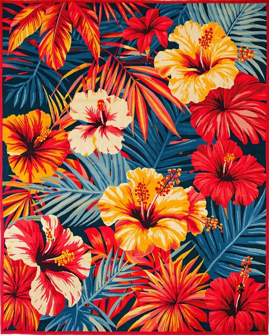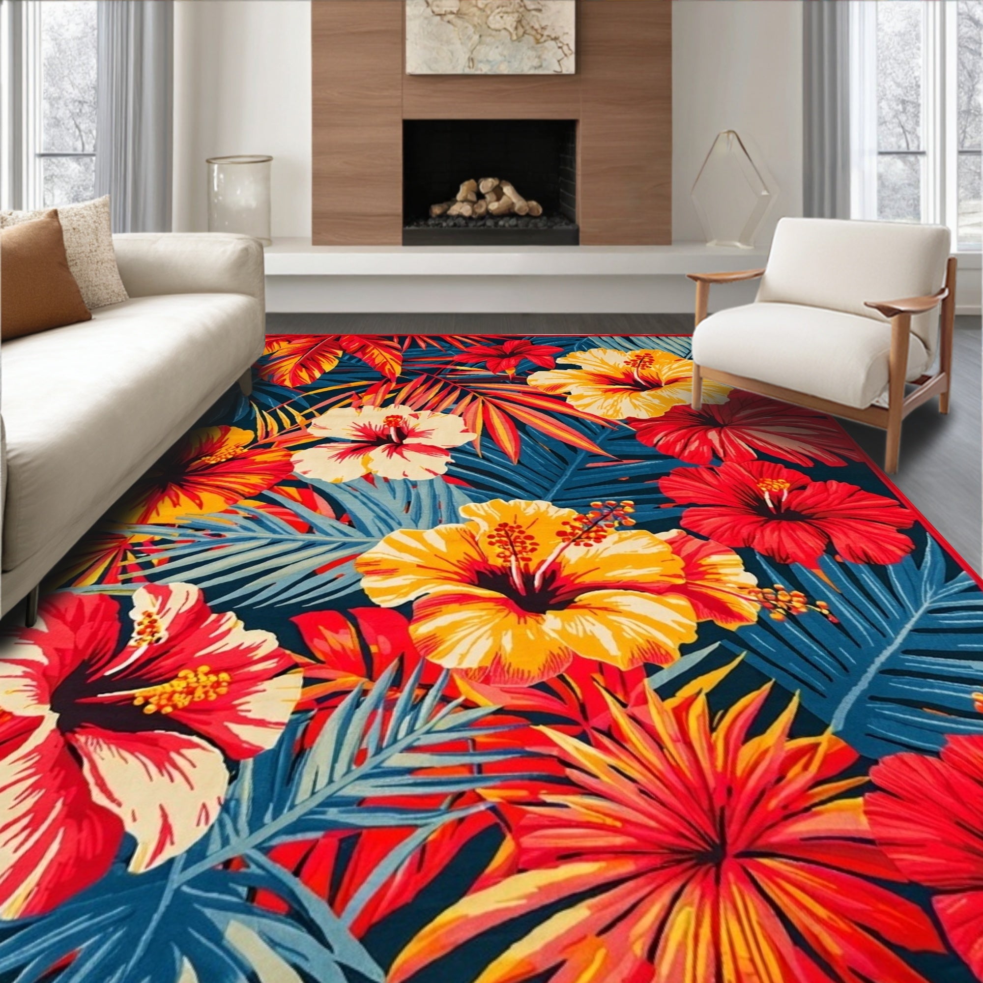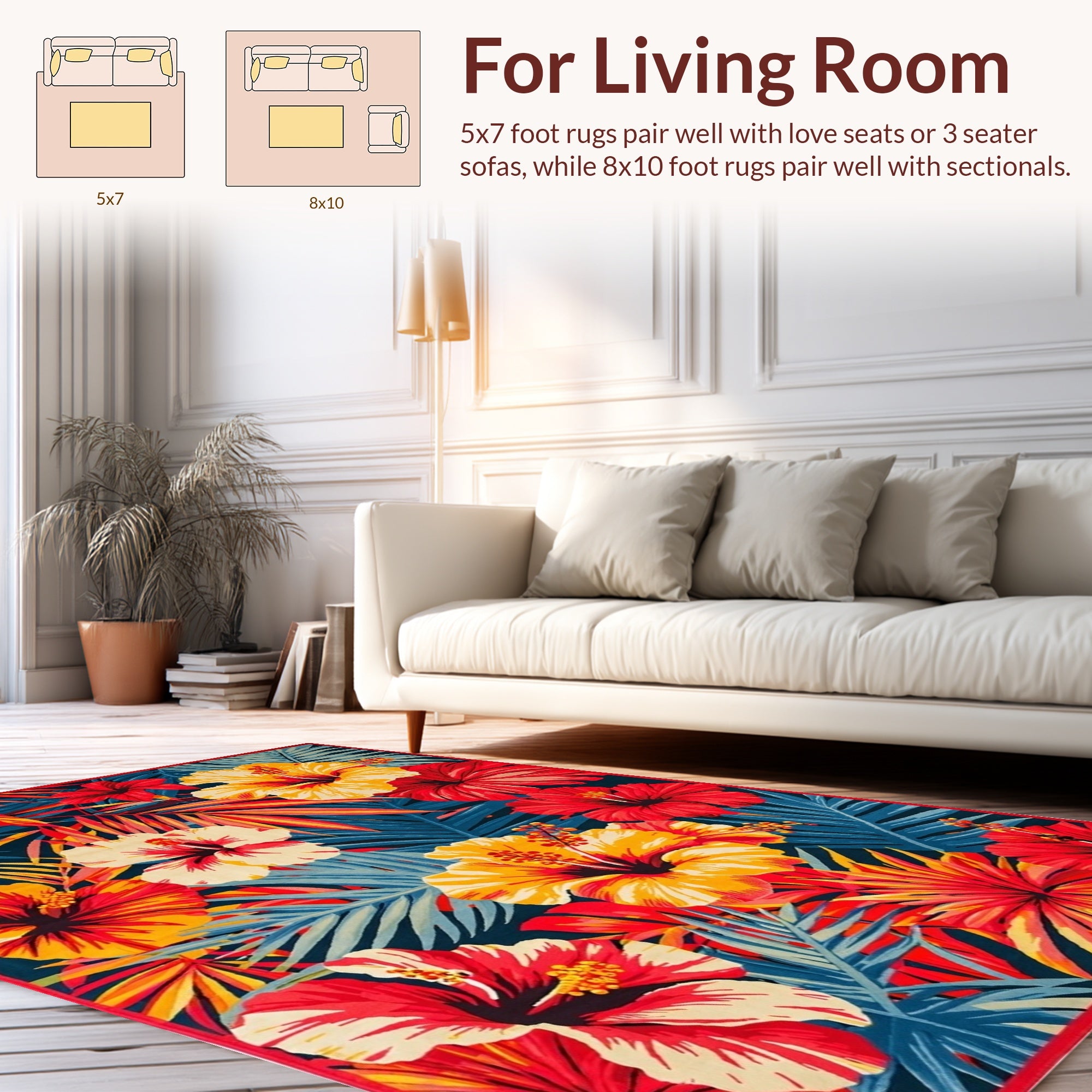 Flatwoven High Traffic Area Rug, Stylish Tropical Garden Aesthetic, Non Slip, Stain Resistant, Washable Area Rugs for Living Room, Bedroom (Red) Overview: