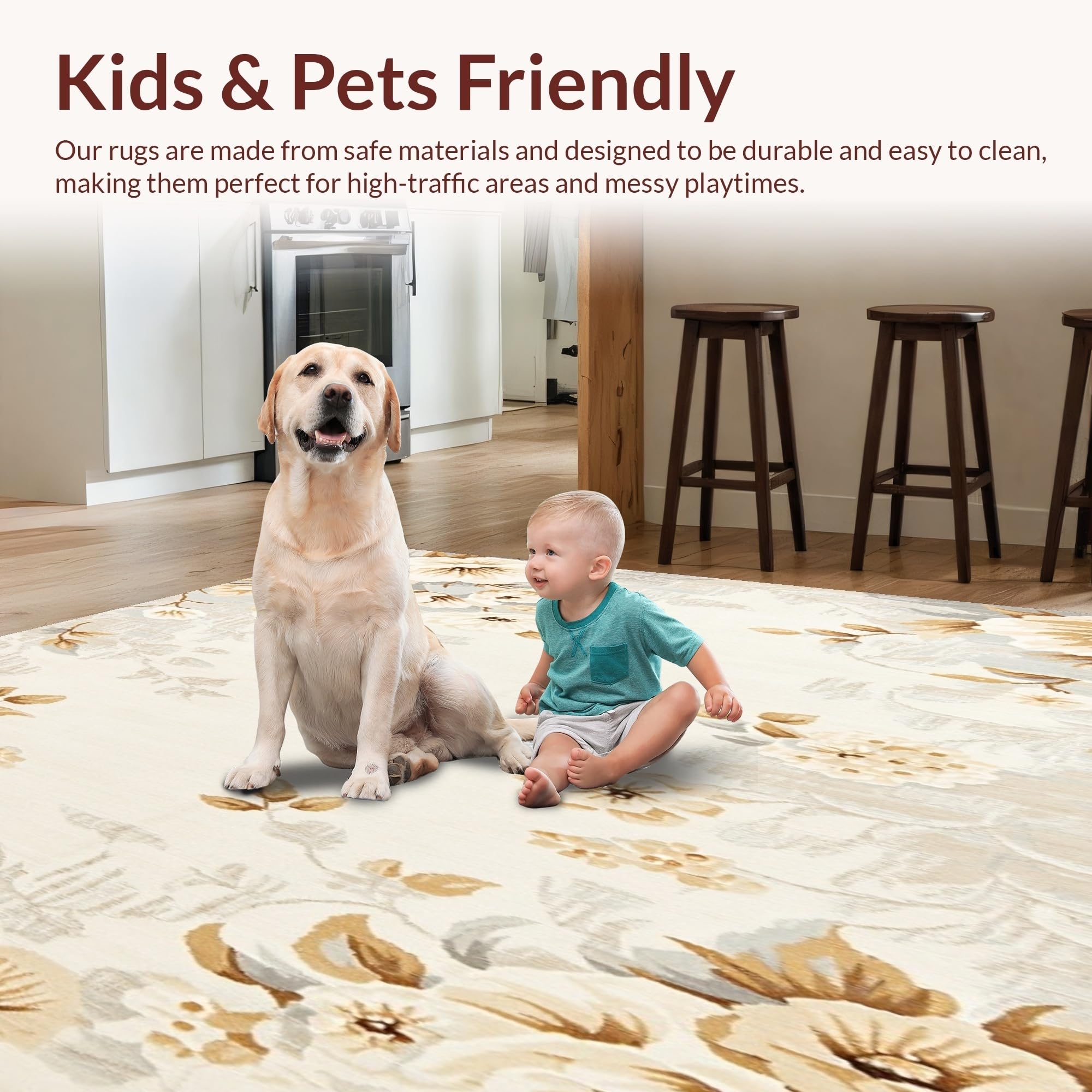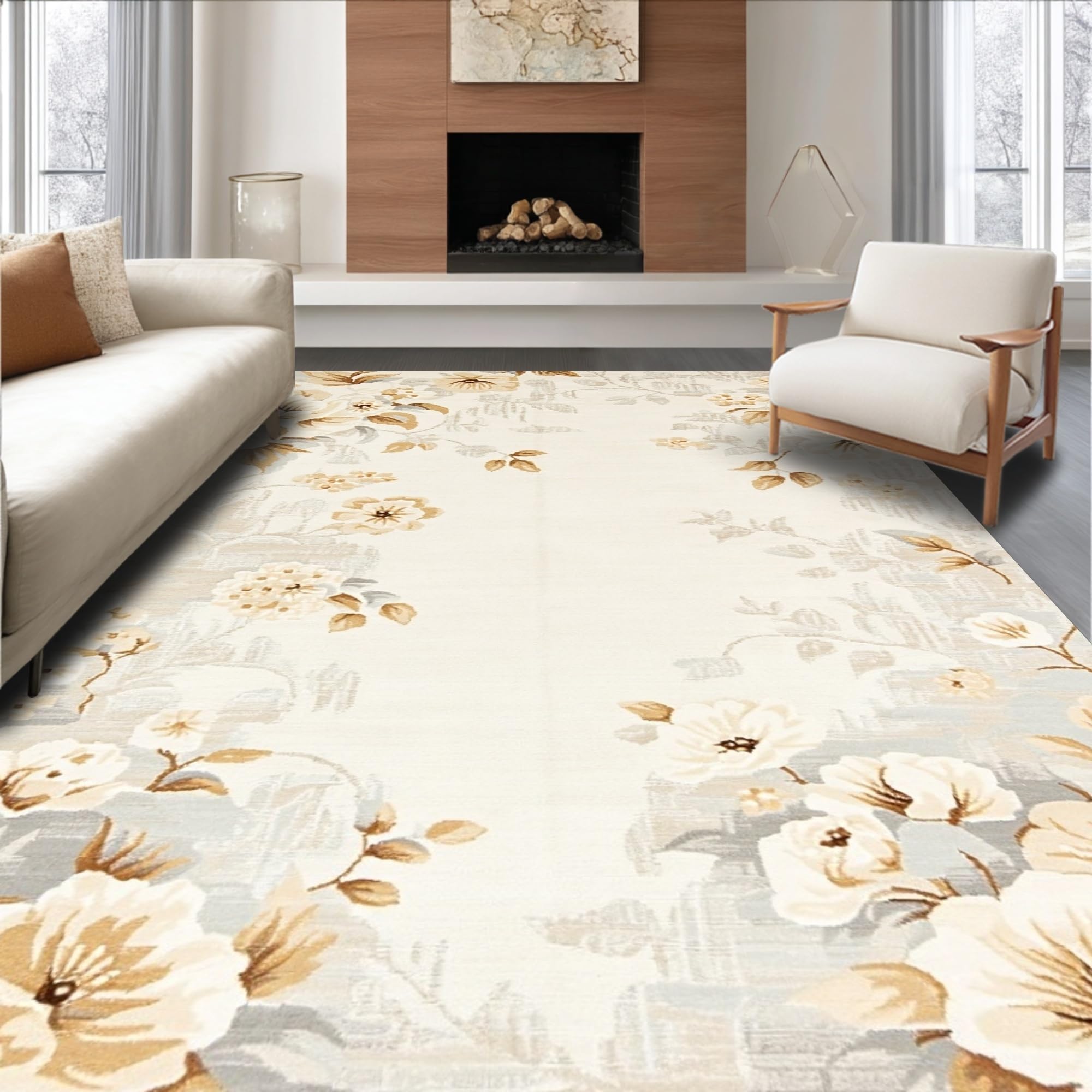 Ultra Soft Area Rug, Non Slip, Stain Resistant, Washable Area Rugs for Living Room, Bedroom, Stylish Tufted with Vibrant Floral Motifs in Neutral Shades(Beige) Overview: