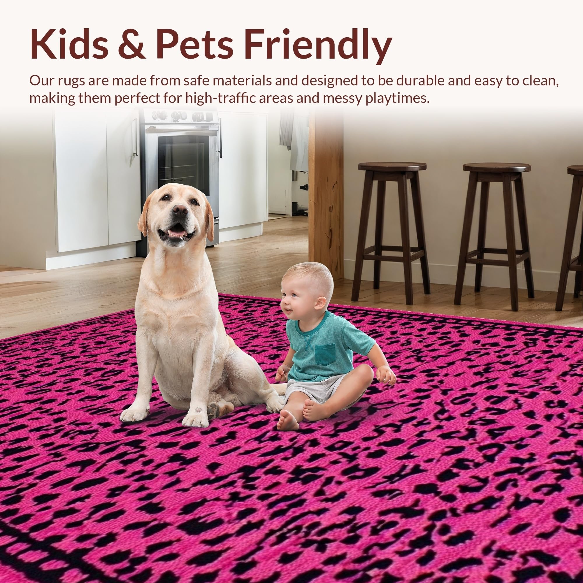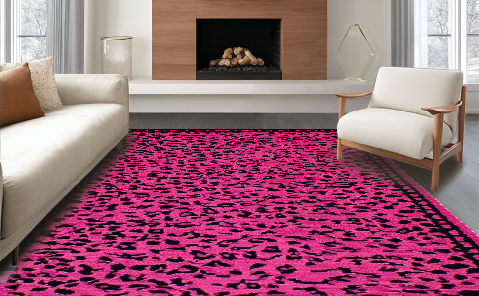 Ultra Soft Area Rug, Non Slip, Stain Resistant, Washable Area Rugs for Living Room, Bedroom, Stylish Urban Wild Pattern(Pink) Overview:
