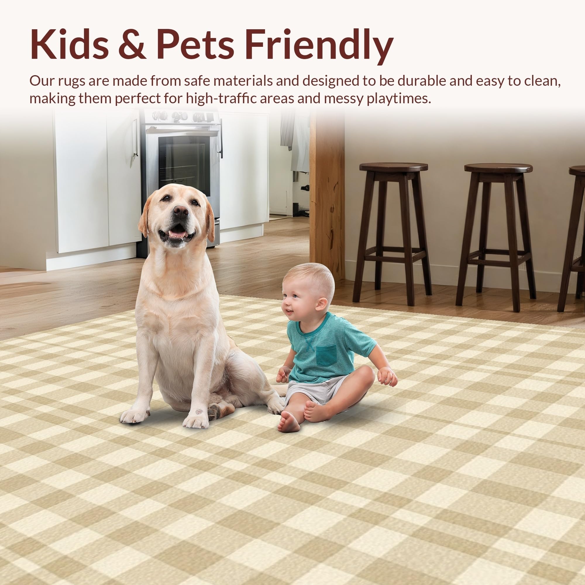 Ultra Soft Area Rug, Non Slip, Stain Resistant, Washable Area Rugs for Living Room, Bedroom, Stylish Warm Earthy Shag Design(Beige) Overview: