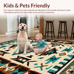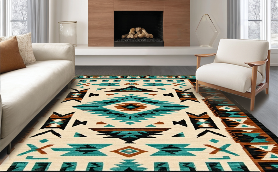 Ultra Soft Area Rug, Non Slip, Stain Resistant, Washable Area Rugs for Living Room, Bedroom, Stylish Warm Toned Geometric Arrangement(Blue) Overview: