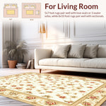 Flatwoven High Traffic Area Rug, Subtle Beige Floral Accents, Non Slip, Stain Resistant, Washable Area Rugs for Living Room, Bedroom (Beige) Overview: