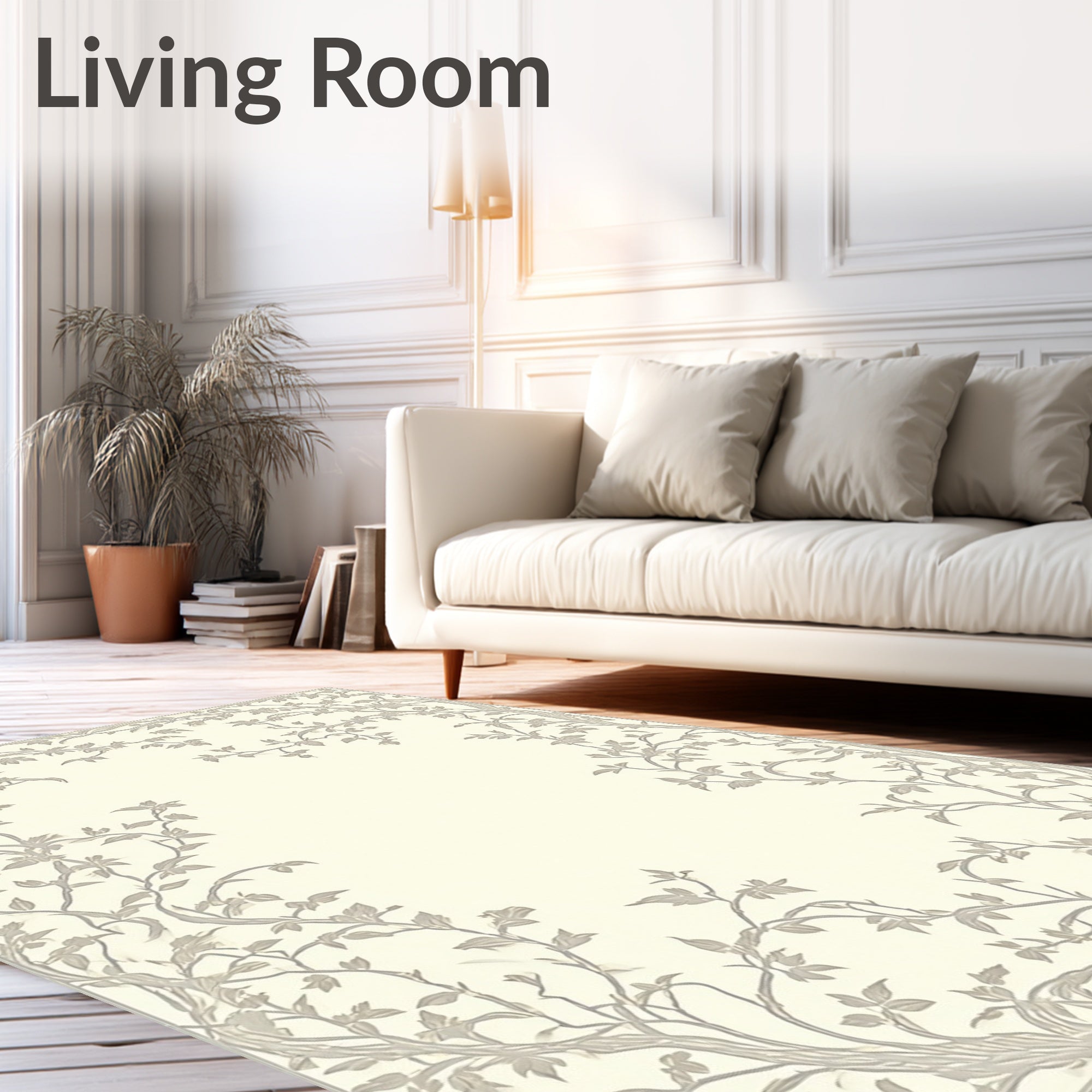 Flatwoven High Traffic Area Rug, Subtle Botanical Vine Boho with a Serene Understated, Non Slip, Stain Resistant, Washable Area Rugs for Living Room, Bedroom (Beige) Overview:
