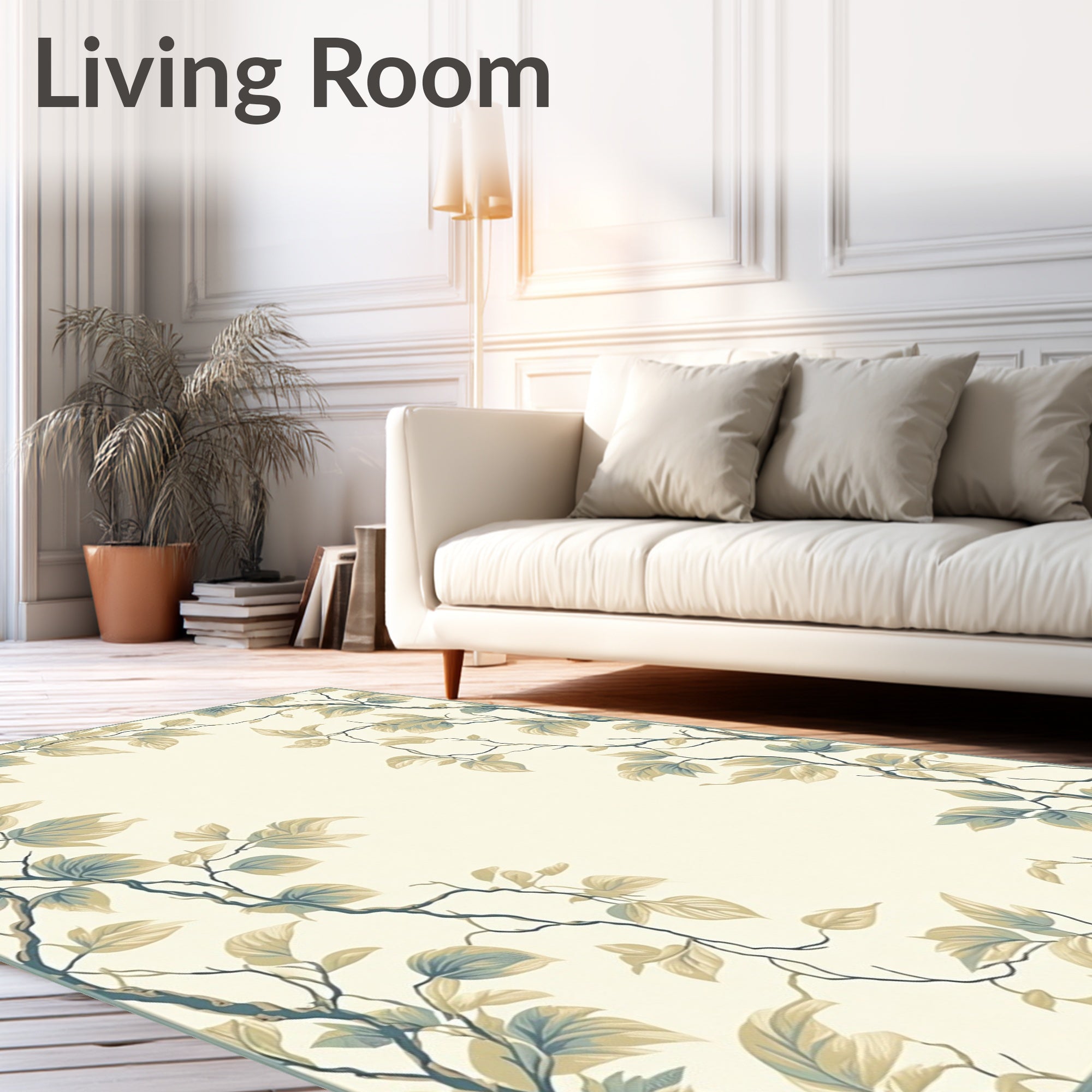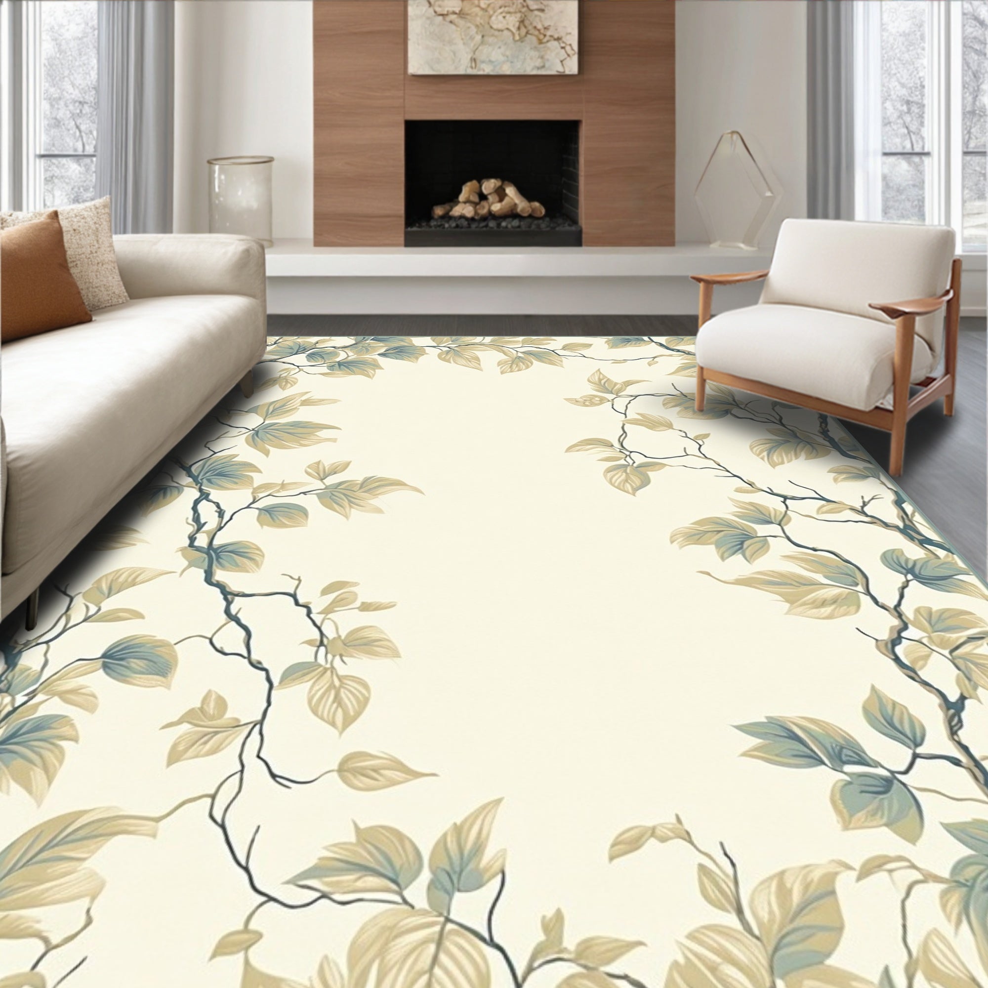 Flatwoven High Traffic Area Rug, Subtle Jungle Vine with Light Backdrop and Beige Leafy Silhouettes, Non Slip, Stain Resistant, Washable Area Rugs for Living Room, Bedroom (Beige) Overview: