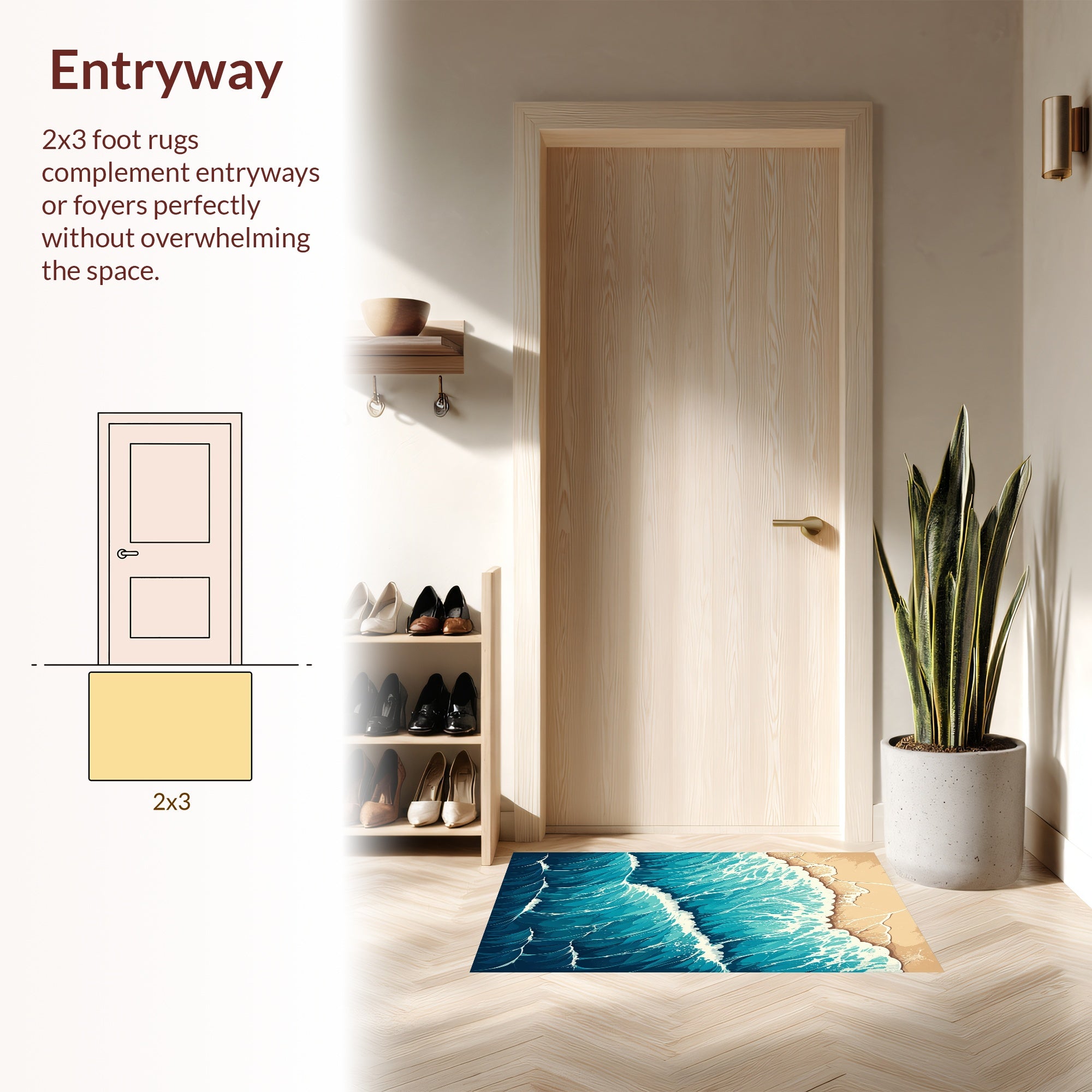 Flatwoven High Traffic Area Rug, Summer Seaside Aesthetic Non Slip, Non Slip, Stain Resistant, Washable Area Rugs for Living Room, Bedroom (Blue) Overview:
