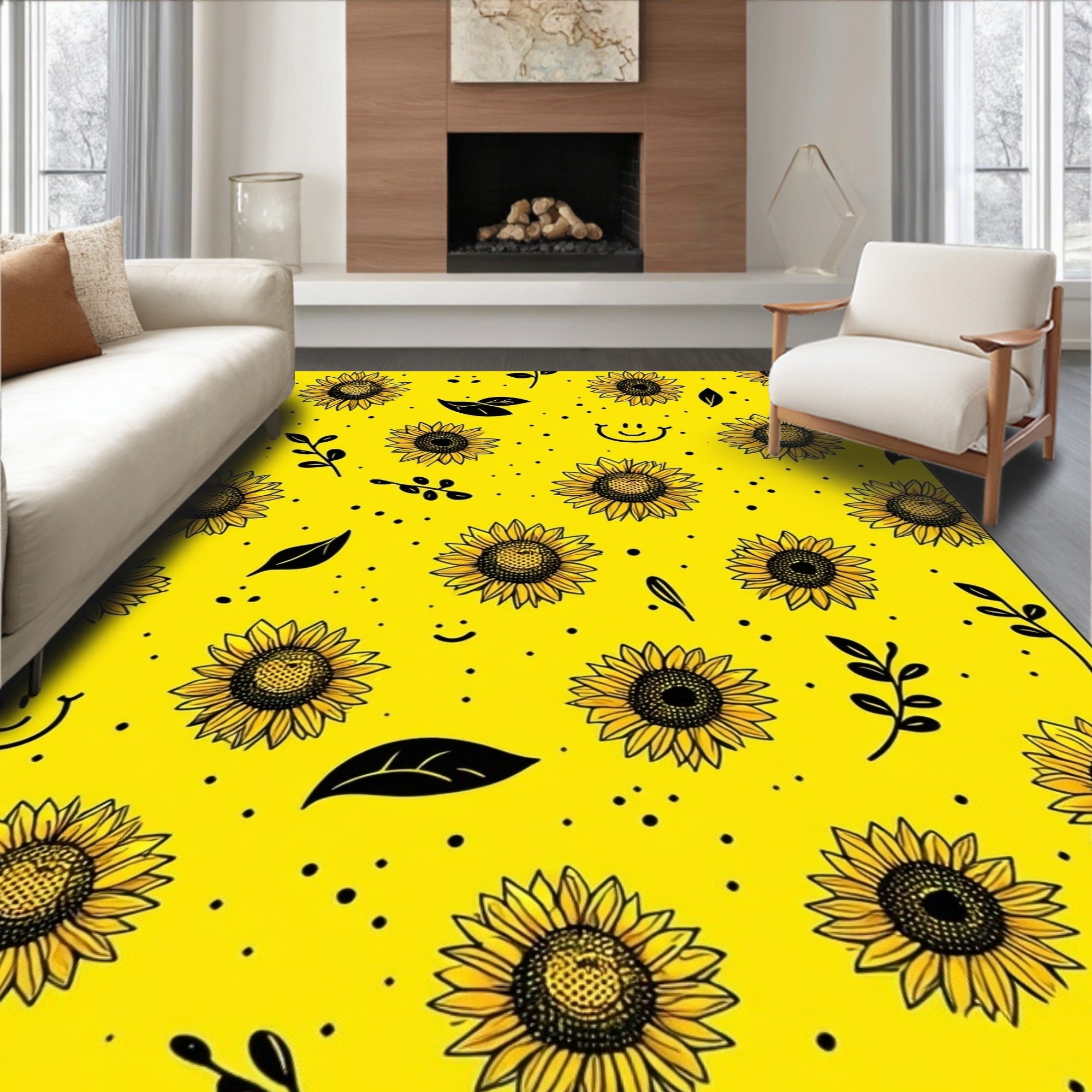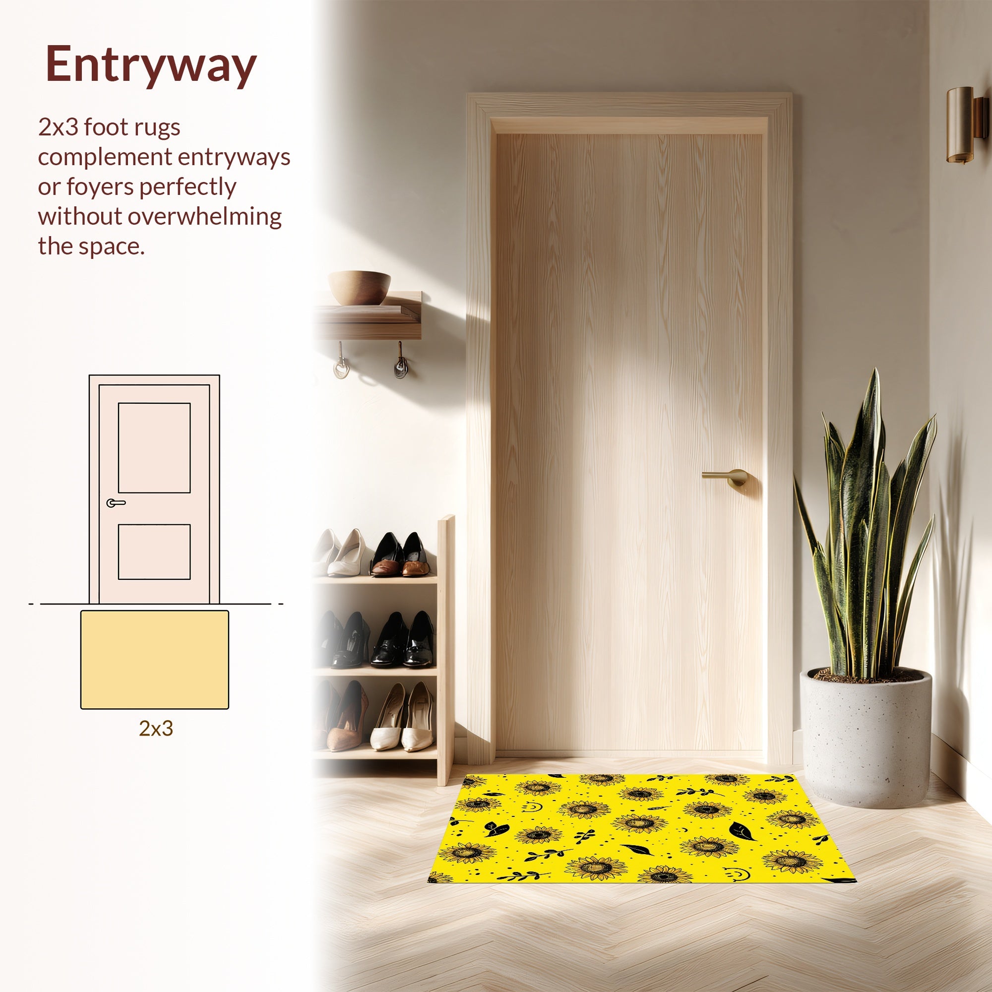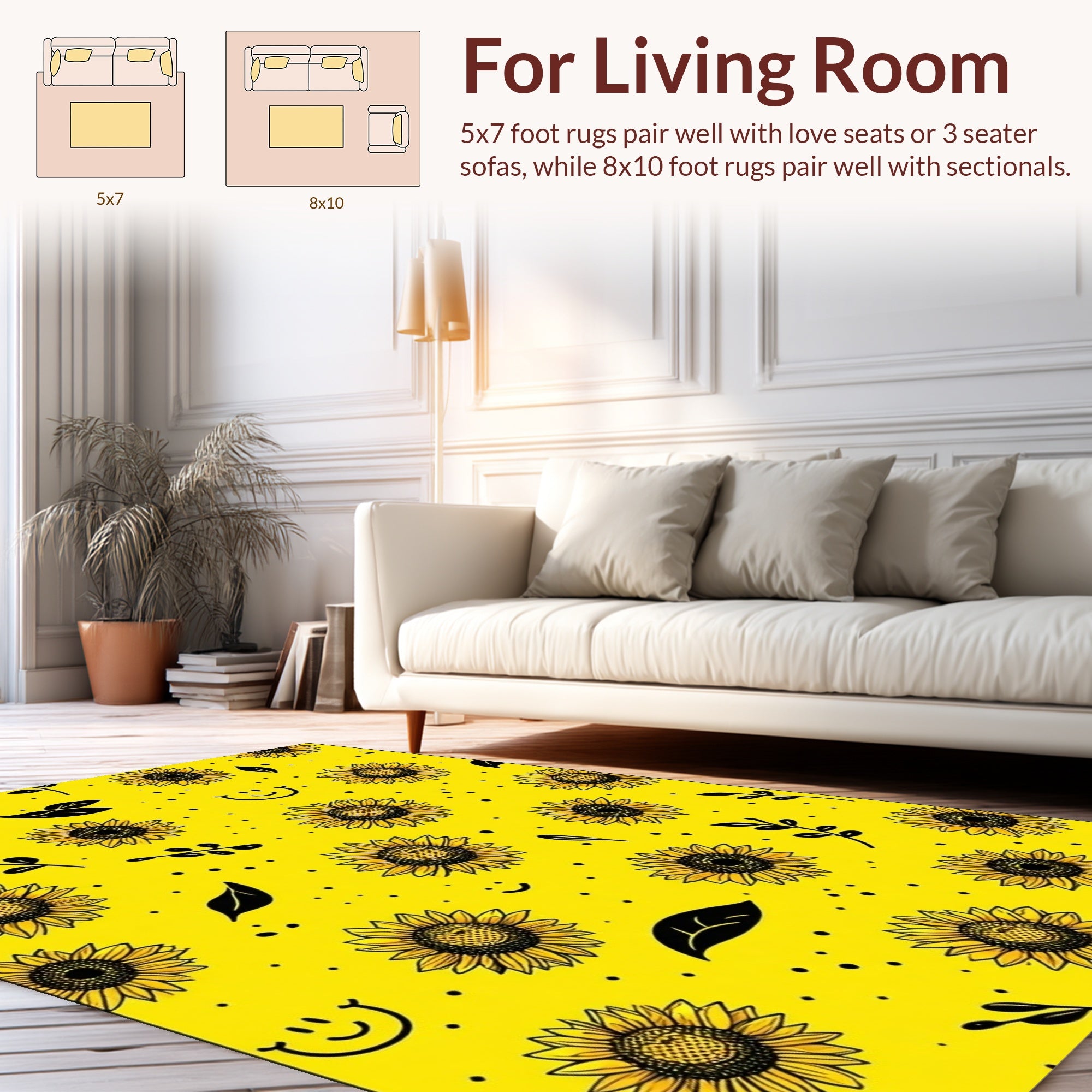 Flatwoven High Traffic Area Rug, Sunny Floral Vibe, Non Slip, Stain Resistant, Washable Area Rugs for Living Room, Bedroom (Yellow) Overview: