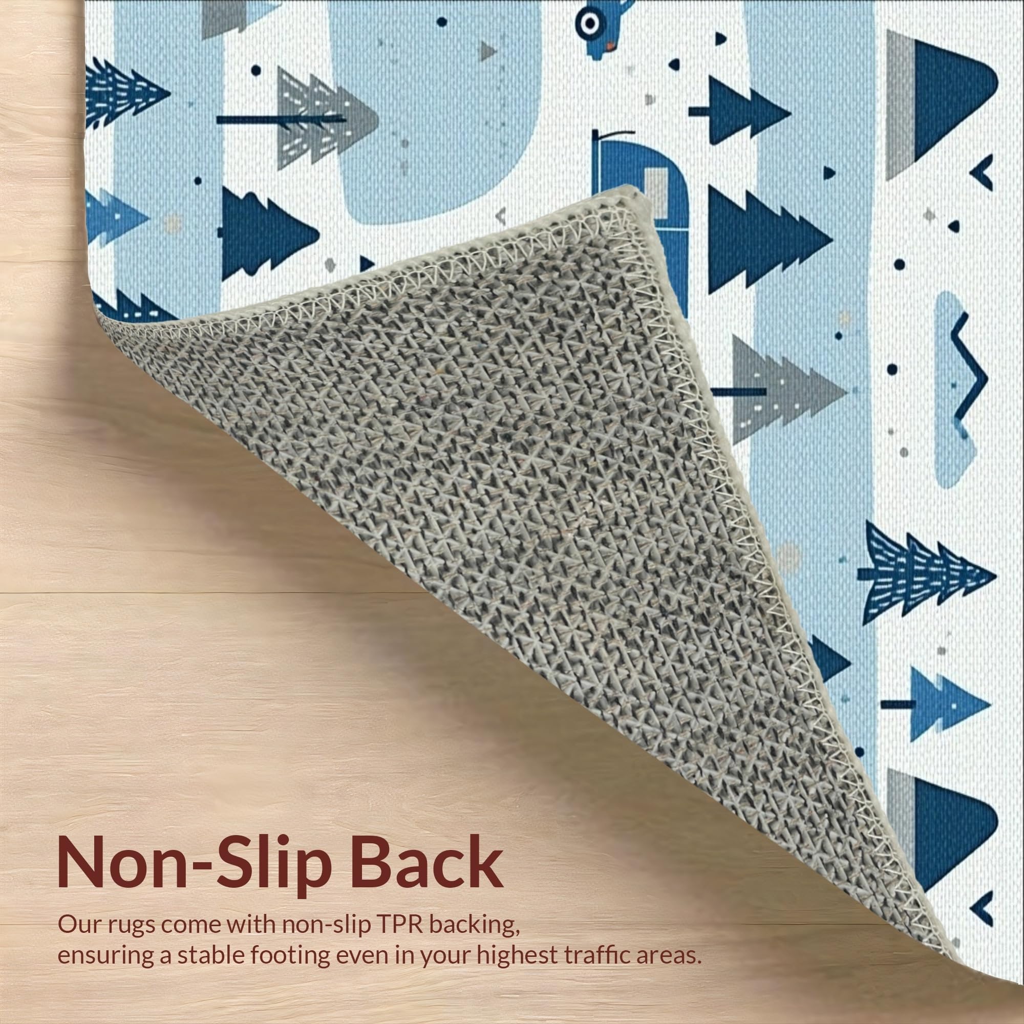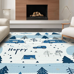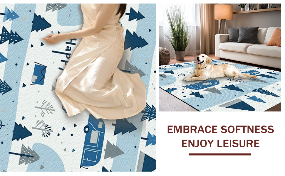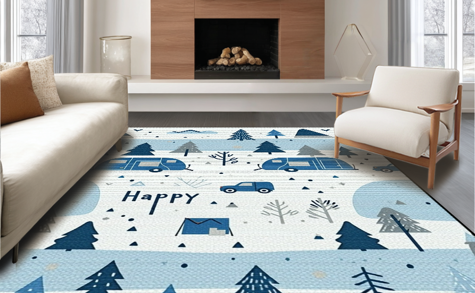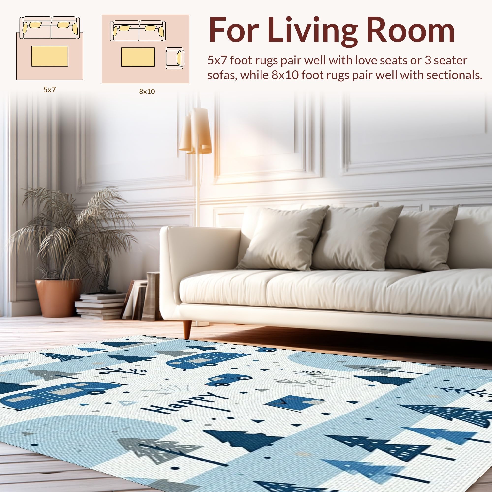 Ultra Soft Area Rug, Non Slip, Stain Resistant, Washable Area Rugs for Living Room, Bedroom, Sunny Retro Camping Iconography(Blue) Overview: