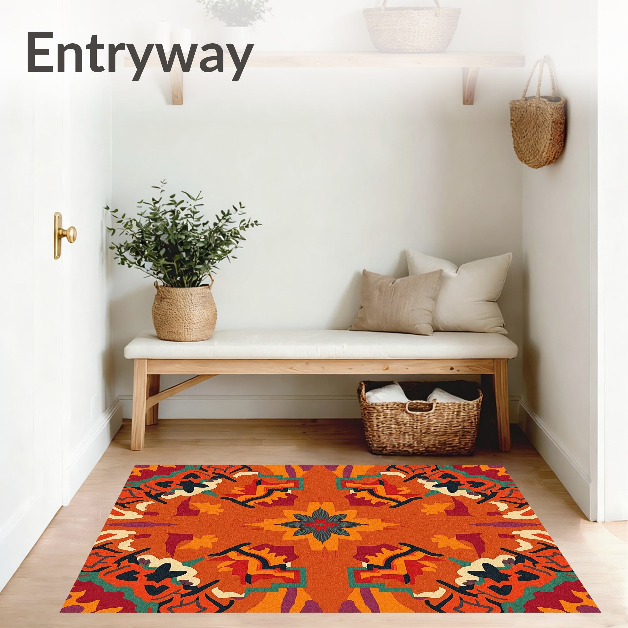 Ultra Soft Area Rug, Non Slip, Stain Resistant, Washable Area Rugs for Living Room, Bedroom, Sunset Canyon Southwest Inspired Artistic Distressed Texture(Orange) Overview: