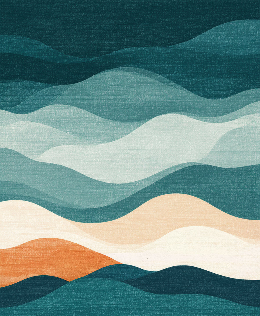 Sunset Waves Peach Teal Gradient Artistic Modern Home Decor(Orange)