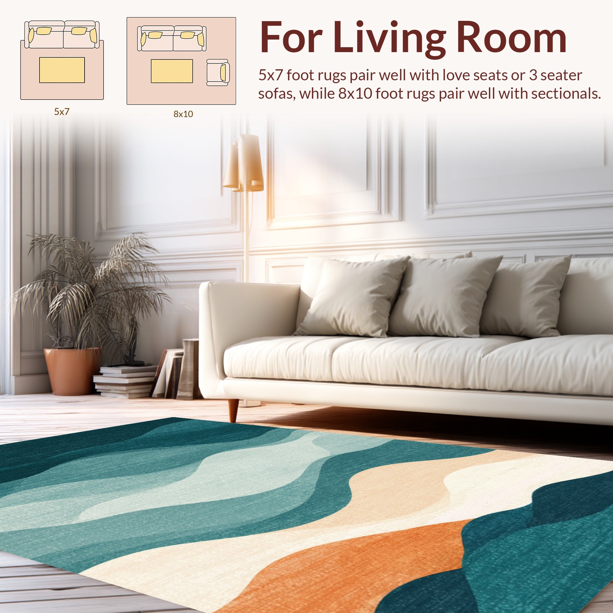 Ultra Soft Area Rug, Non Slip, Stain Resistant, Washable Area Rugs for Living Room, Bedroom, Sunset Waves Peach Teal Gradient Artistic Modern Home Decor(Orange) Overview: