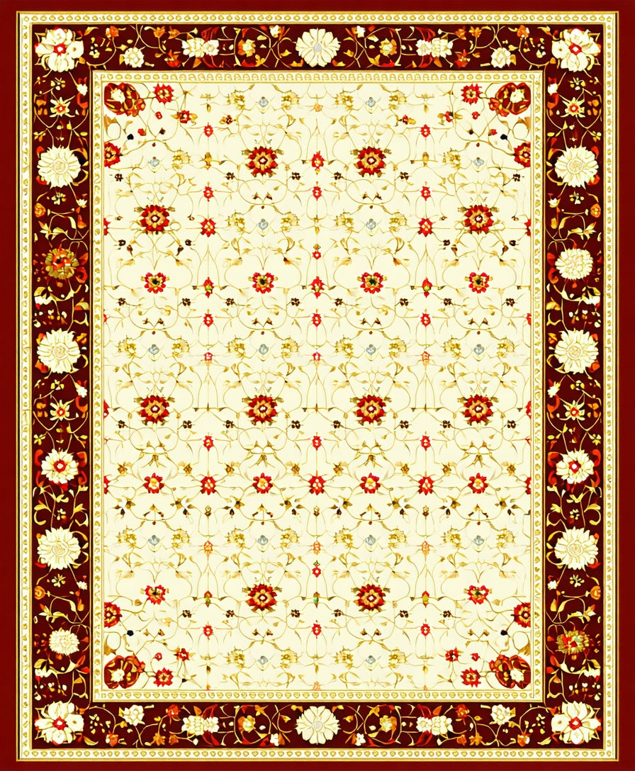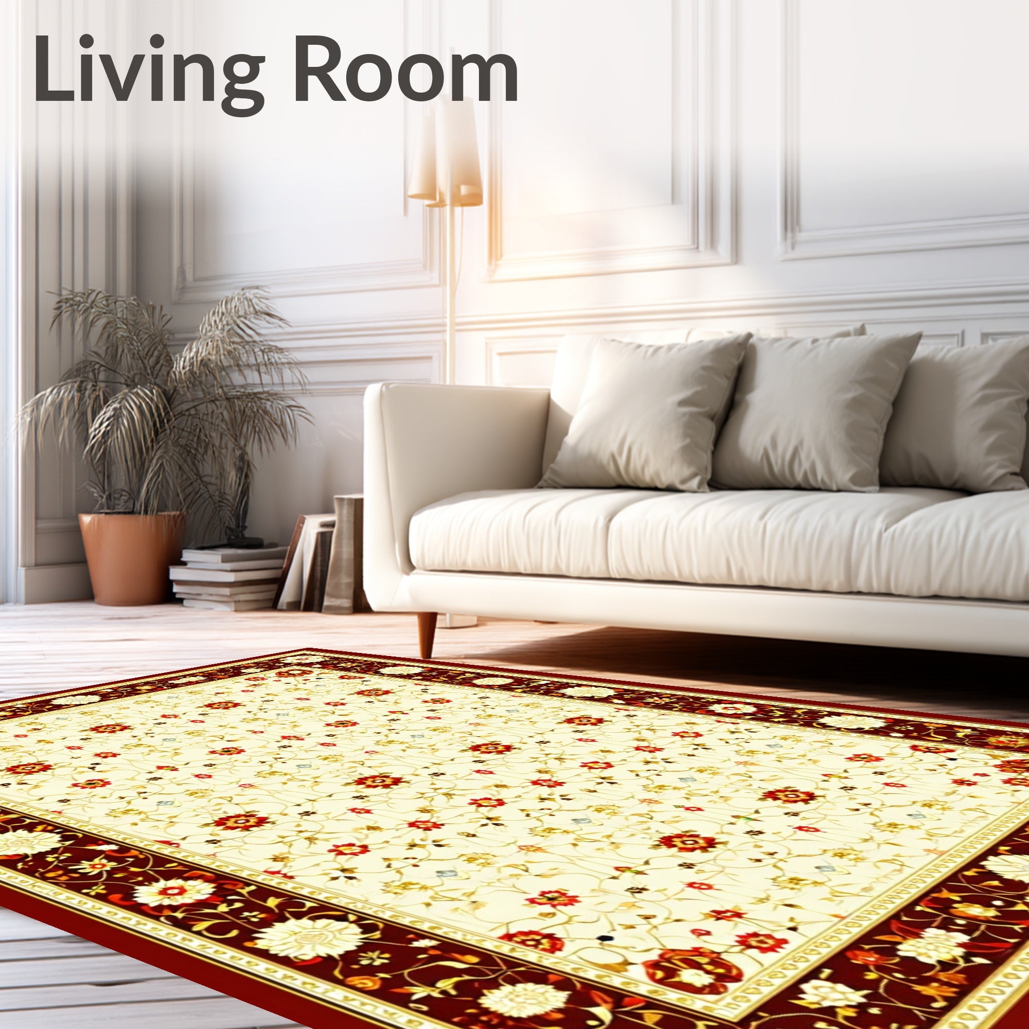 Flatwoven High Traffic Area Rug, Symmetrical Floral, Non Slip, Stain Resistant, Washable Area Rugs for Living Room, Bedroom (Beige) Overview: