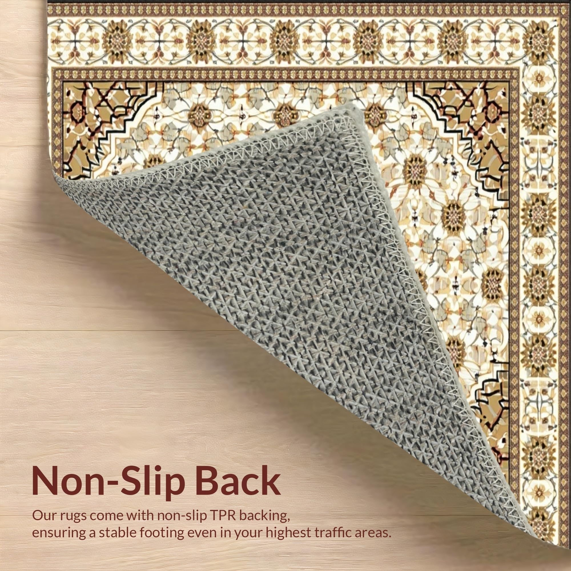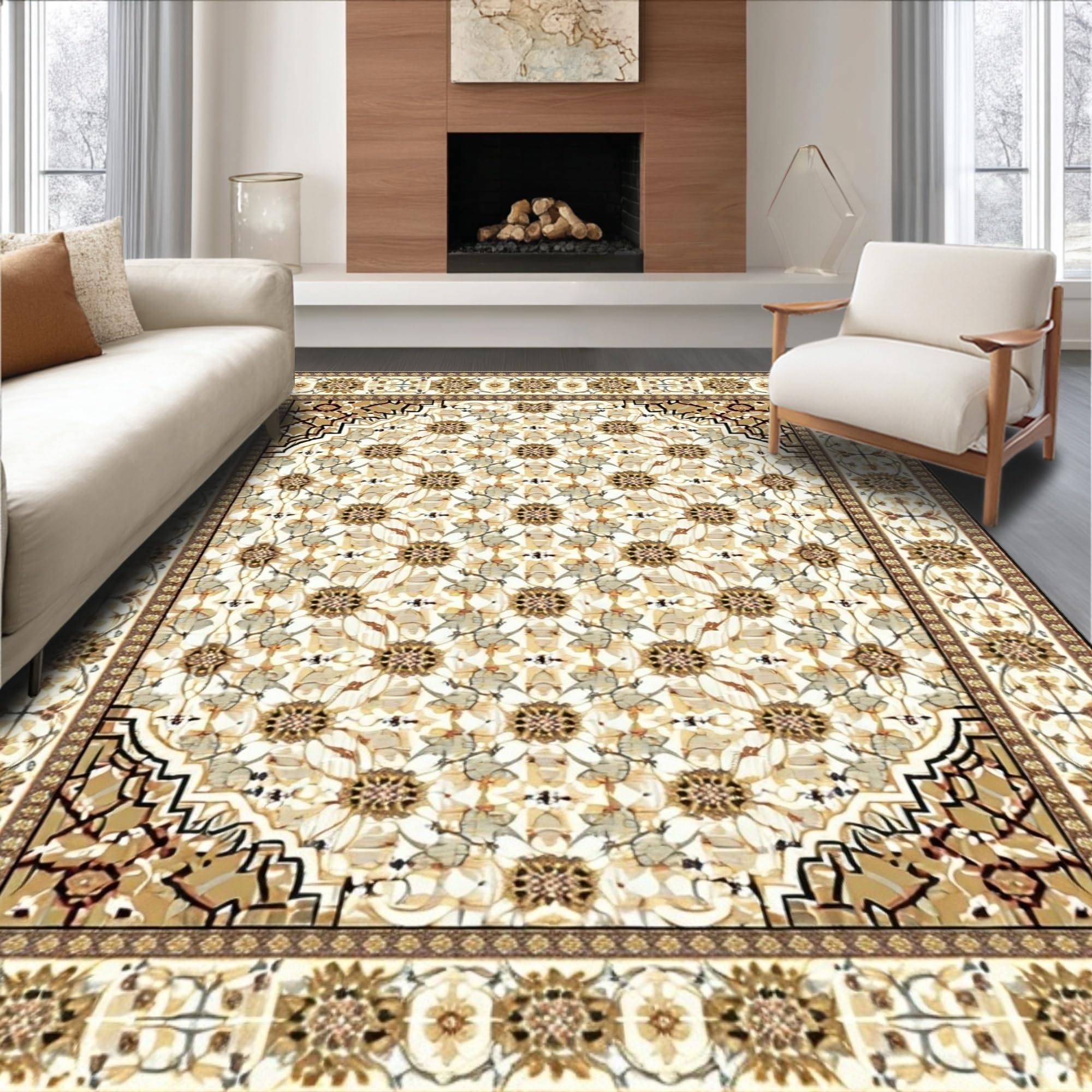 Ultra Soft Area Rug, Non Slip, Stain Resistant, Washable Area Rugs for Living Room, Bedroom, Tan Checkered Boho Rug(Beige) Overview: