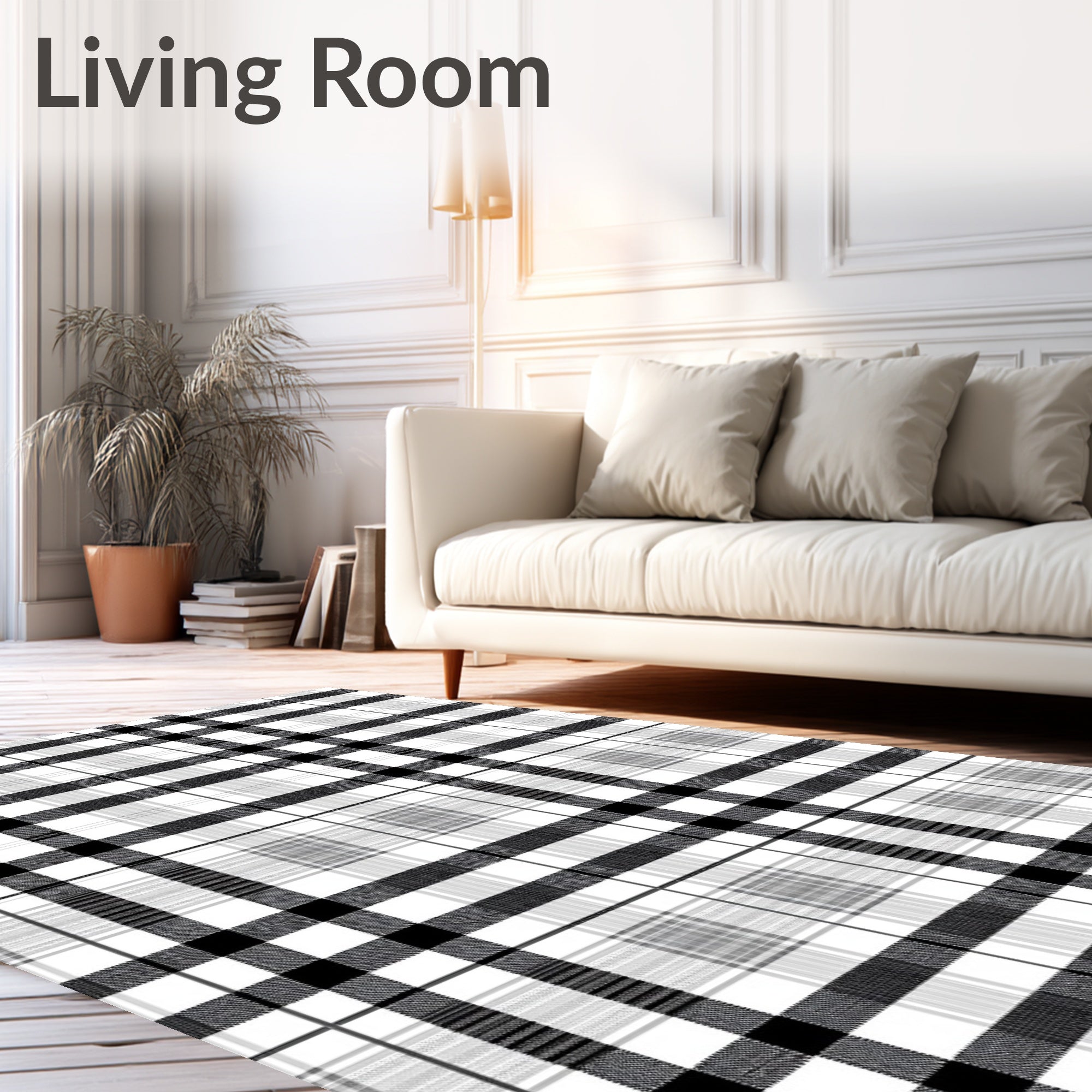 Ultra Soft Area Rug, Non Slip, Stain Resistant, Washable Area Rugs for Living Room, Bedroom, Tartan Inspired Checkered Holiday Floor Design(Black) Overview: