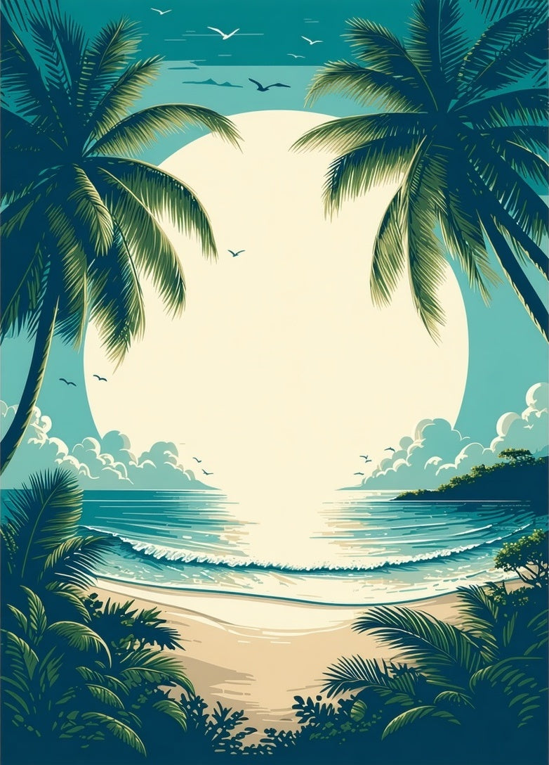 Teal Beige Tropical Coconut Tree Beach Scenery Indoor(Blue)