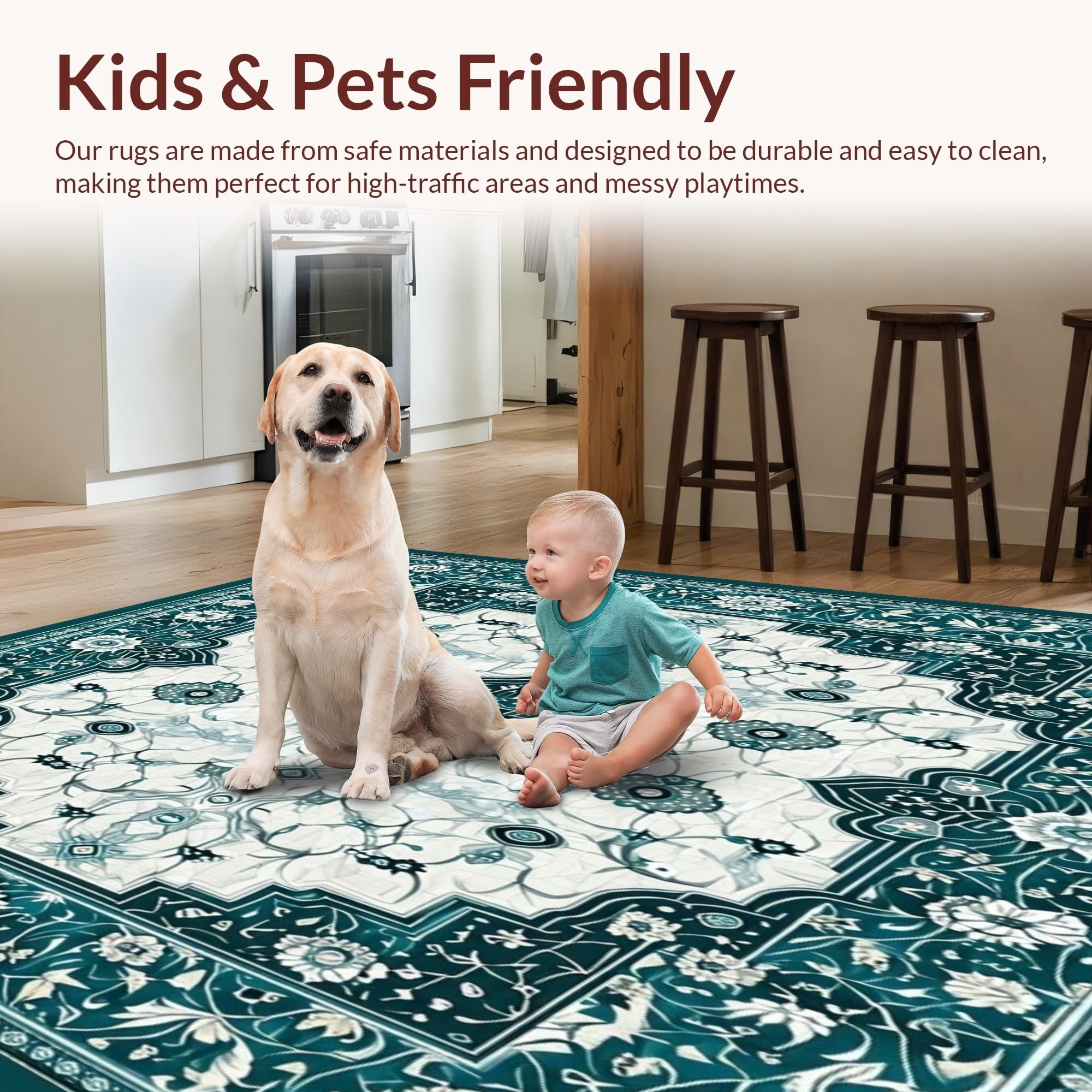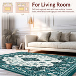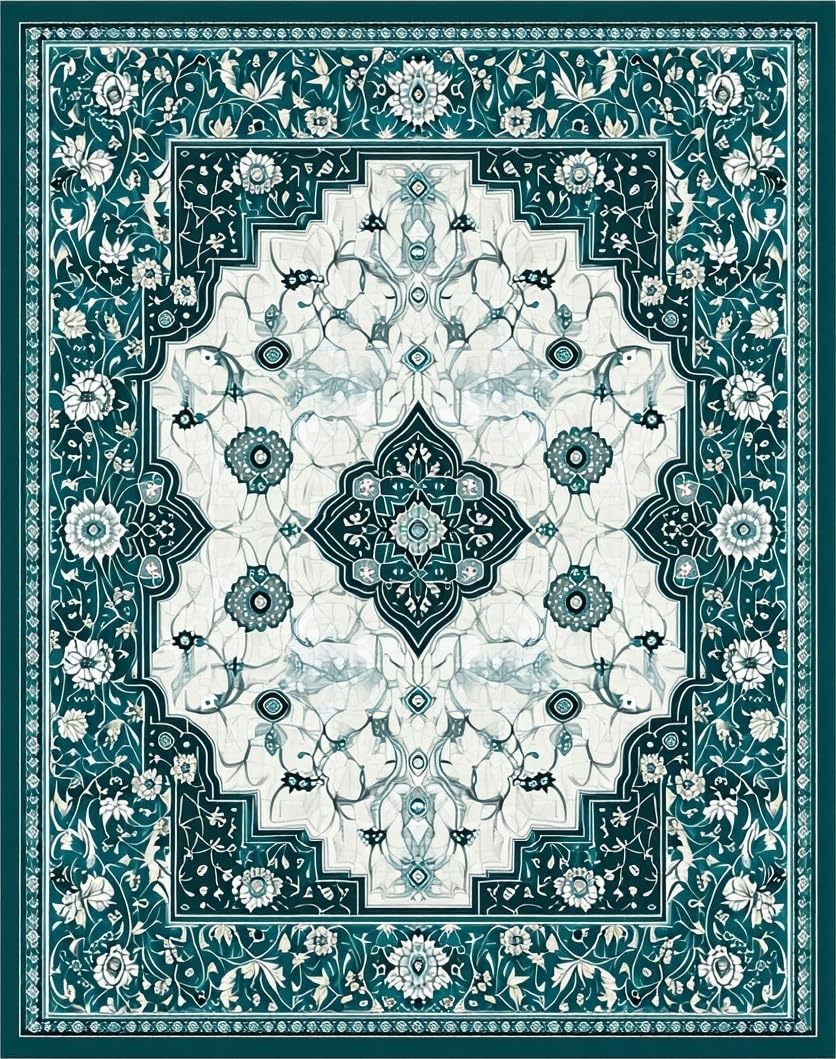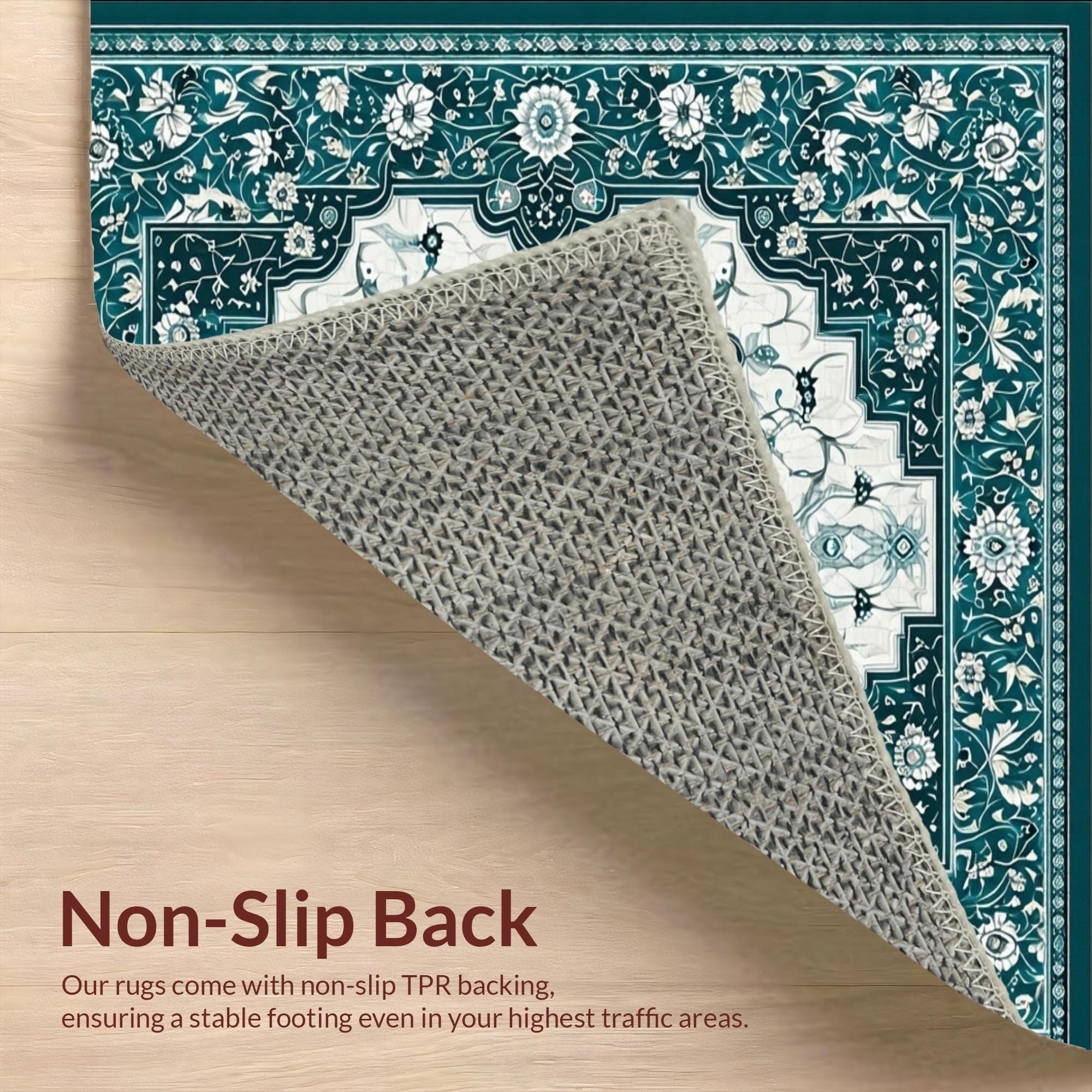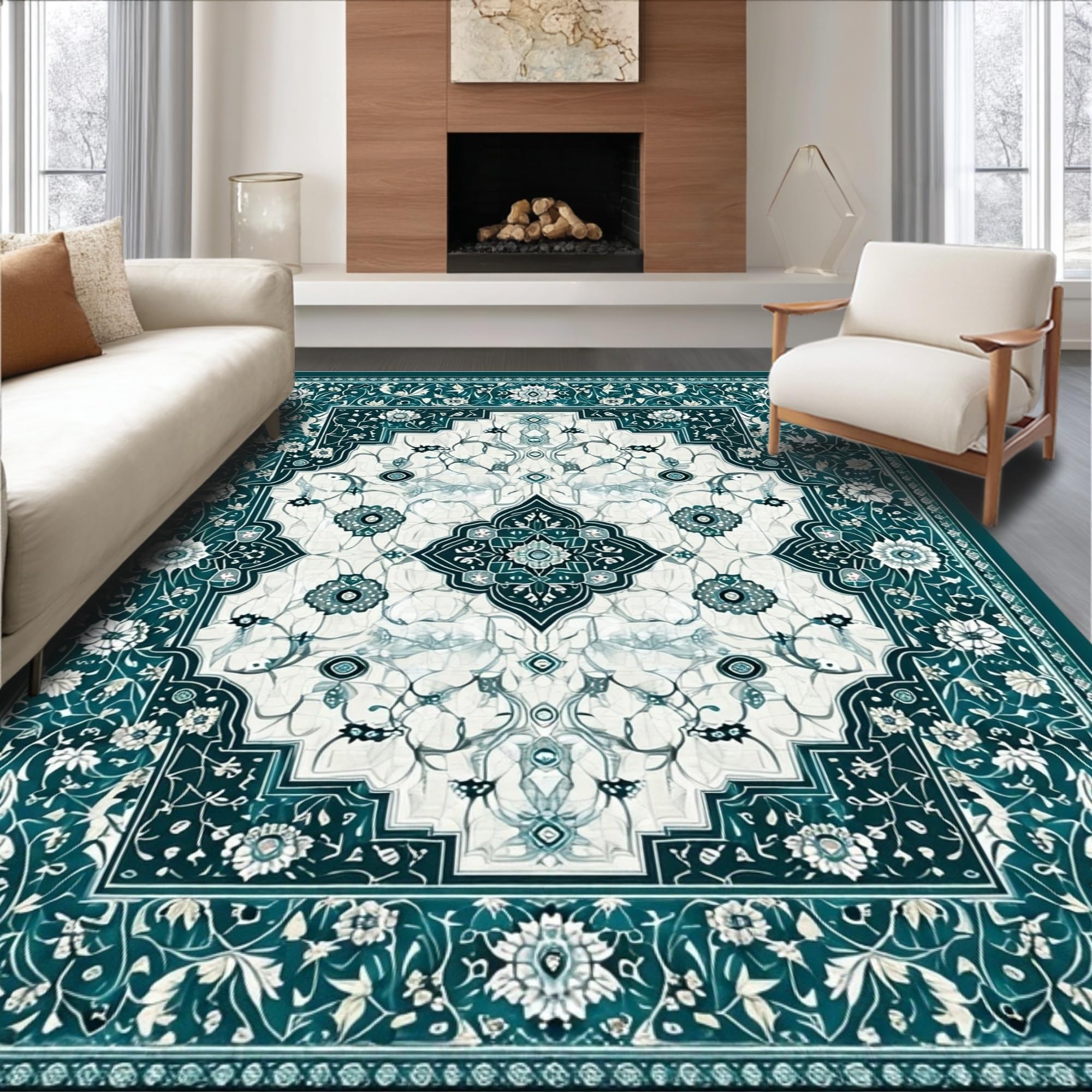 Ultra Soft Area Rug, Non Slip, Stain Resistant, Washable Area Rugs for Living Room, Bedroom, Teal Marble Boho(Blue) Overview: