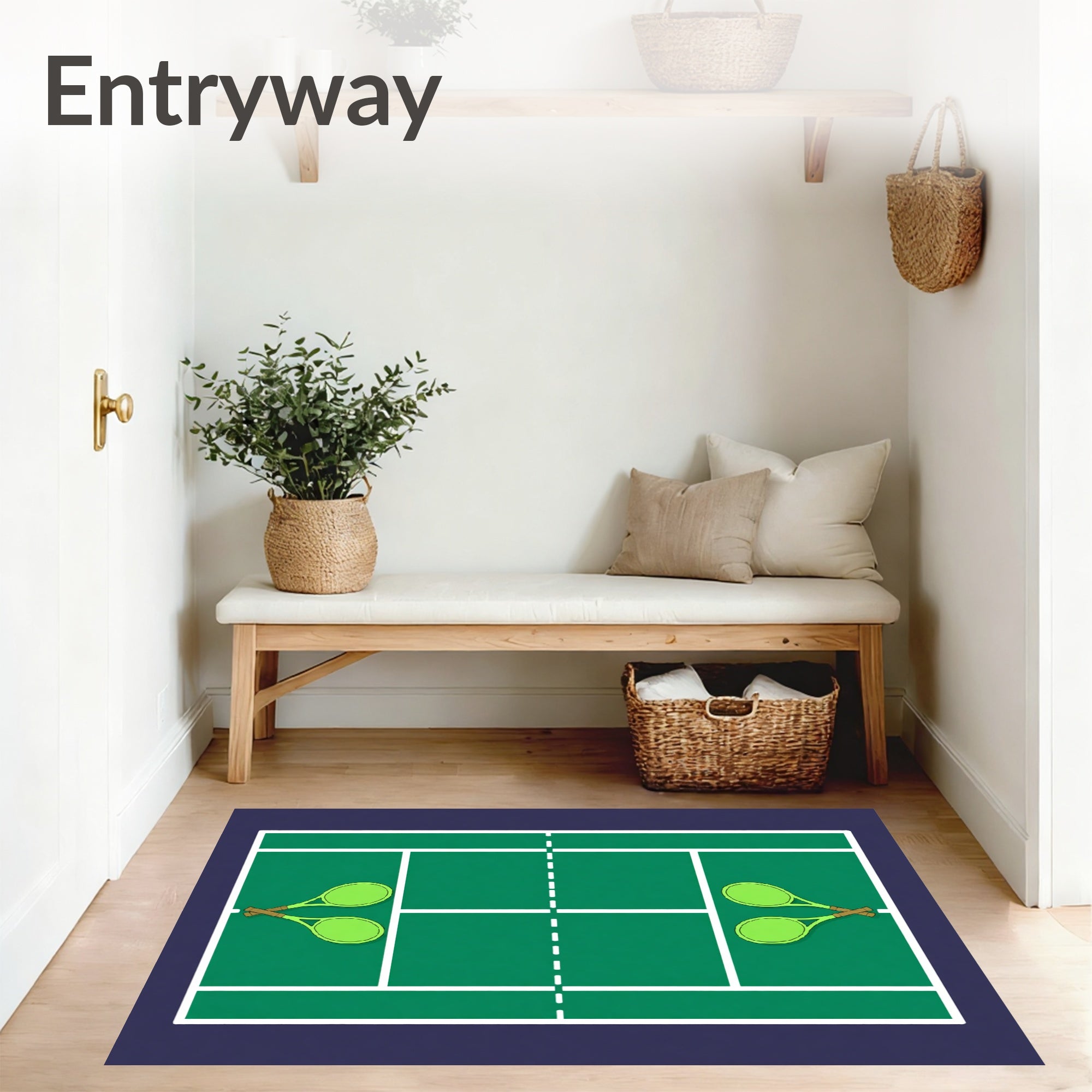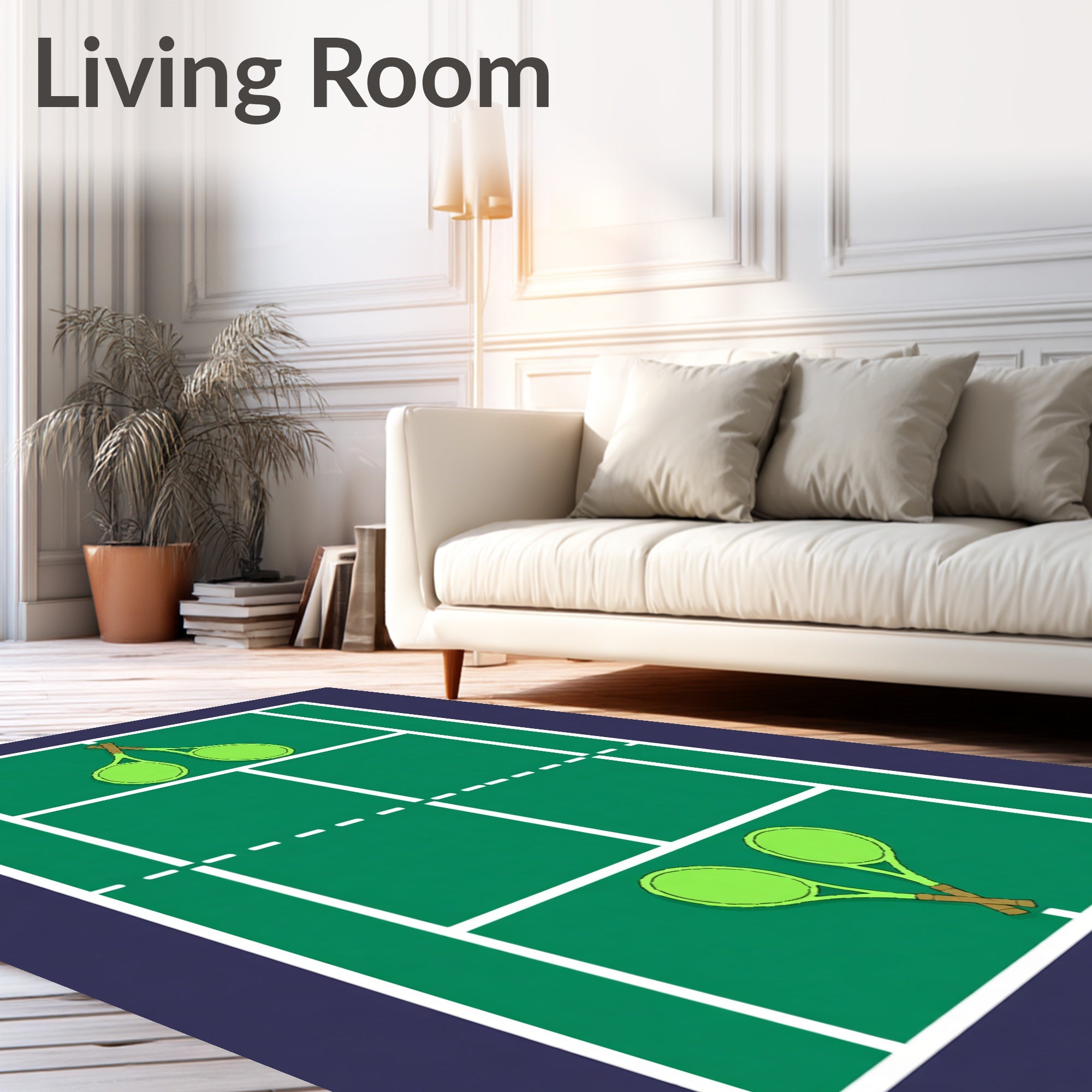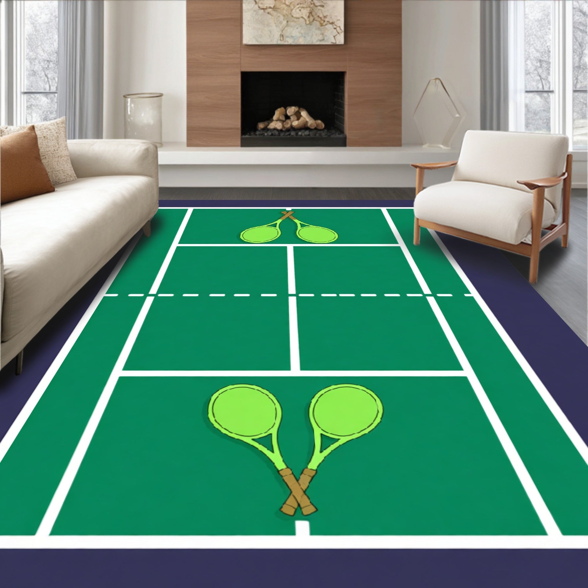 Ultra Soft Area Rug, Non Slip, Stain Resistant, Washable Area Rugs for Living Room, Bedroom, Tennis Court Crossed Rackets Balls Design(green) Overview: