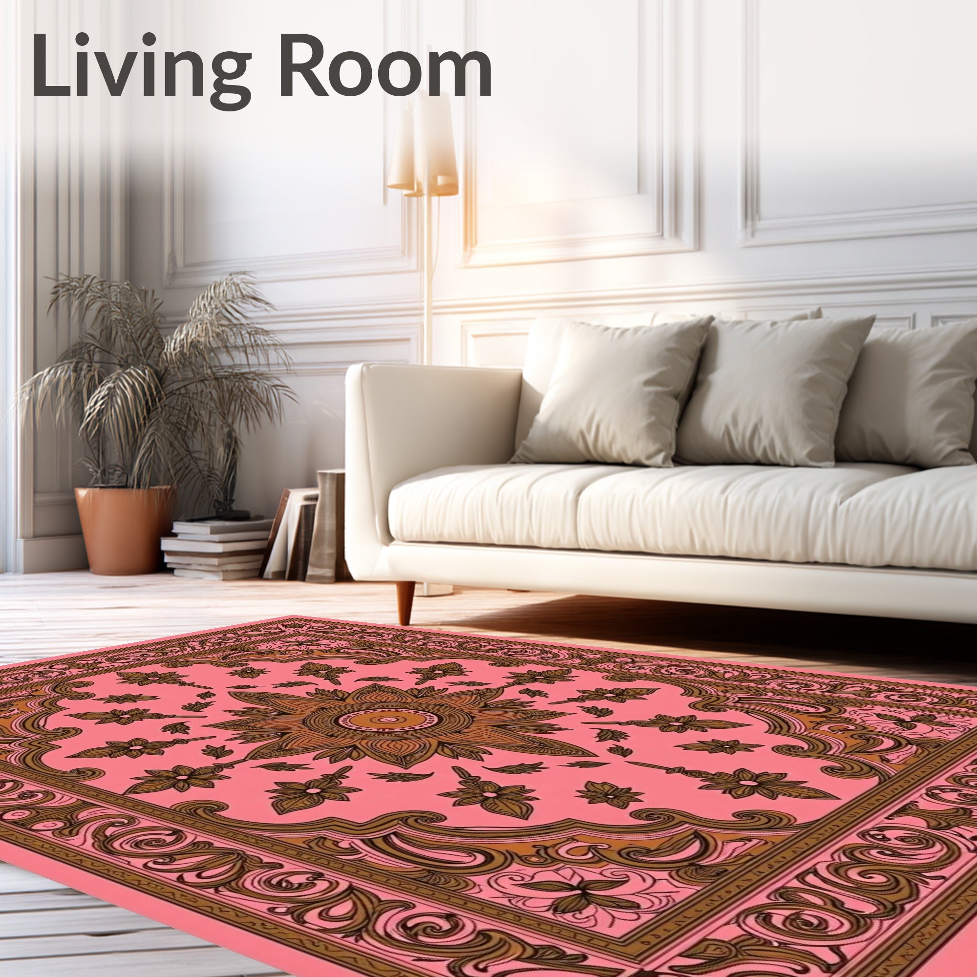 Ultra Soft Area Rug, Non Slip, Stain Resistant, Washable Area Rugs for Living Room, Bedroom, Terracotta Paisley Vintage Inspired Hallway Accent(Pink) Overview: