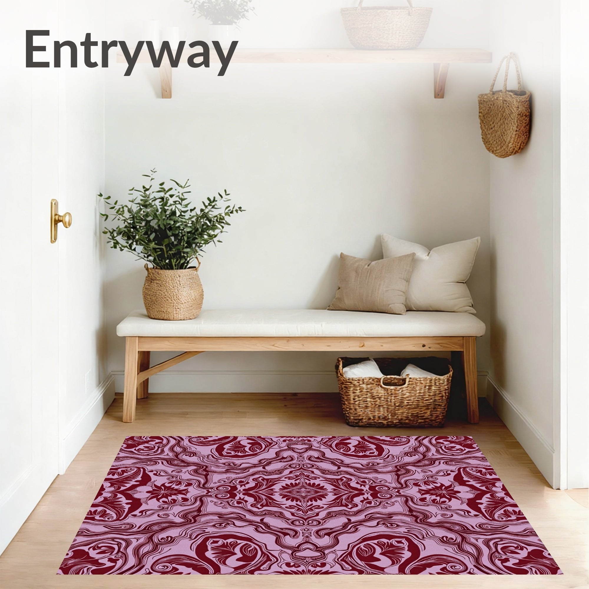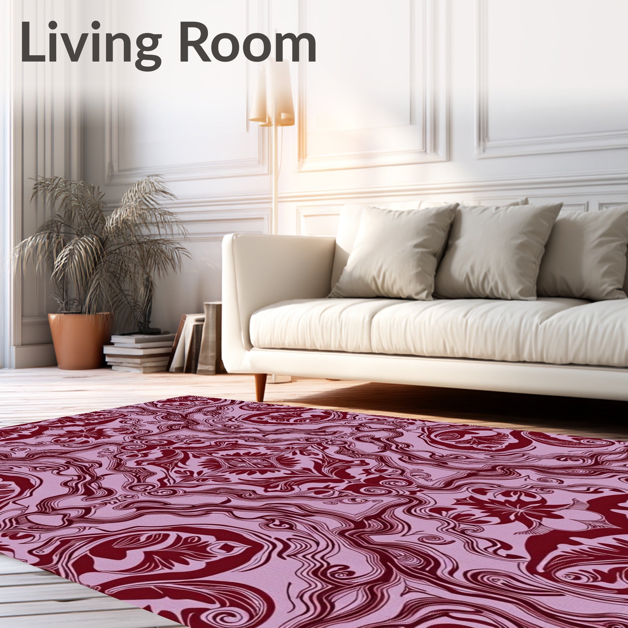 Ultra Soft Area Rug, Non Slip, Stain Resistant, Washable Area Rugs for Living Room, Bedroom, Textured Botanical Floral Vine Paisley Elegant Sophisticated(Pink) Overview: