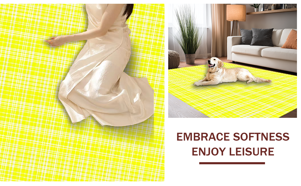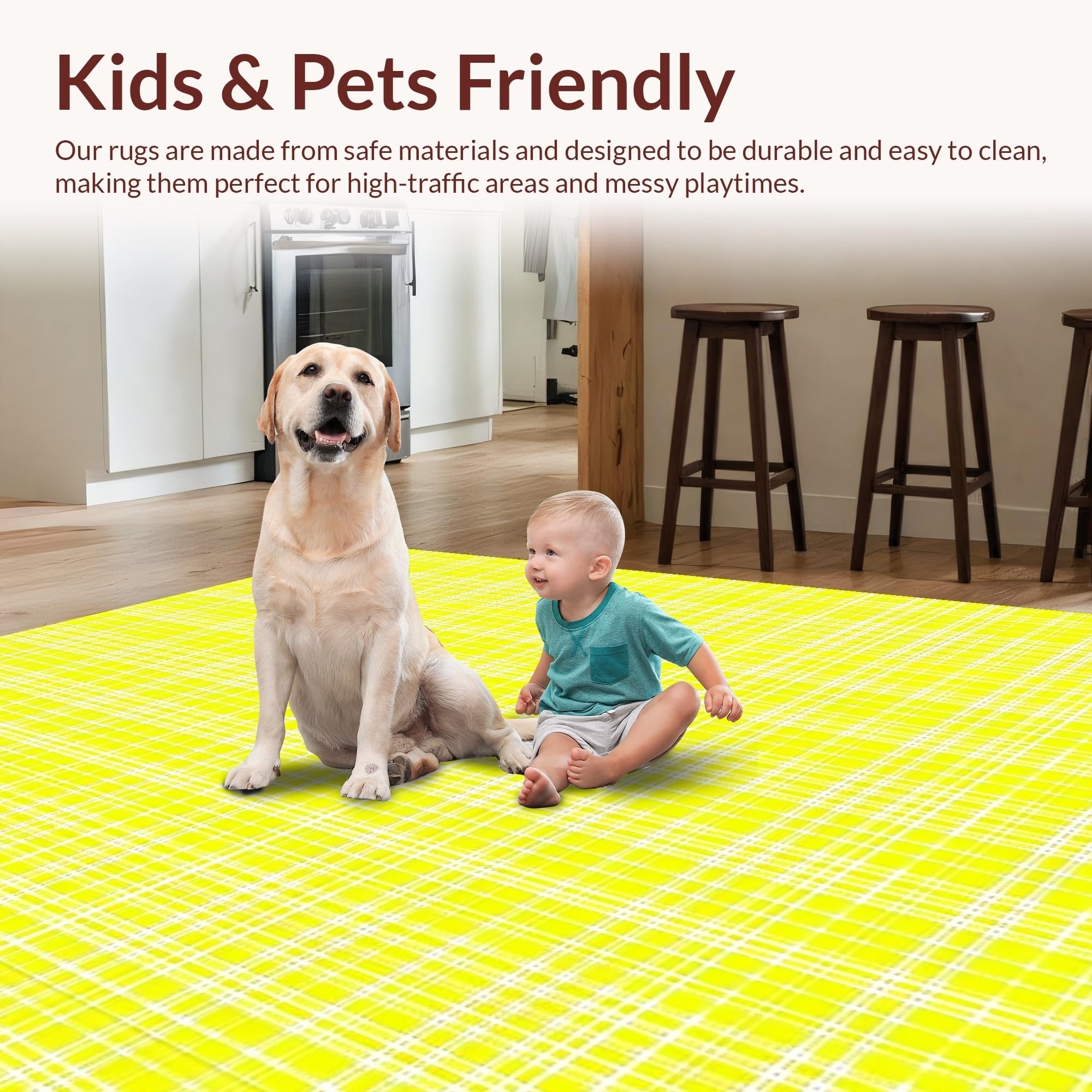 Ultra Soft Area Rug, Non Slip, Stain Resistant, Washable Area Rugs for Living Room, Bedroom, Textured Rustic Tiled Arrangement(Yellow) Overview: