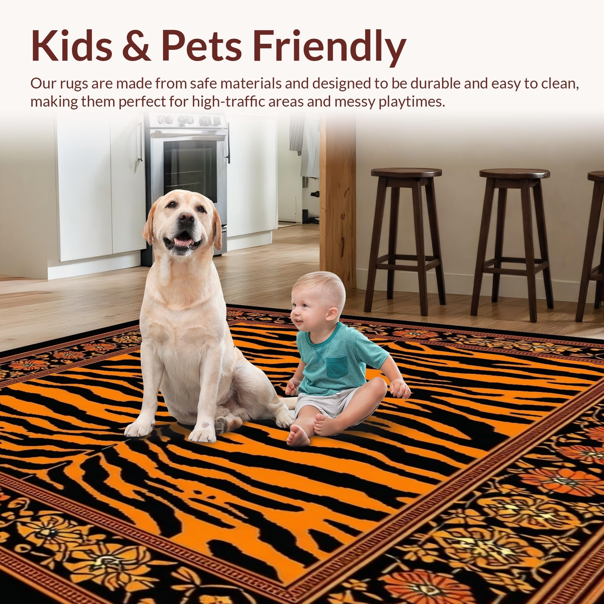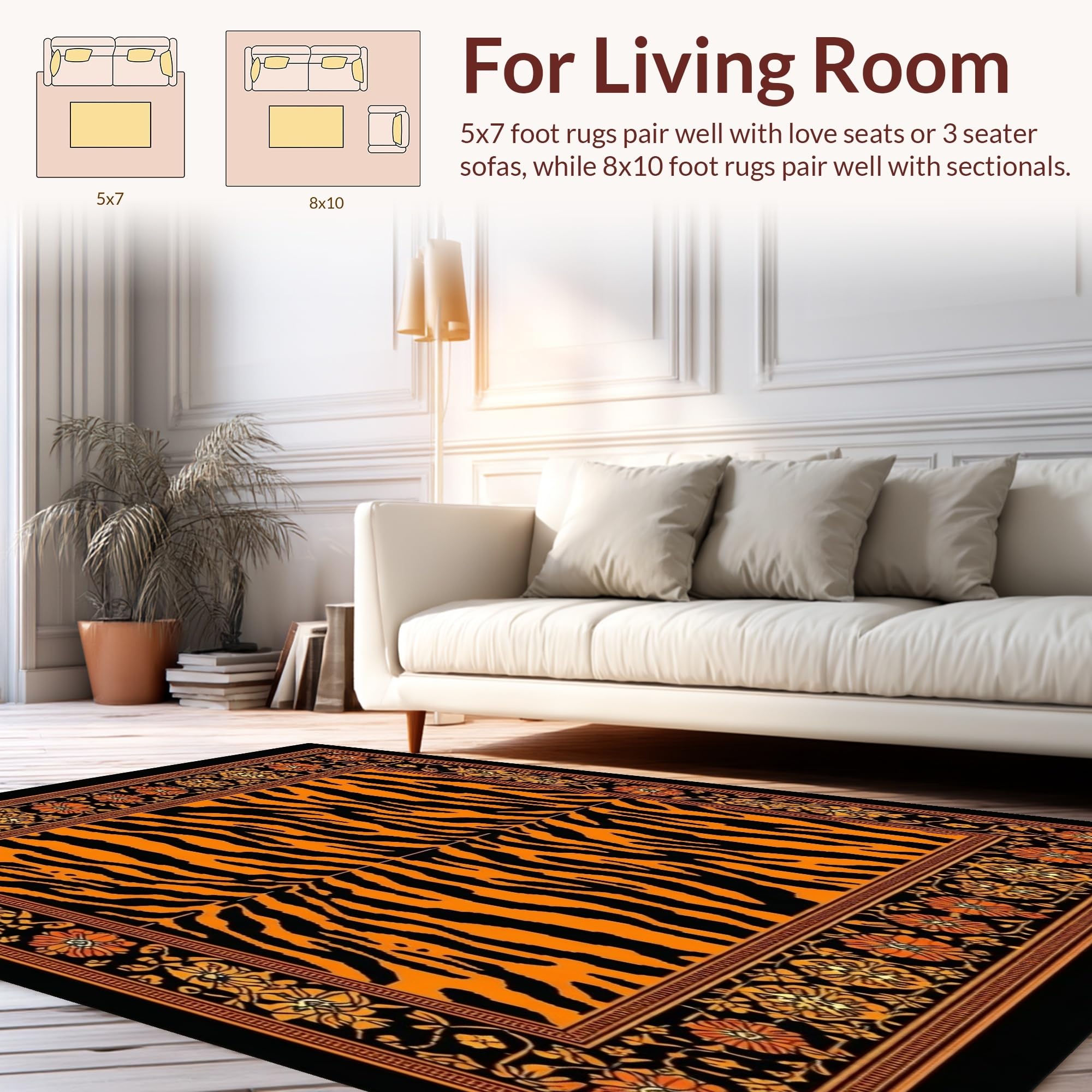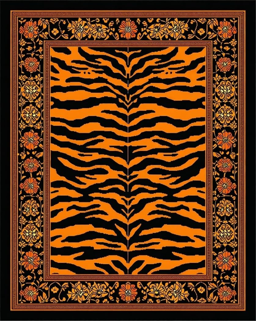 Ultra Soft Area Rug, Non Slip, Stain Resistant, Washable Area Rugs for Living Room, Bedroom, Tiger Print Area Boho Decor(Black) Overview:
