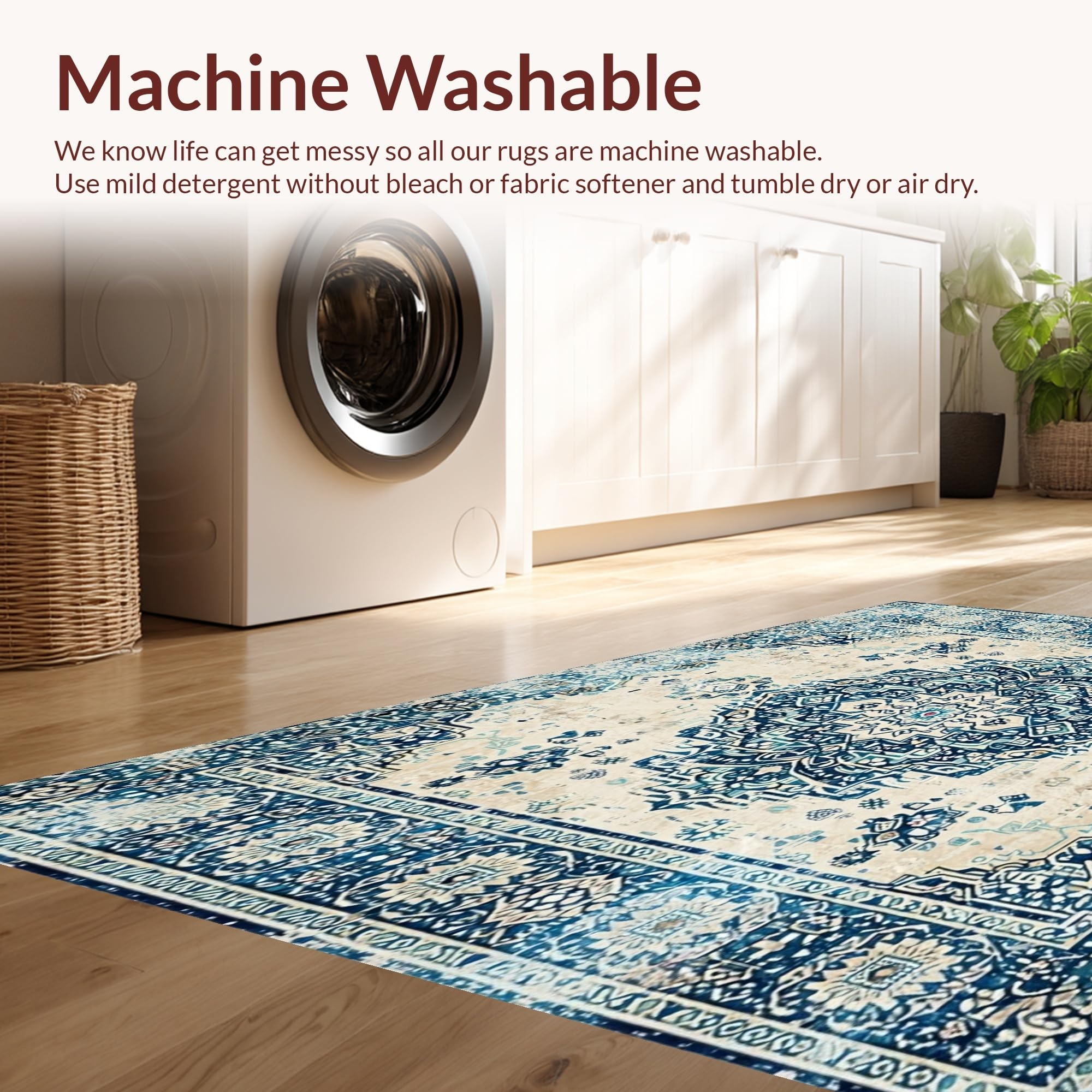 - Machine Washable: Our rugs can be easily thrown in the wash machine.